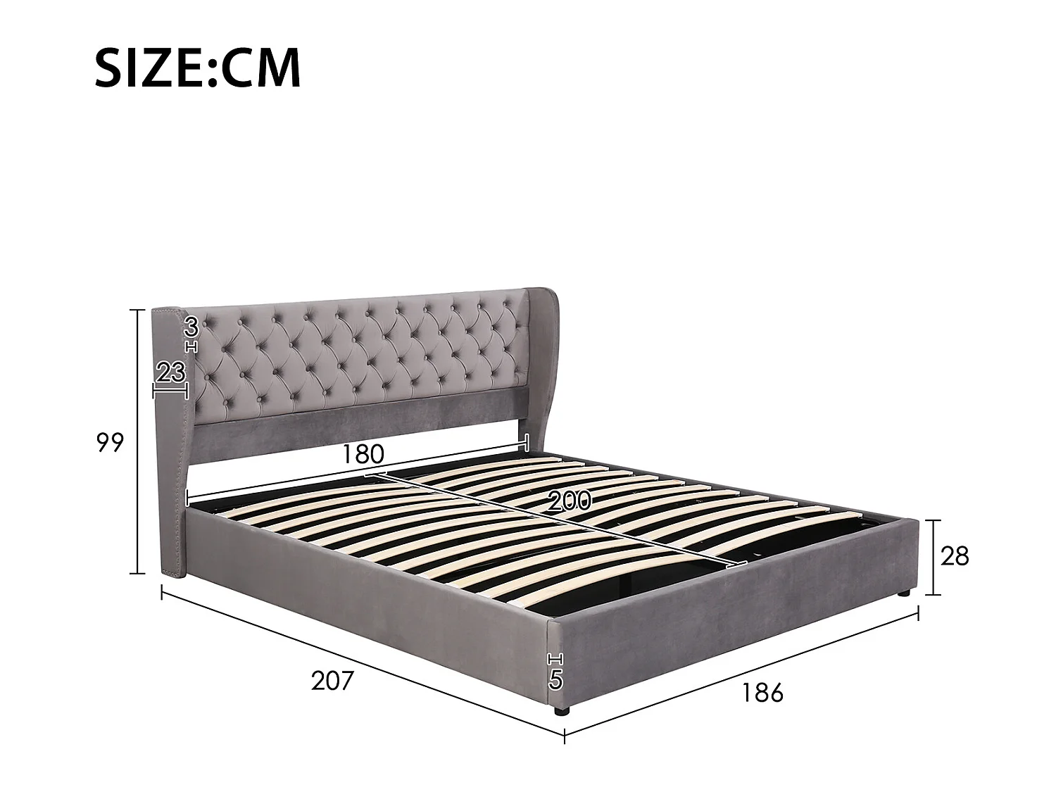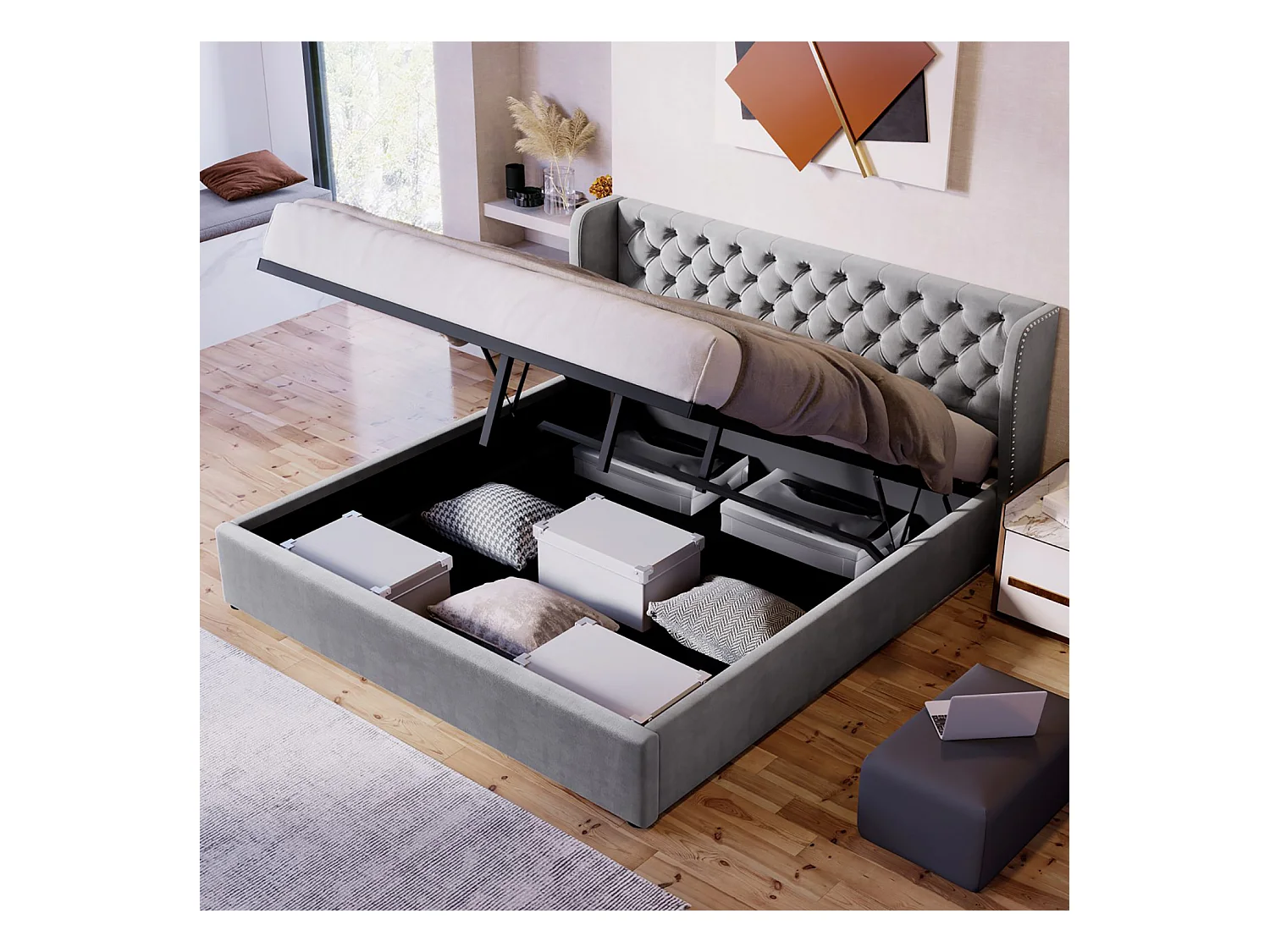 Lit coffre 180x200 cm - espace de rangement - Gris - Sweiko