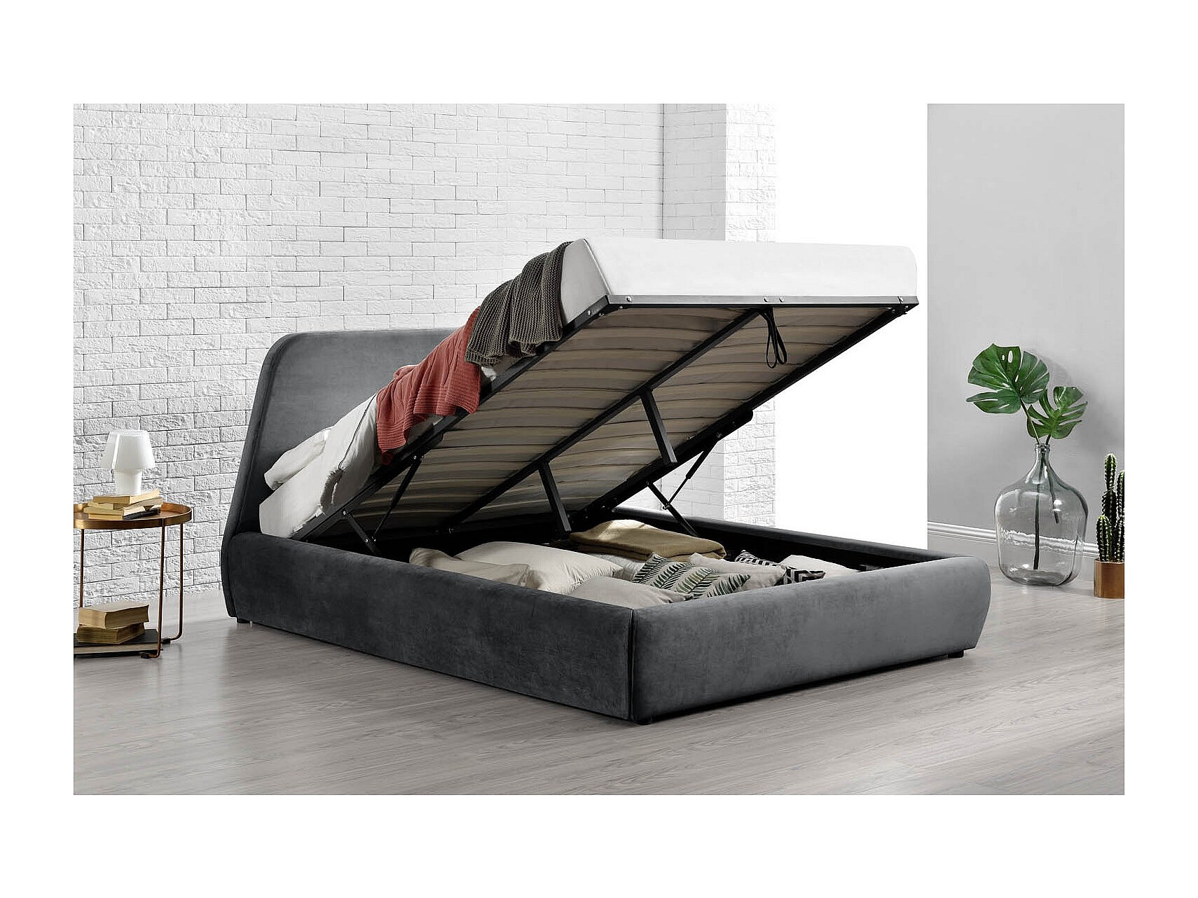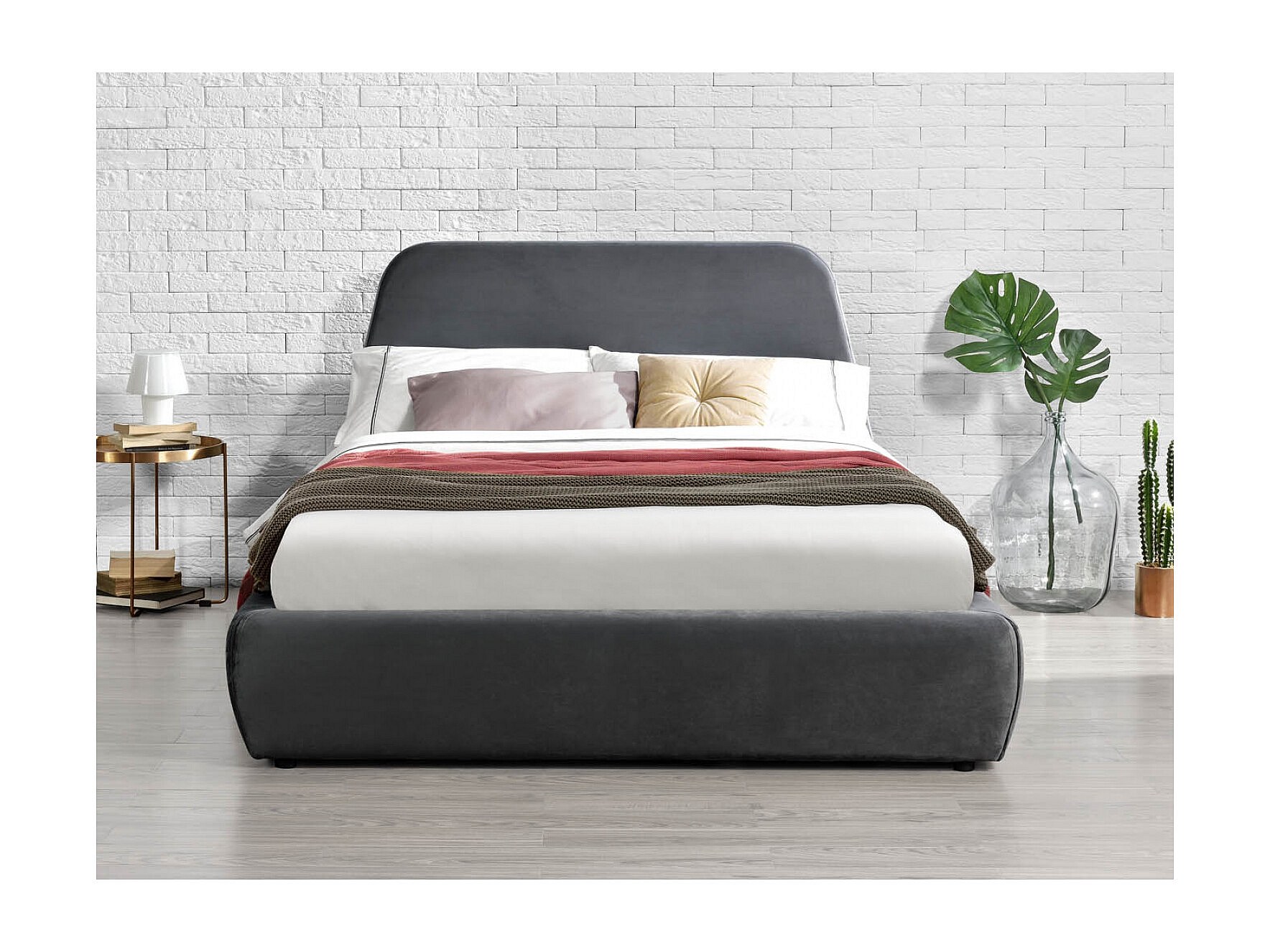Lit coffre - 180x200 cm - Velours gris NORKA