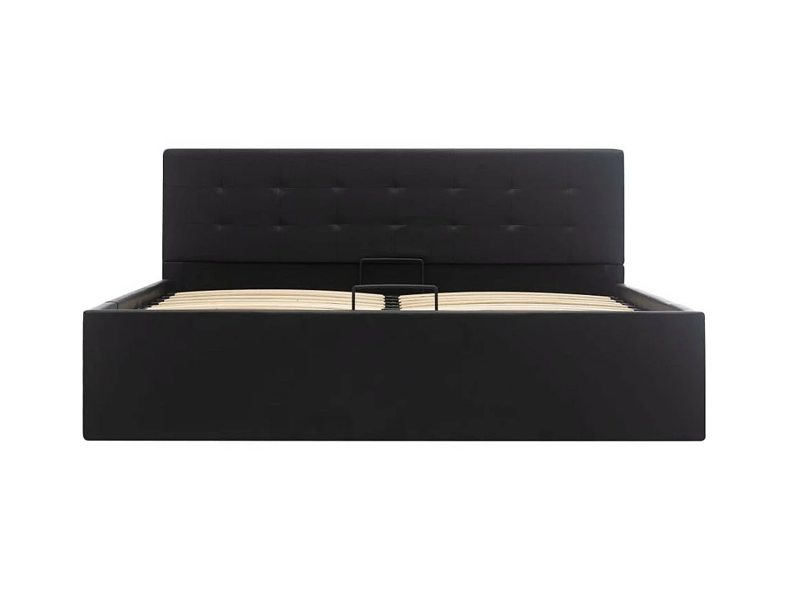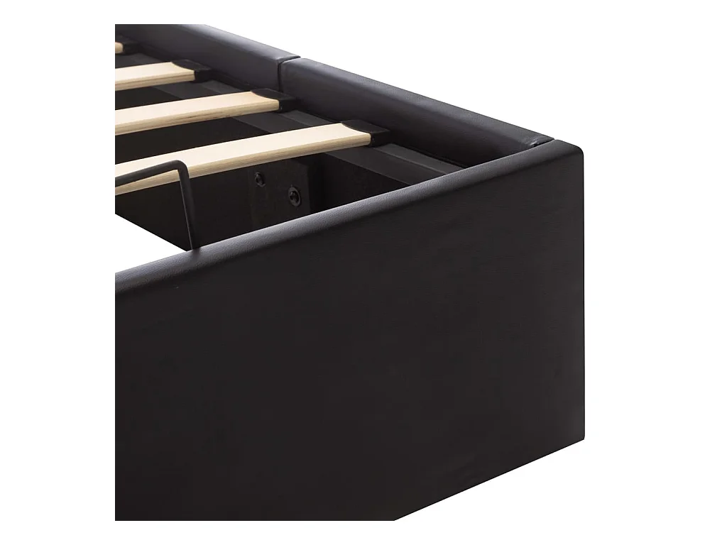 Lit coffre 180x200 simili cuir noir capitonné Rundi