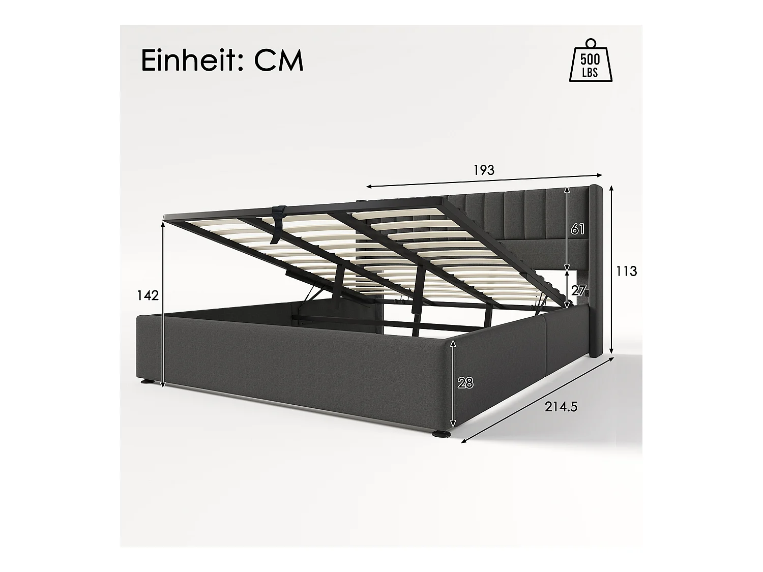 Lit coffre 180x200cm avec sommier à lattes relevable - Gris - Sweiko