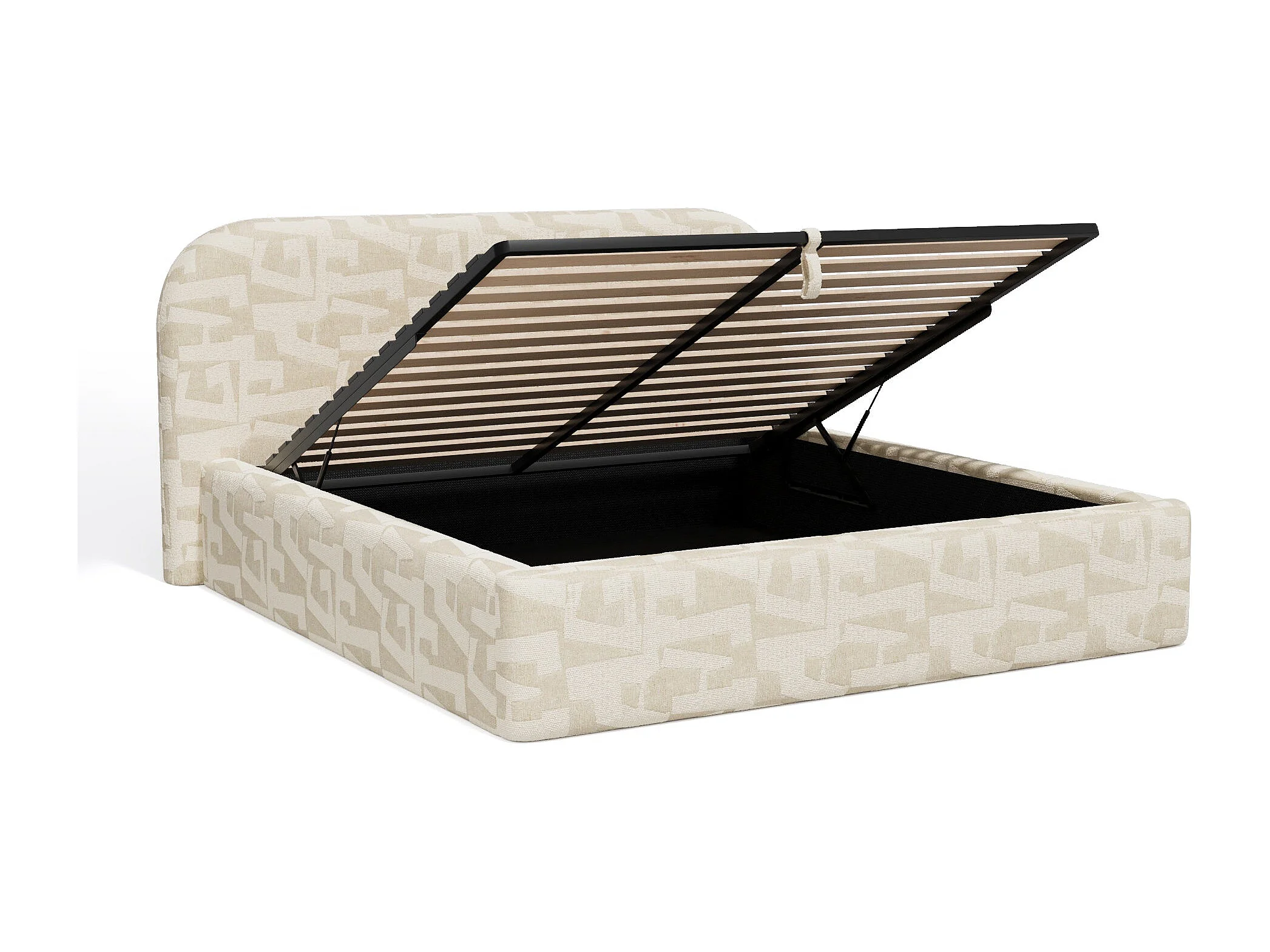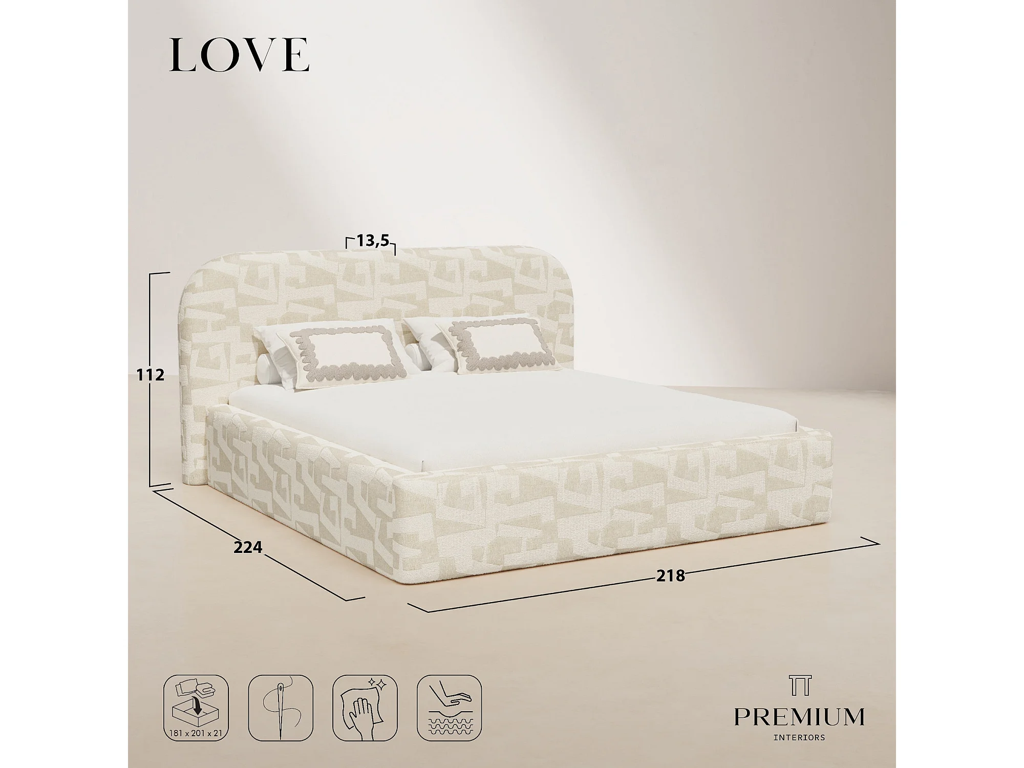 Lit coffre 180x200cm LOVE en Tissu texturé à motif Ecru