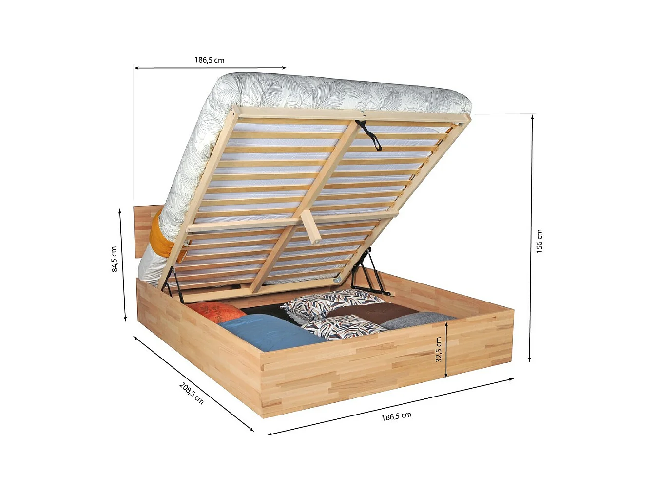 Lit coffre 180x200cm MILO avec tête de lit + sommier/ Hêtre massif huilé
