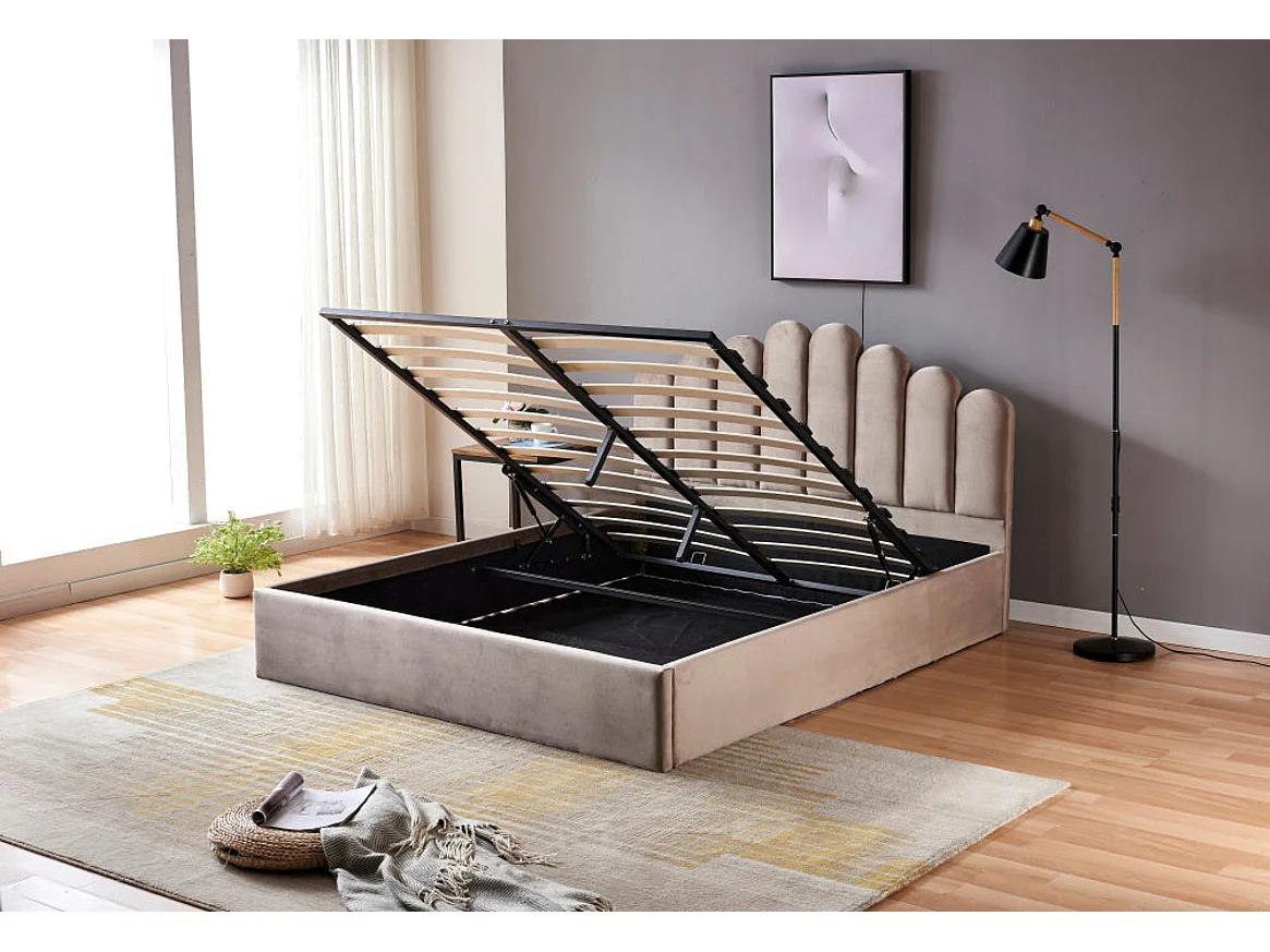Lit coffre DOHA 2 places 140x190 cm moka sommier et coffre intégré