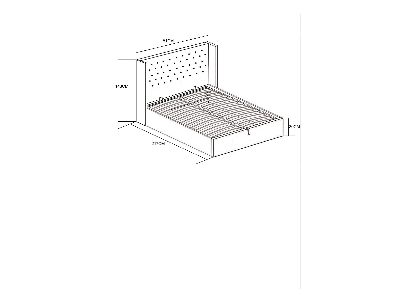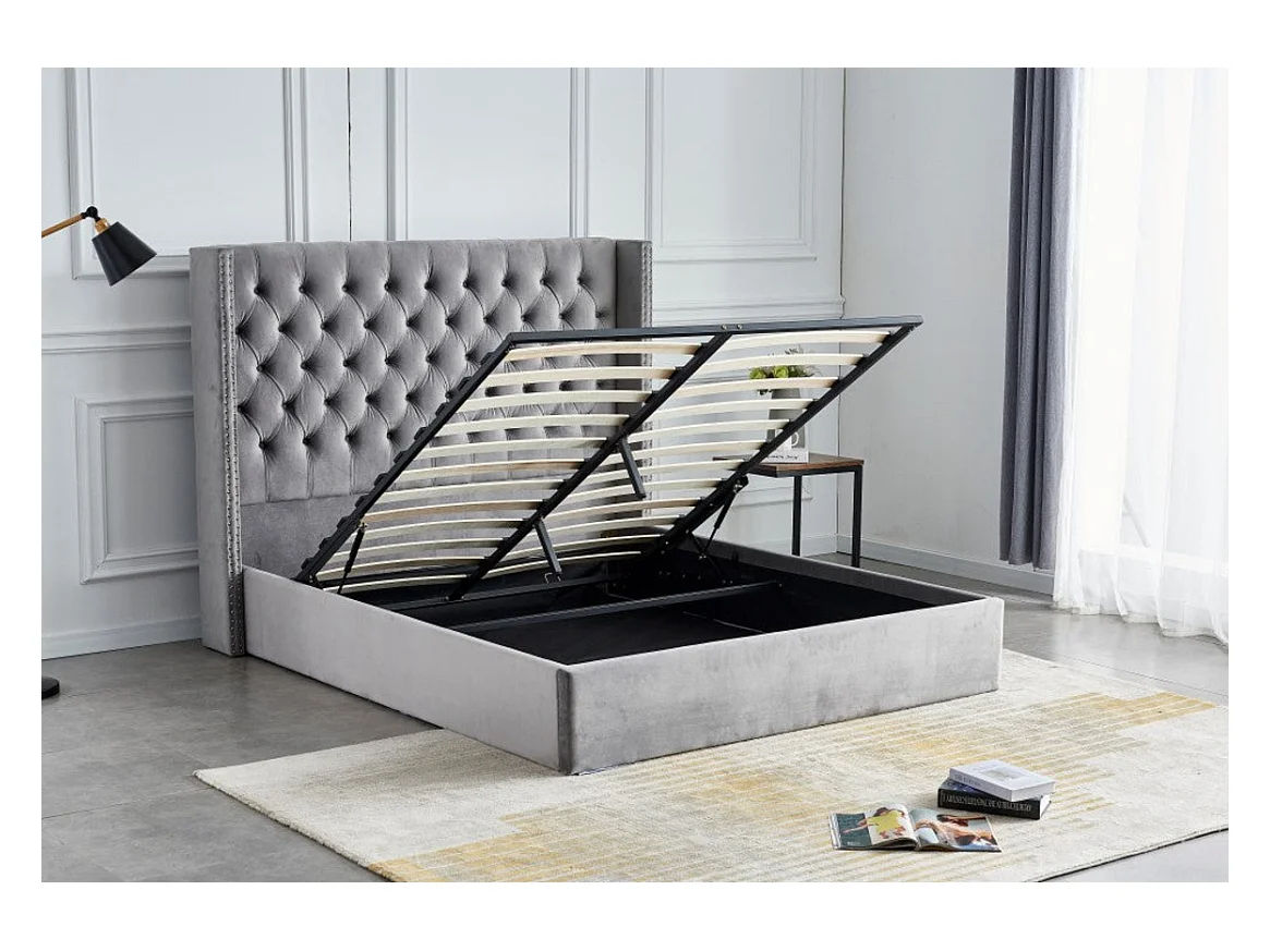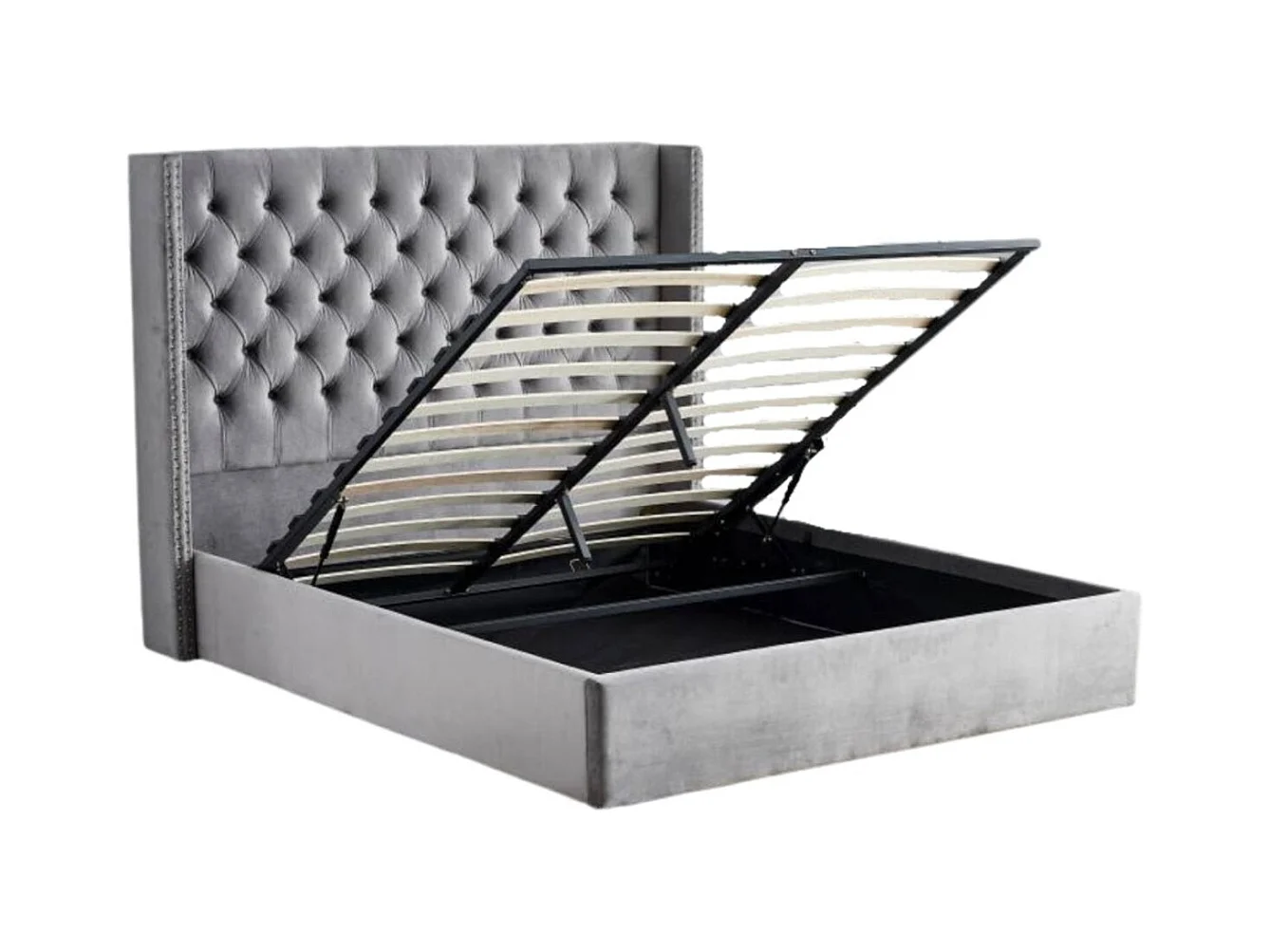 Lit COFFRE 2 places 160X200 cm CLOUTE velours GRIS