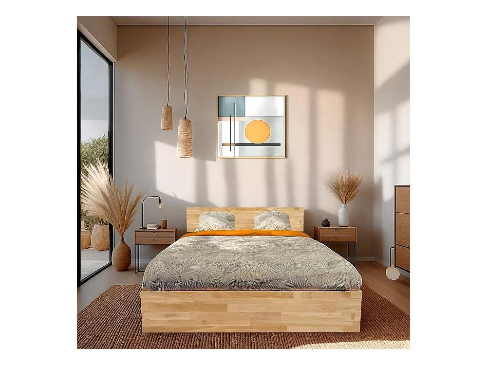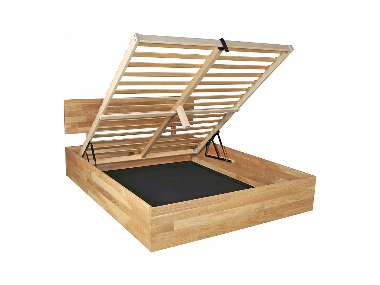 Lit coffre 2 places 160x200cm Chêne massif huilé avec sommier MALI