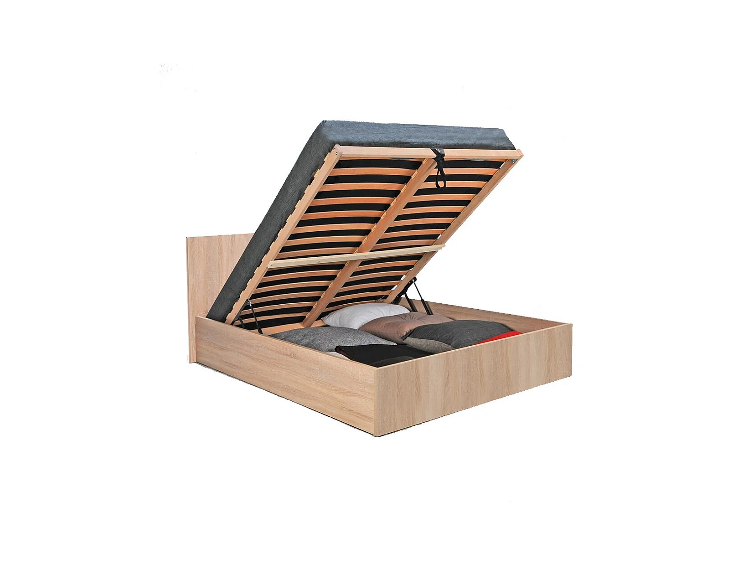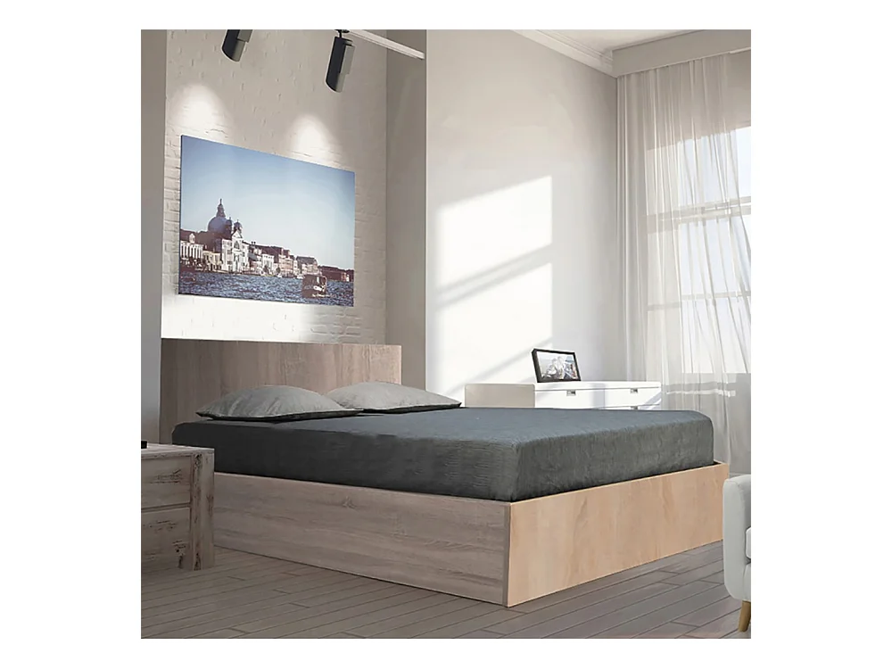 Lit coffre 2 places 160x200cm couleur chêne avec sommier MARO