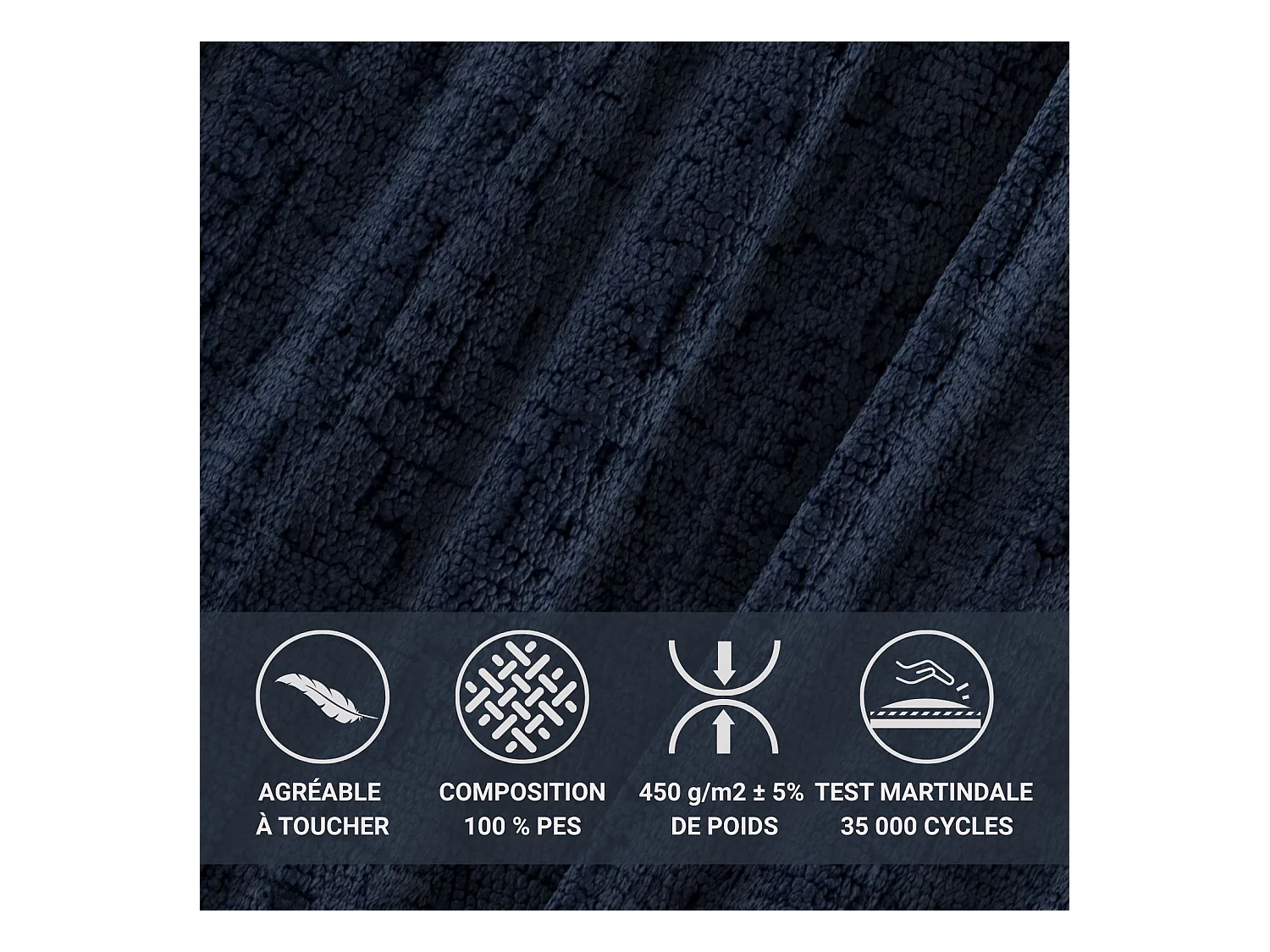Lit coffre 200 x 200 cm avec tête de lit VOLIERA - en tissu chenille - bleu marine