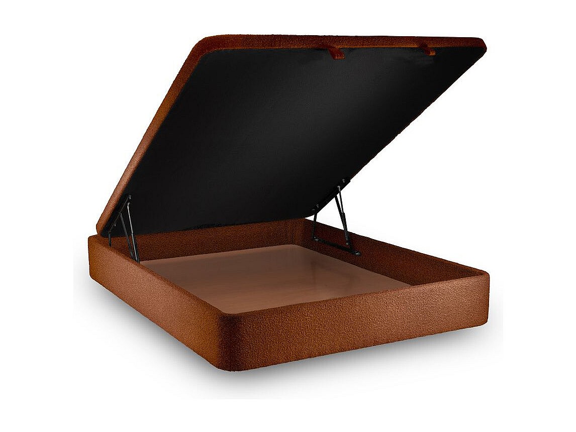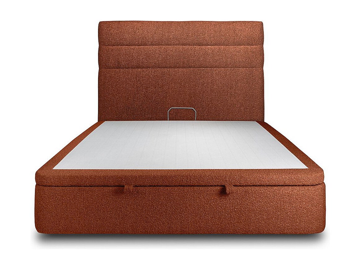 Lit coffre 200x200cm avec tête de lit lignes Bouclette Terracotta - Hauteur totale : 39cm