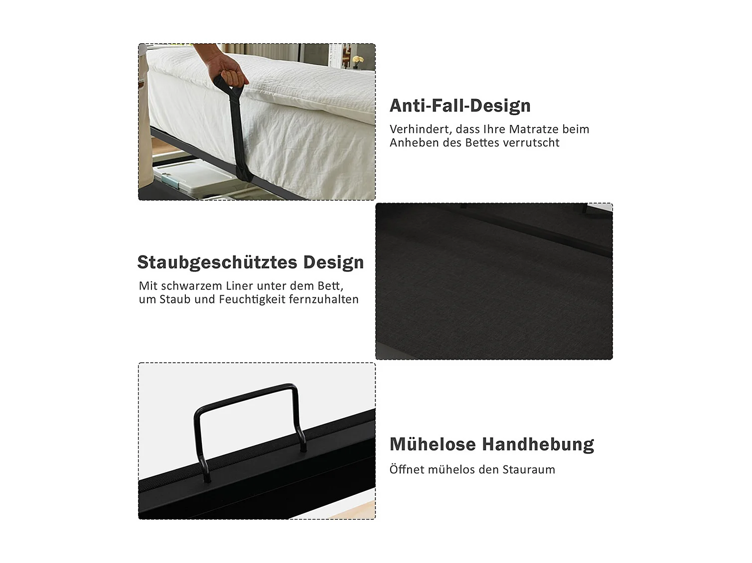 Lit coffre 90 x 200 avec tête de lit LED et fonction de recharge USB C avec sommier à lattes Sans matelas Coton Beige