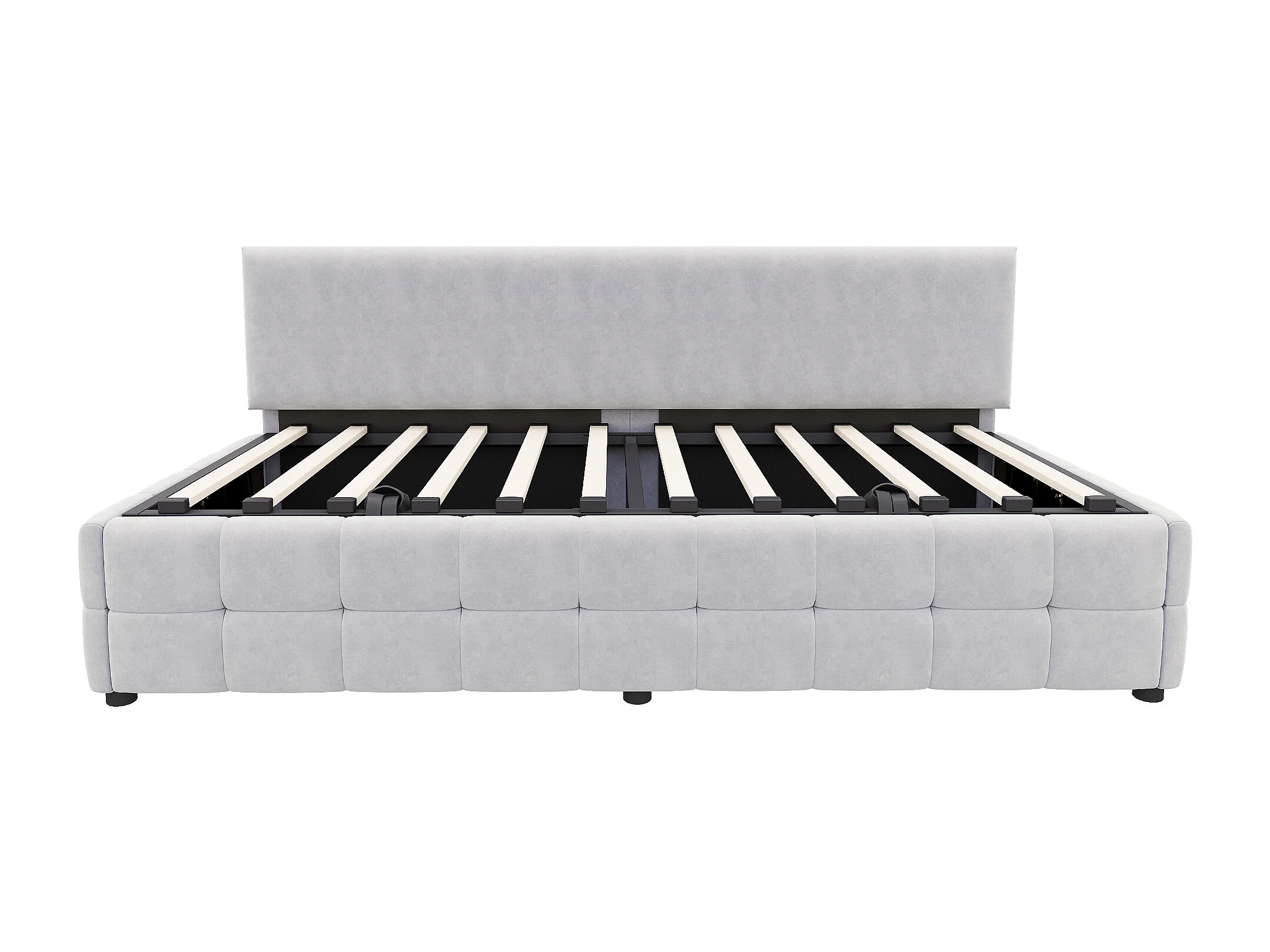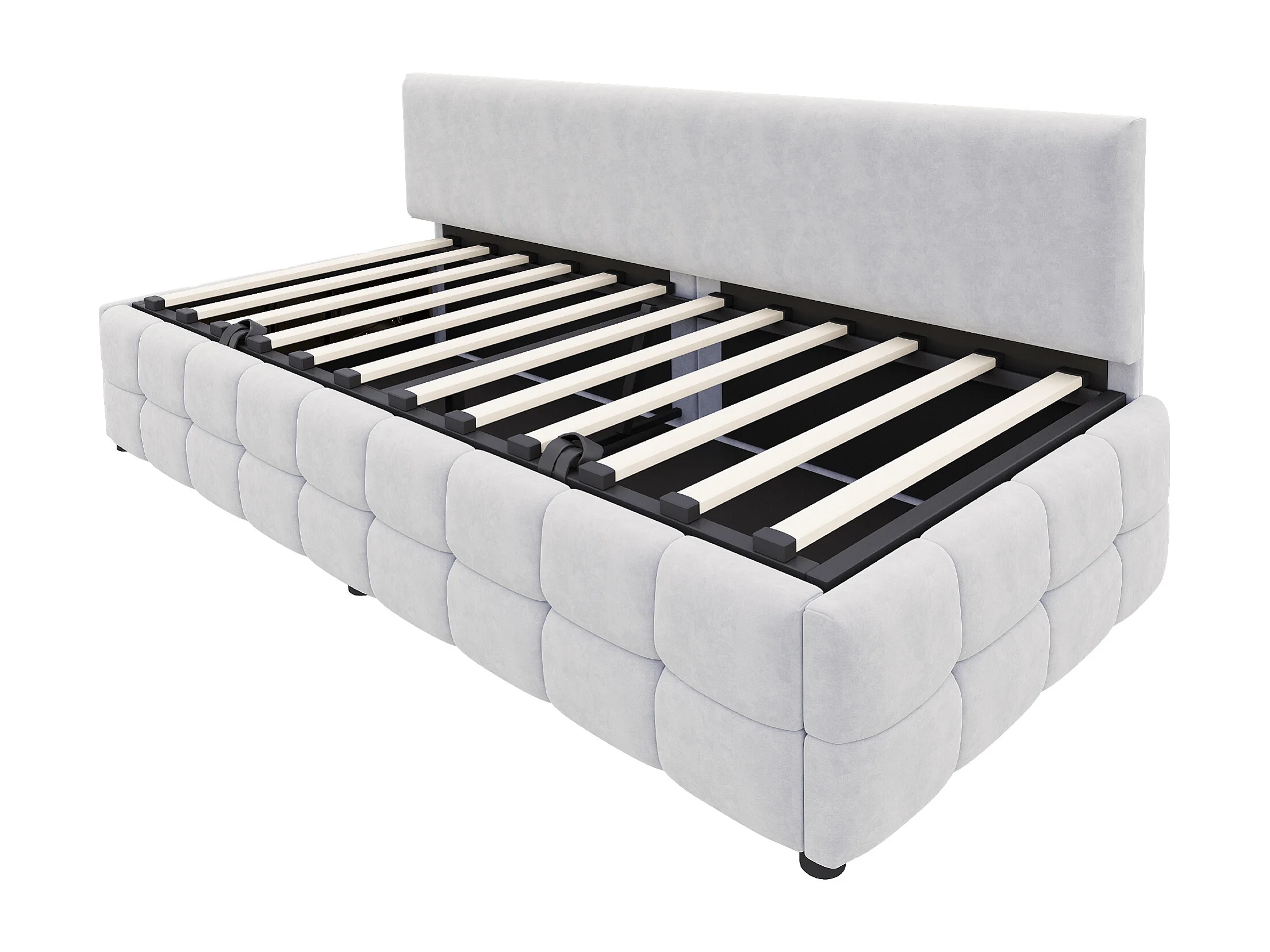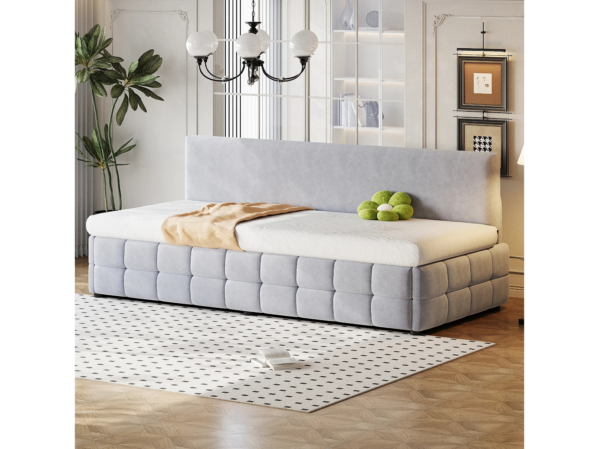 Lit coffre 90 x 200 cm avec rangement - Lit simple multifonctionnel en velours gris clair