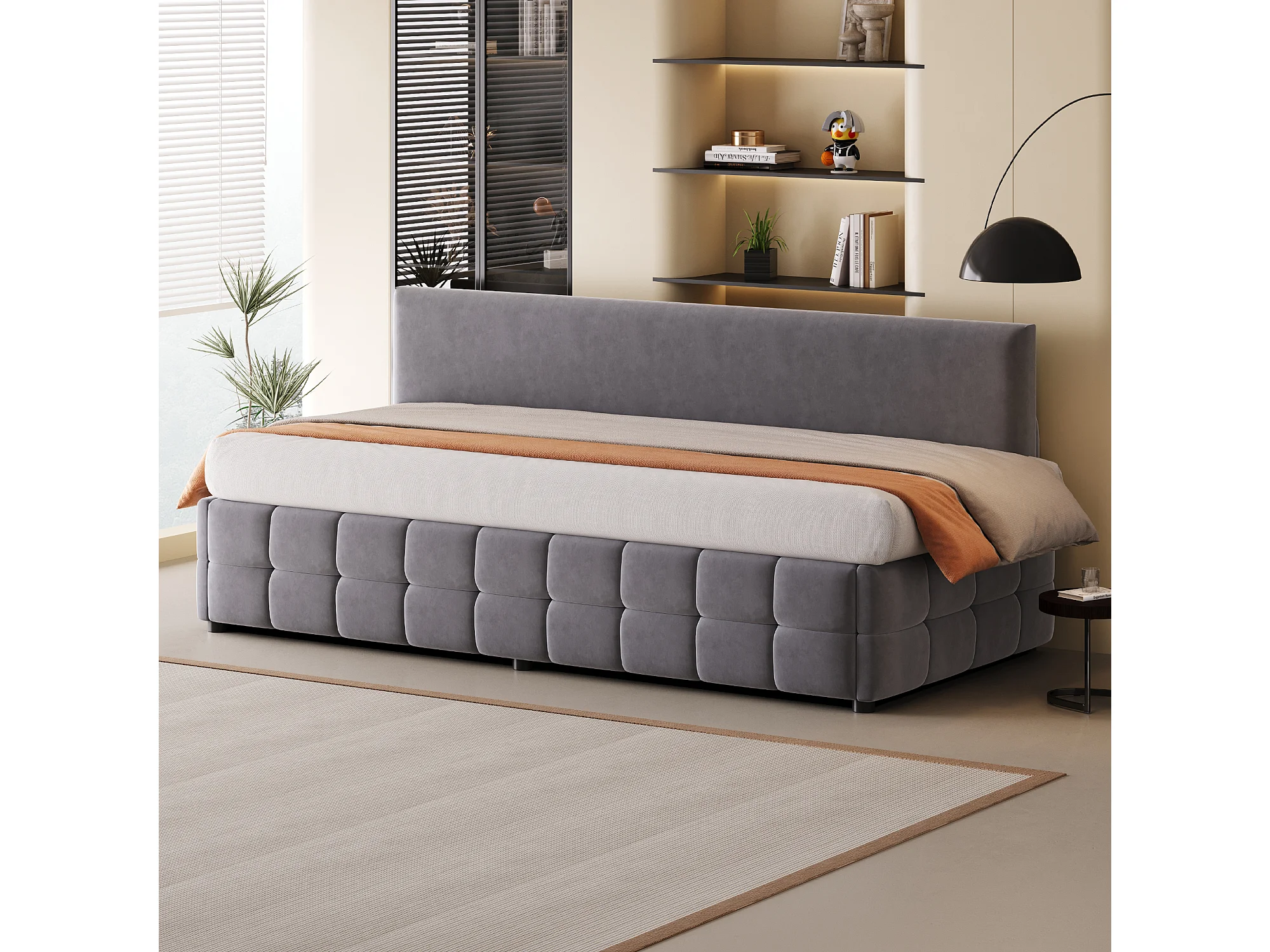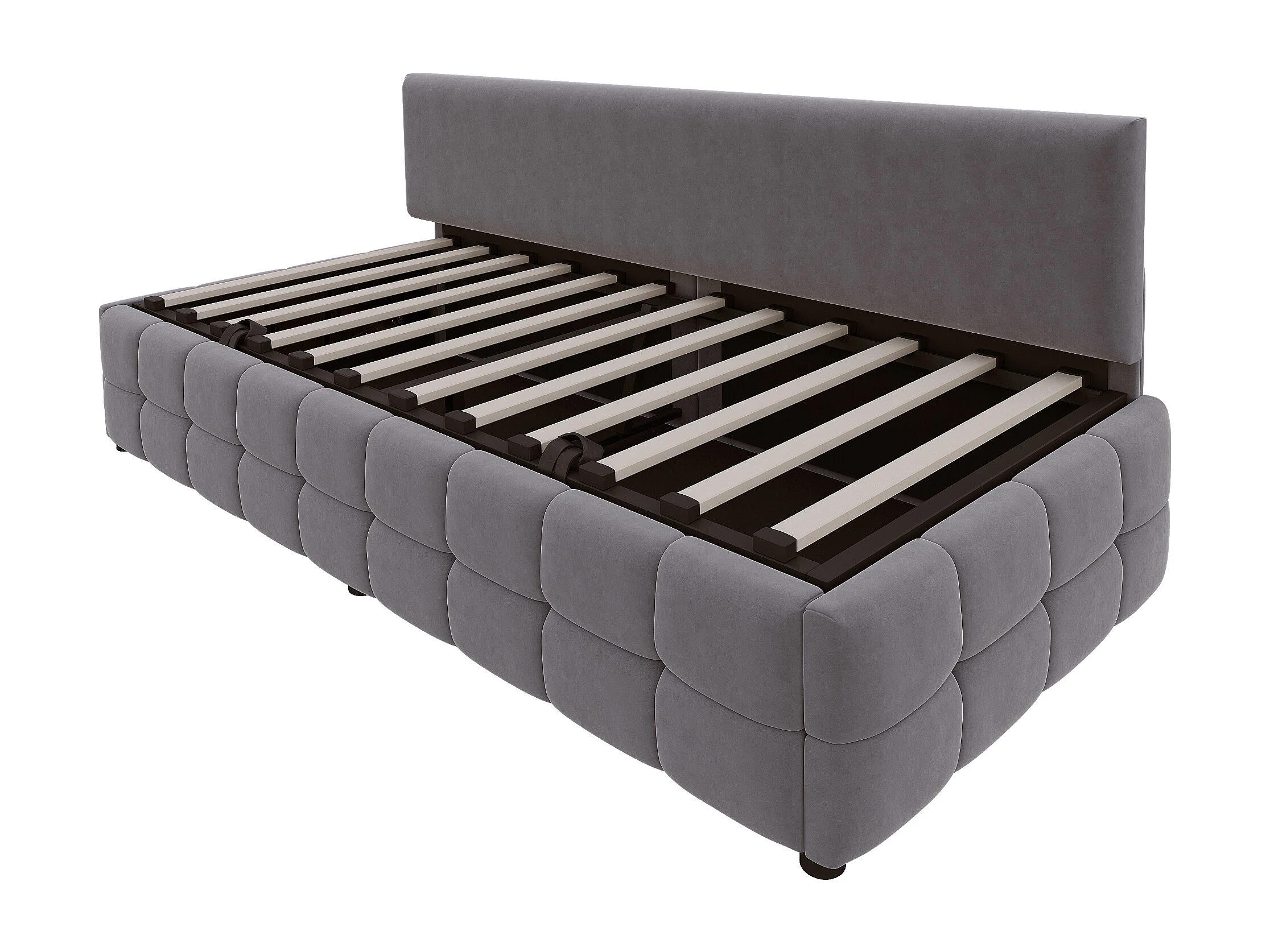 Lit coffre 90 x 200 cm avec rangement - Lit simple multifonctionnel en velours gris foncé