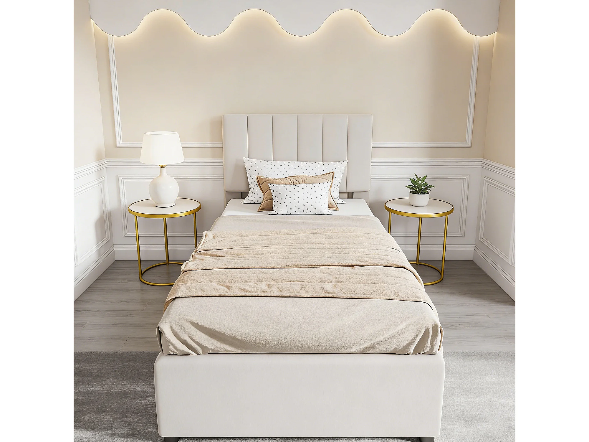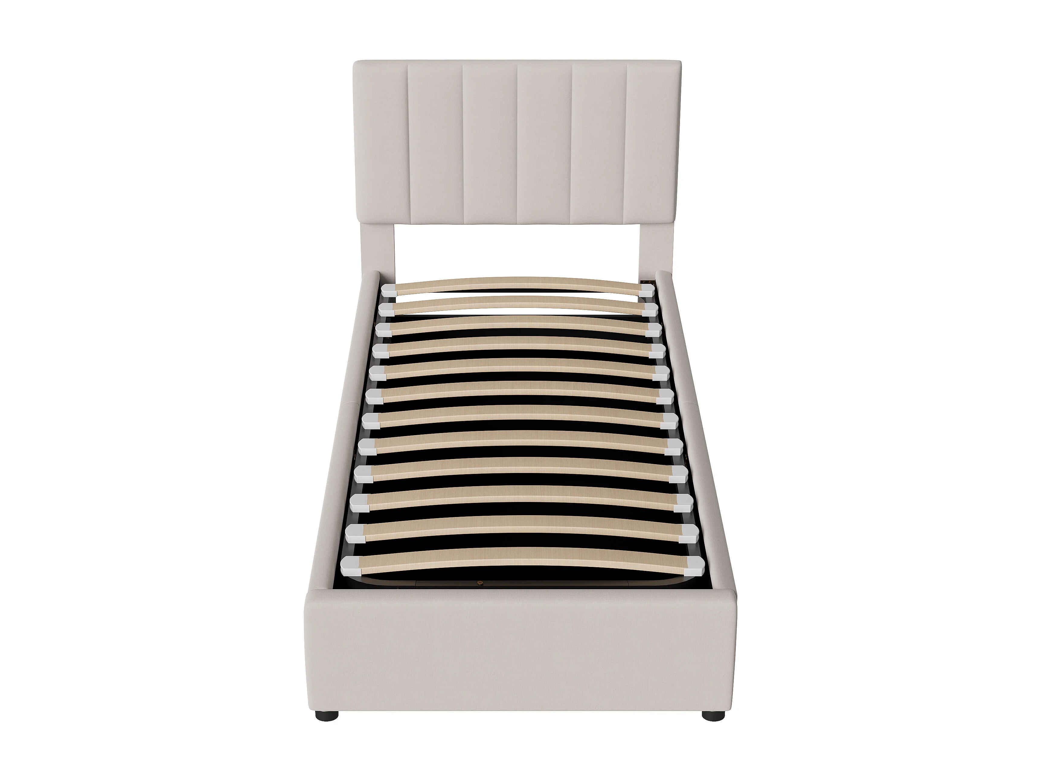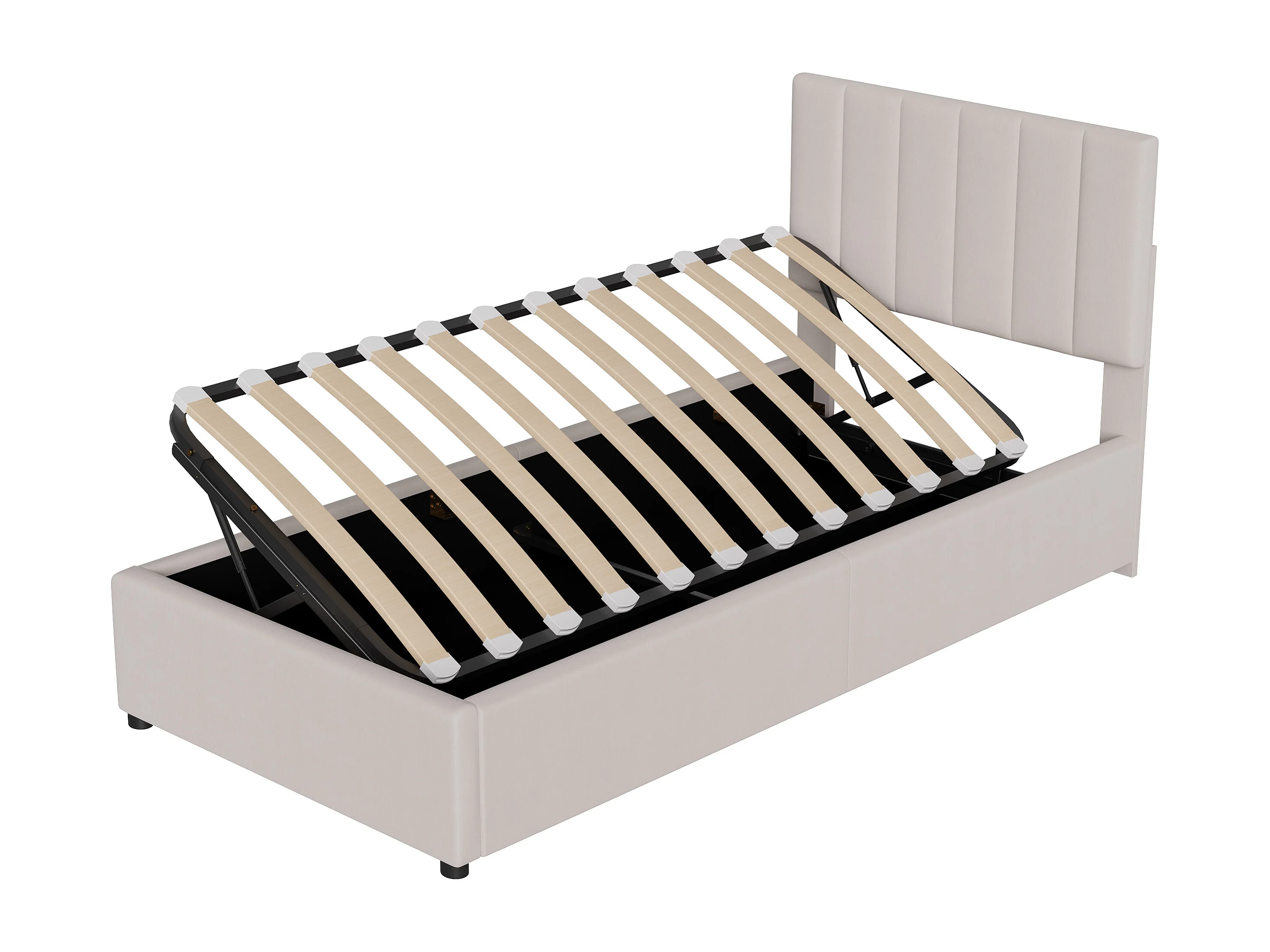 Lit coffre 90 x 200 cm avec sommier à lattes - Lit enfent 90x200 cm Tête de lit réglable et capitonné - rayures verticales - tissu lin - biege