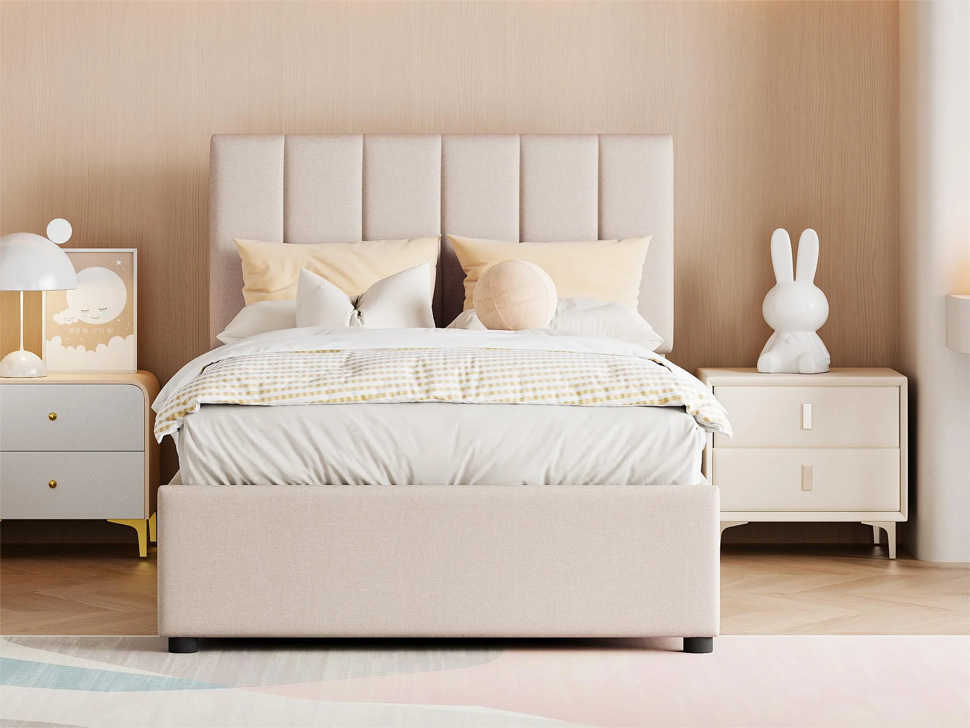Lit coffre 90 x 200 cm, tissu en lin, coloris beige
