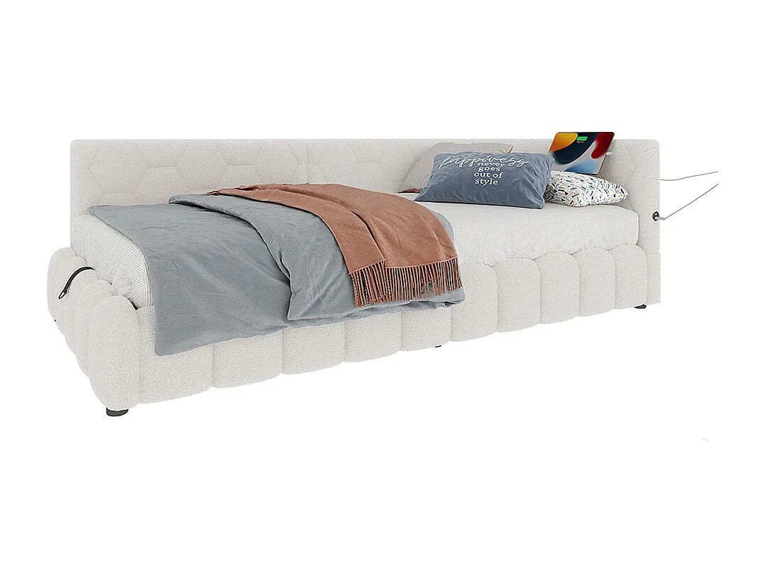 Lit coffre 90x200 avec bande LED mécanisme de levage hydraulique port USB type C revêtement imitation polaire blanc confortable