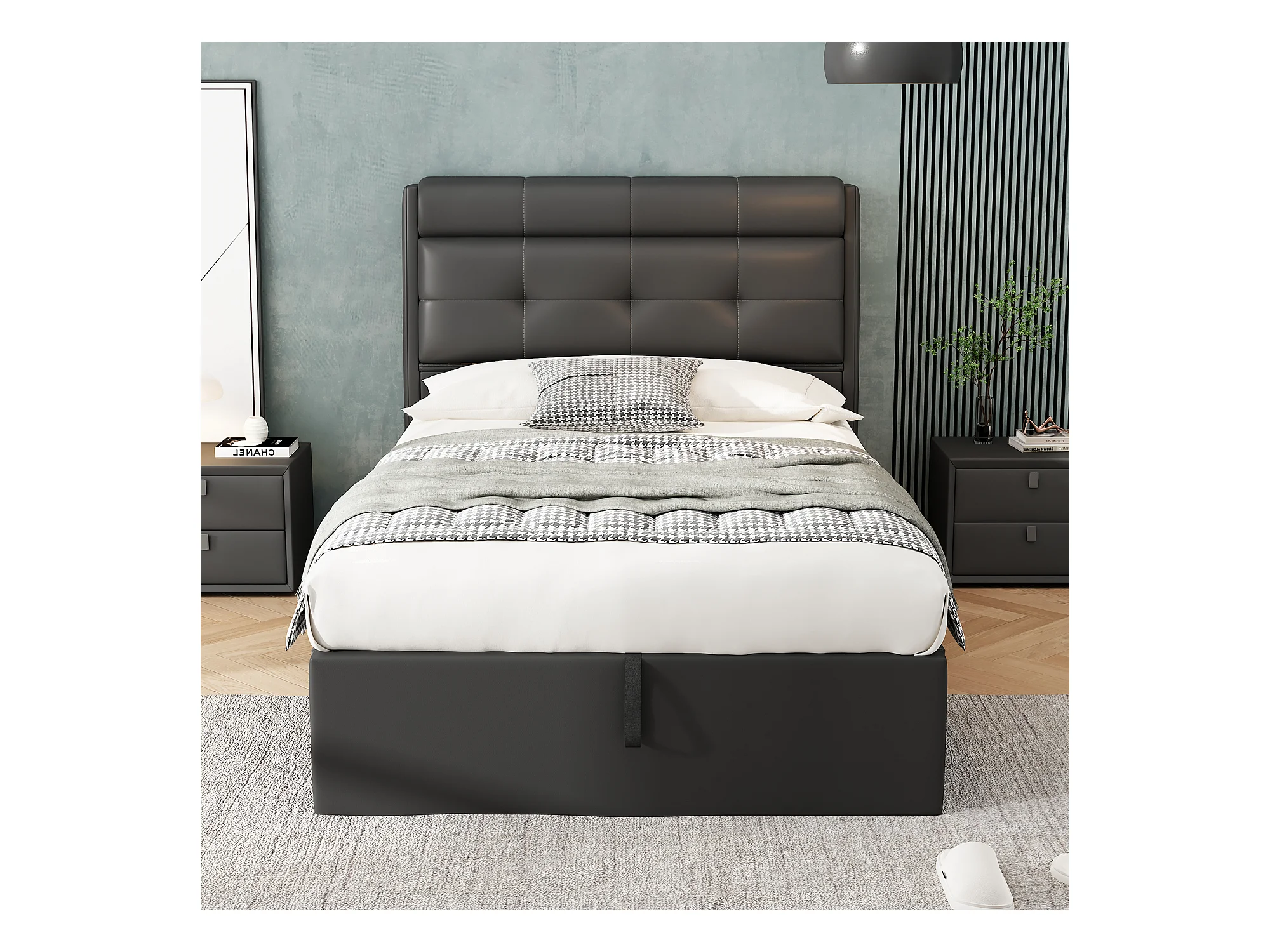 Lit coffre 90x200 cm - en similicuir - tête de lit avec rangement - Noir