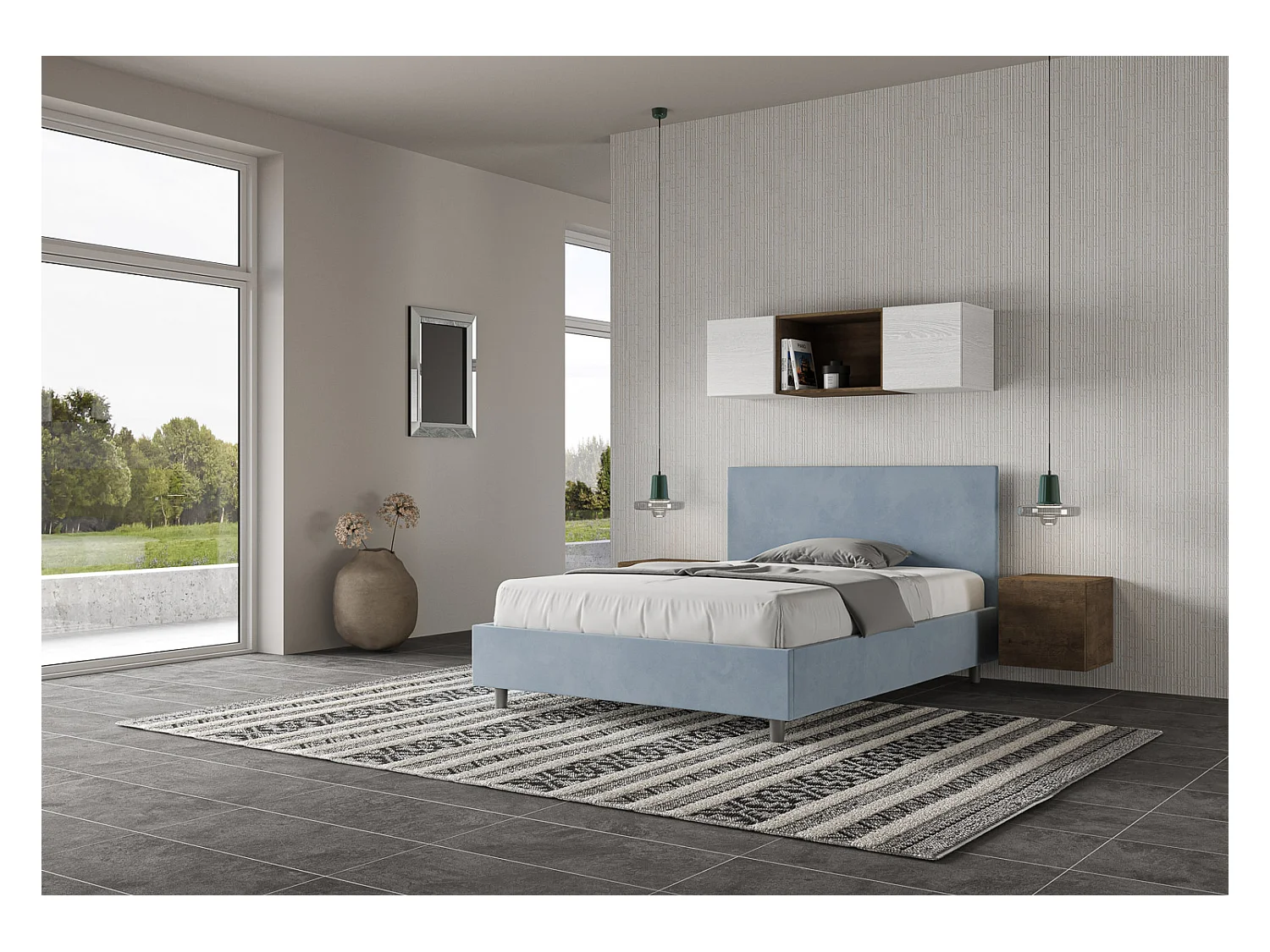 Lit double coffre rembourré 140x210 microfibre bleu clair Adele
