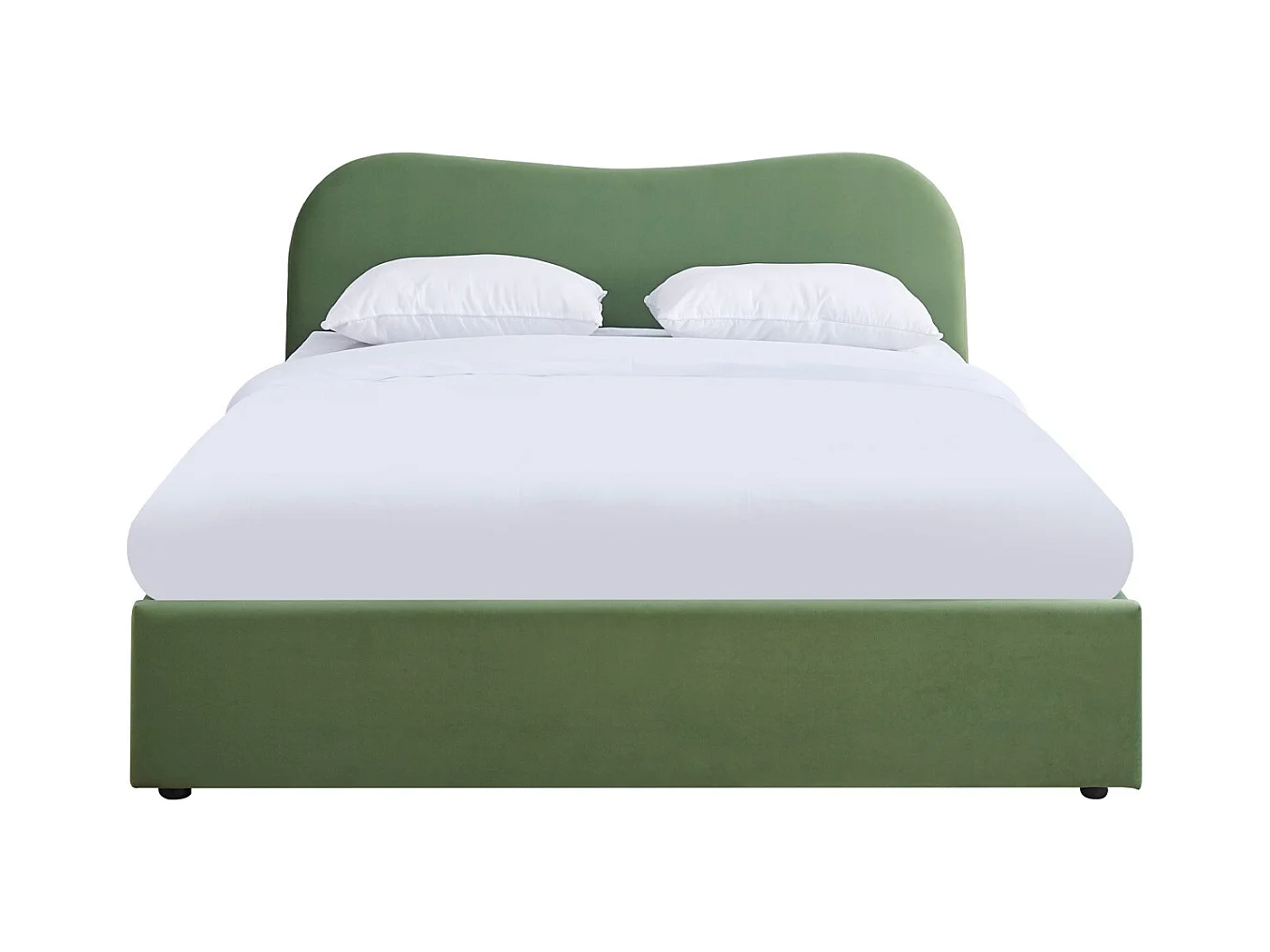 Lit coffre adulte 140x190 cm avec tête de lit matelassée en velours vert clair - Suzon