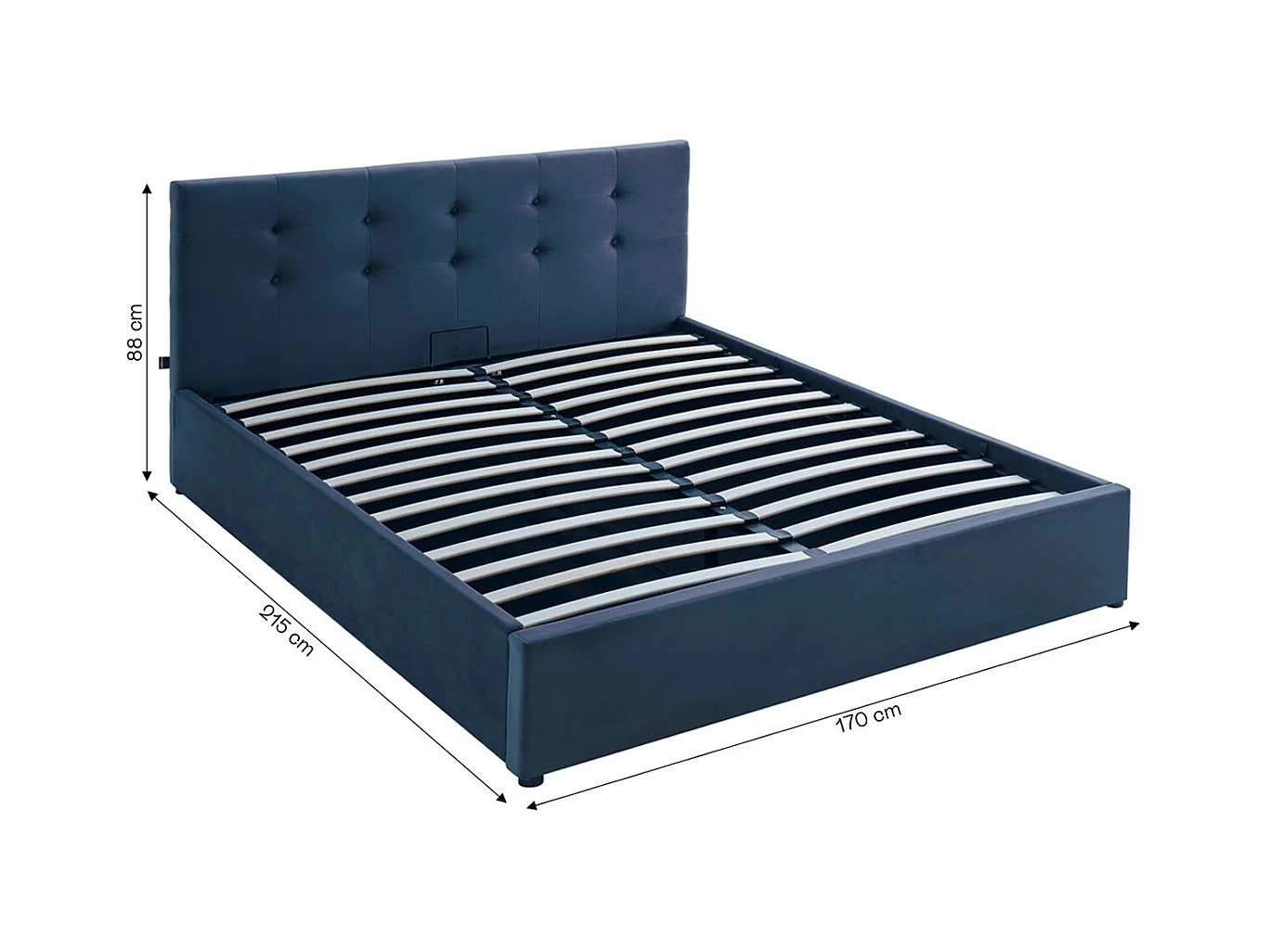 Lit coffre adulte 160x200 cm avec tête de lit matelassée en velours gris foncé et sommier - Tina