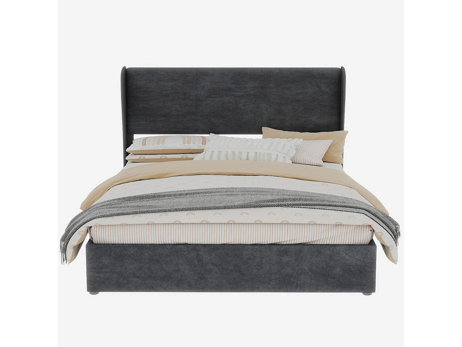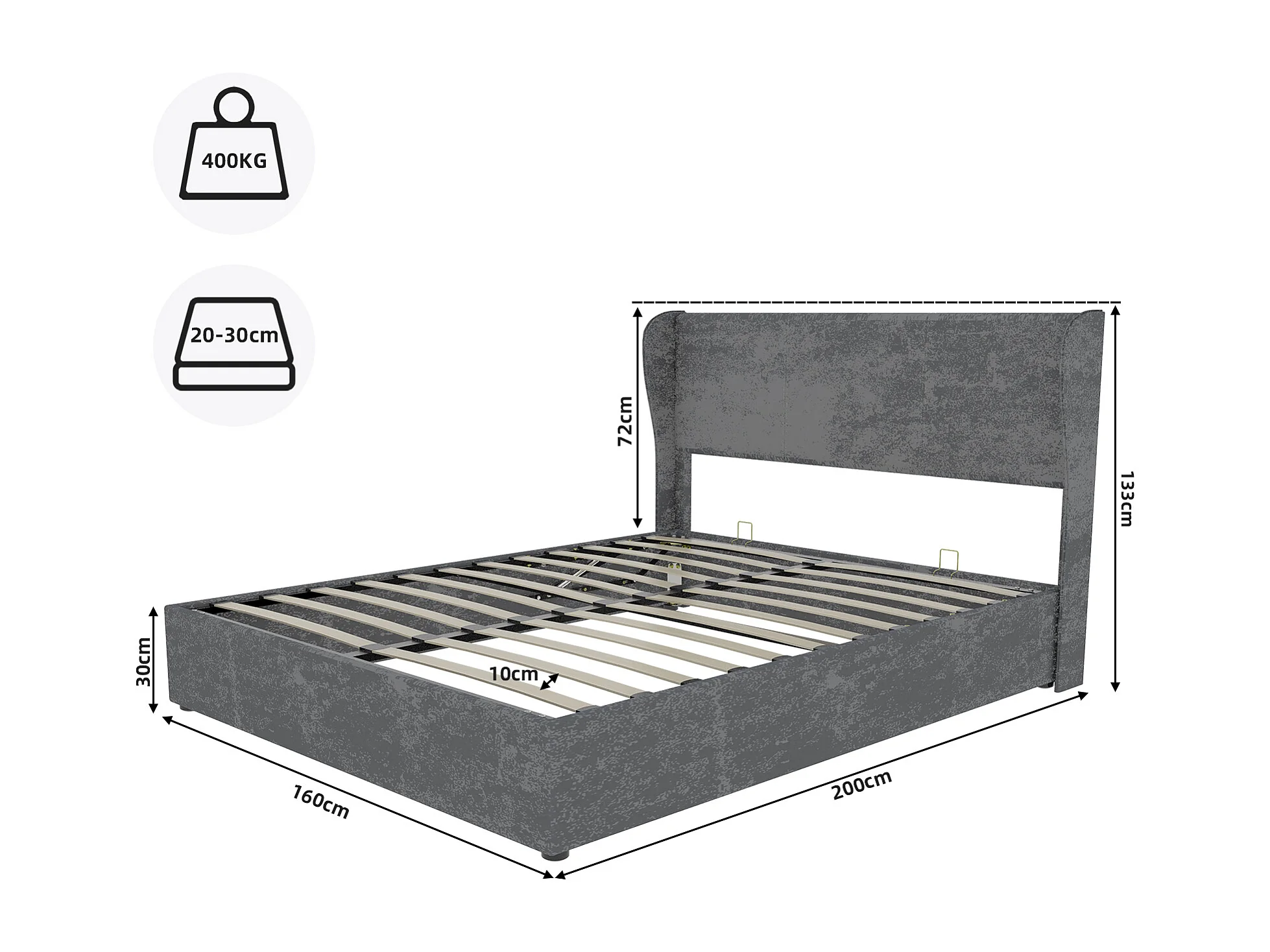 Lit coffre adulte 160x200cm - Lit double rembourré en velours gris (sans matelas)
