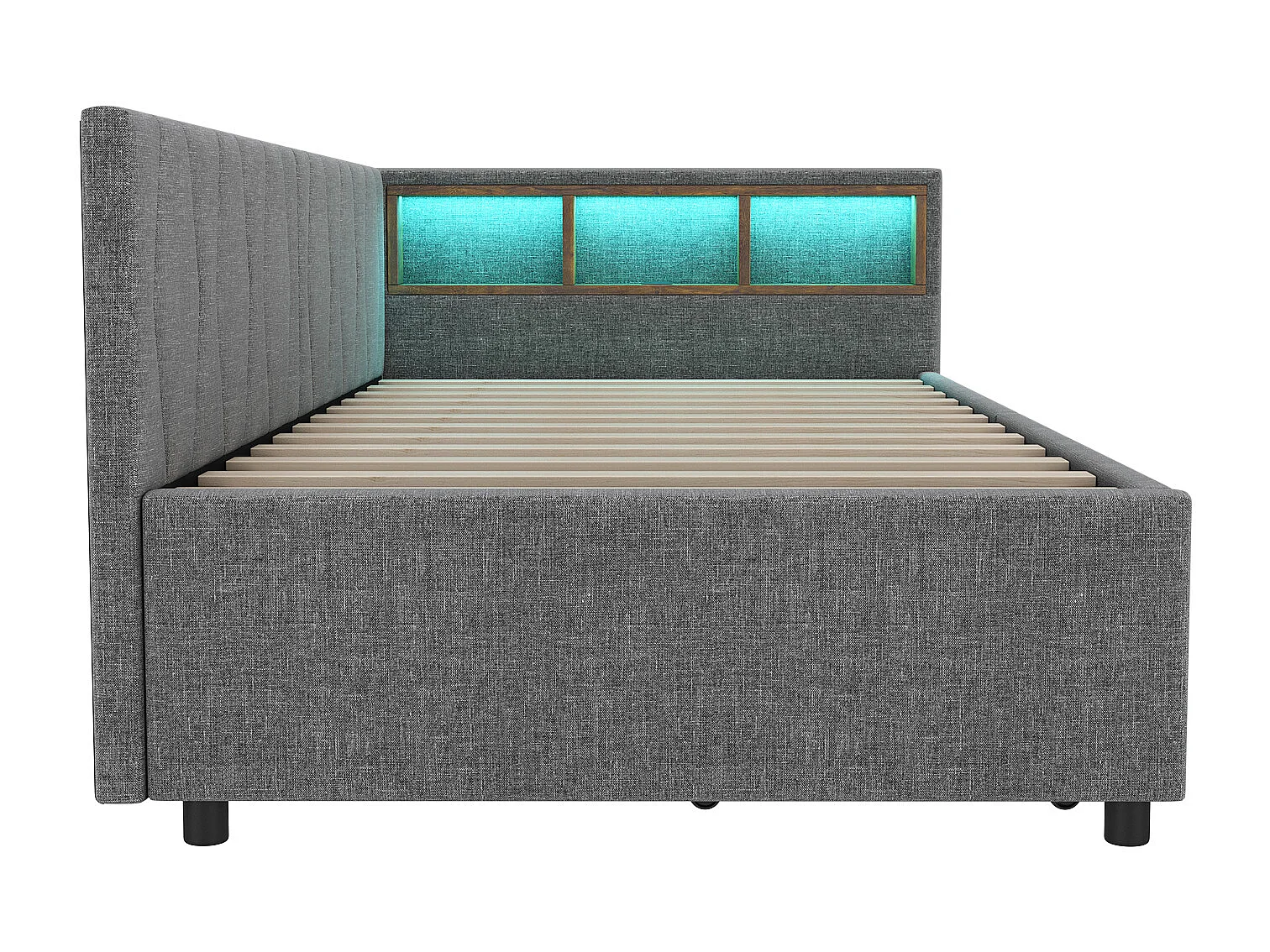Lit coffre 90x200cm Grande capacité de rangement, structure lin et MDF, style contemporain, Gris (Sans matelas)