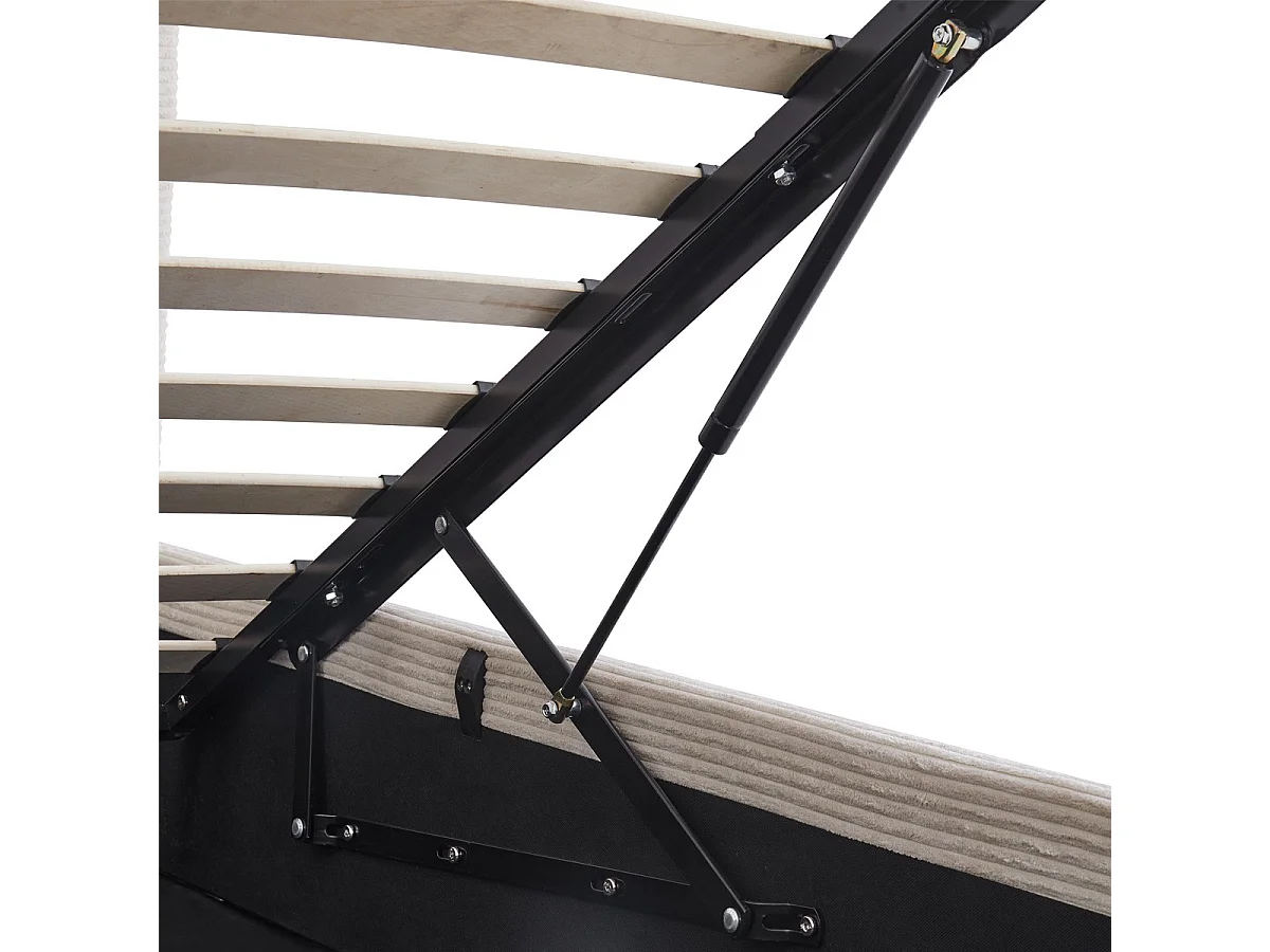 Lit coffre adulte 180x200 cm avec tête de lit matelassée en velours côtelé beige et sommier - Tina
