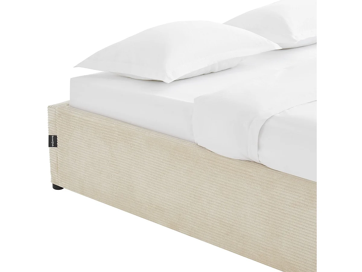 Lit coffre adulte 180x200 cm en velours côtelé beige avec sommier - Handy