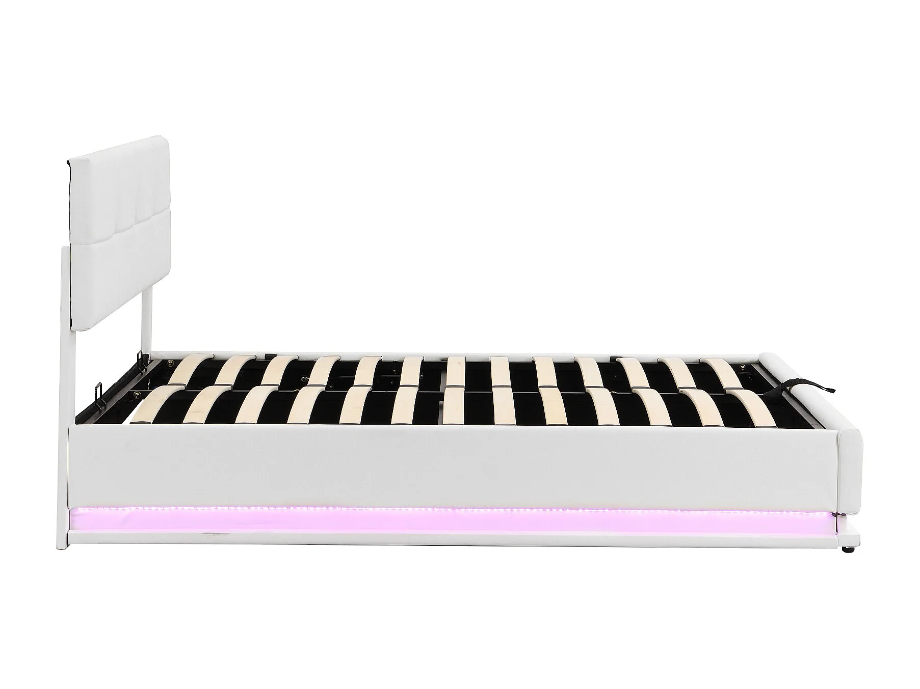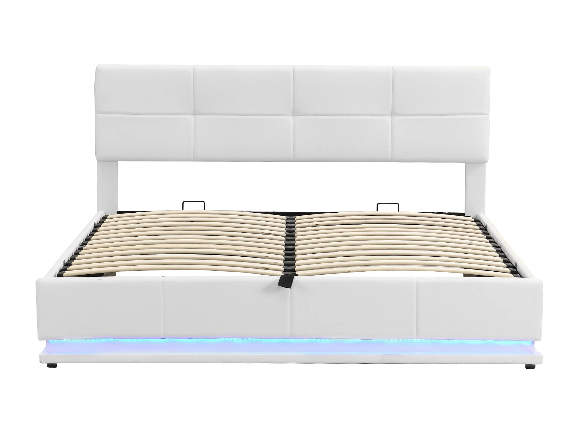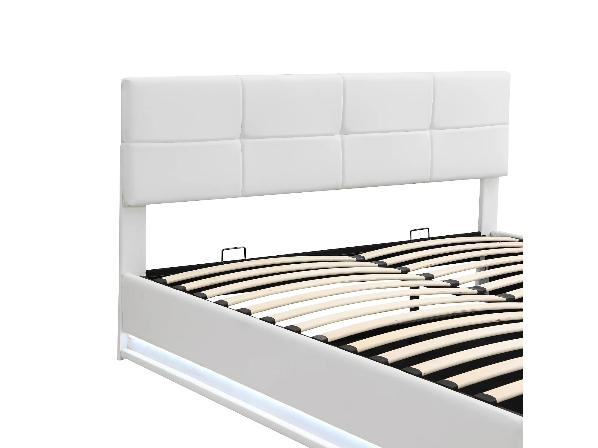 Lit coffre adulte 180x200cm blanc en PU, tête de lit réglable en hauteur, sommier à lattes, sans matelas