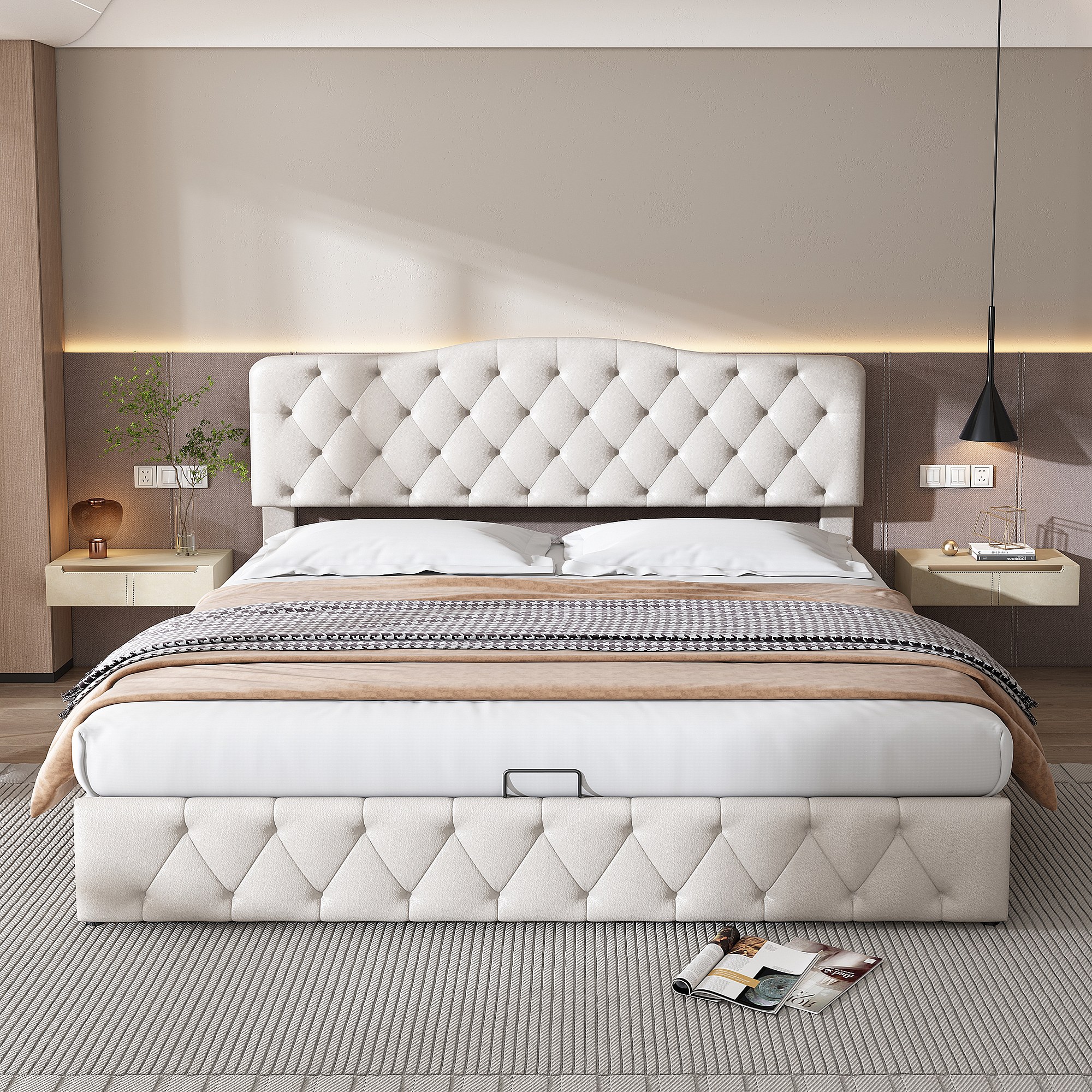 lit coffre adulte 180x200cm blanc, tête de lit réglable en hauteur, PU, sans matelas