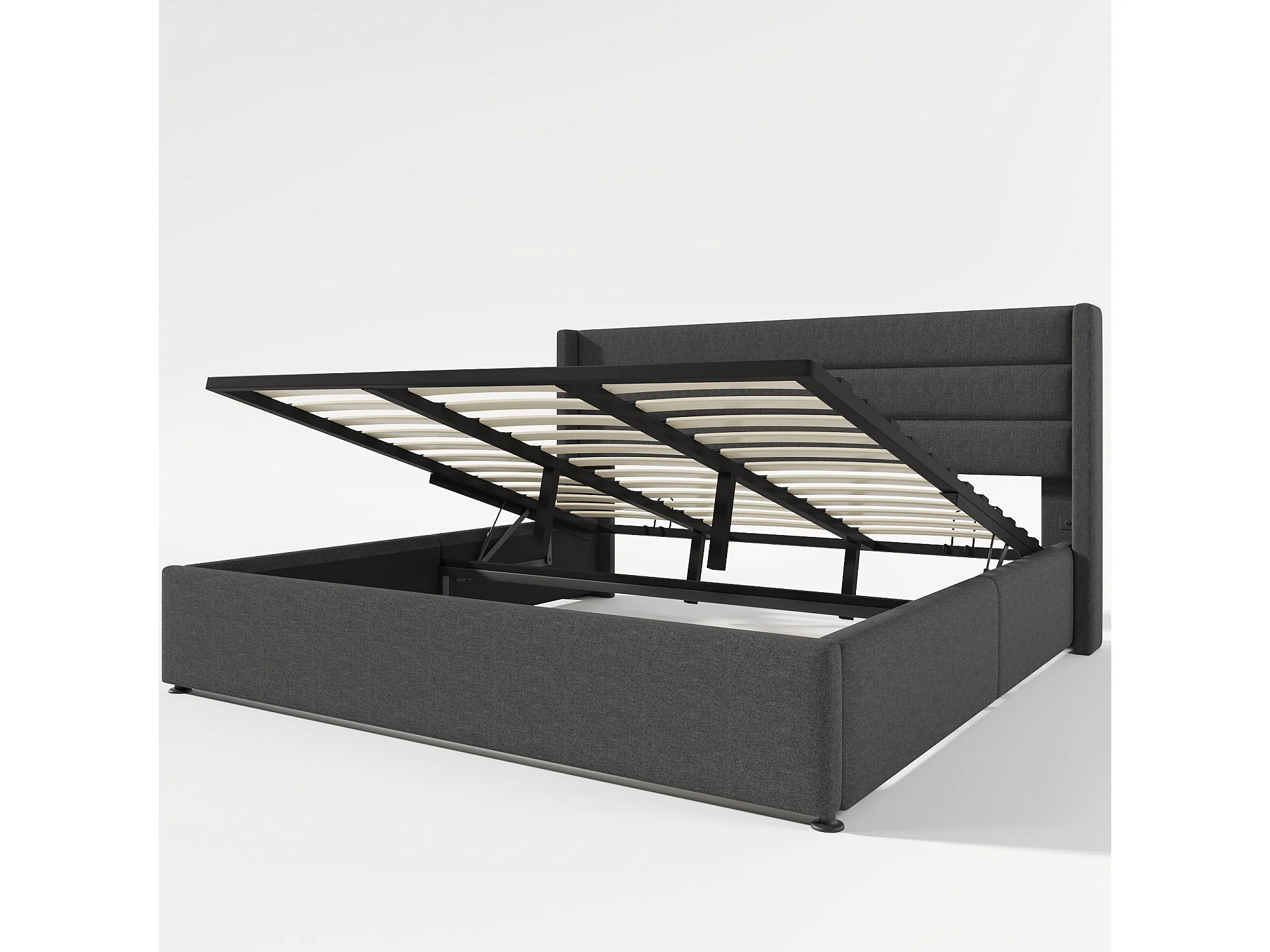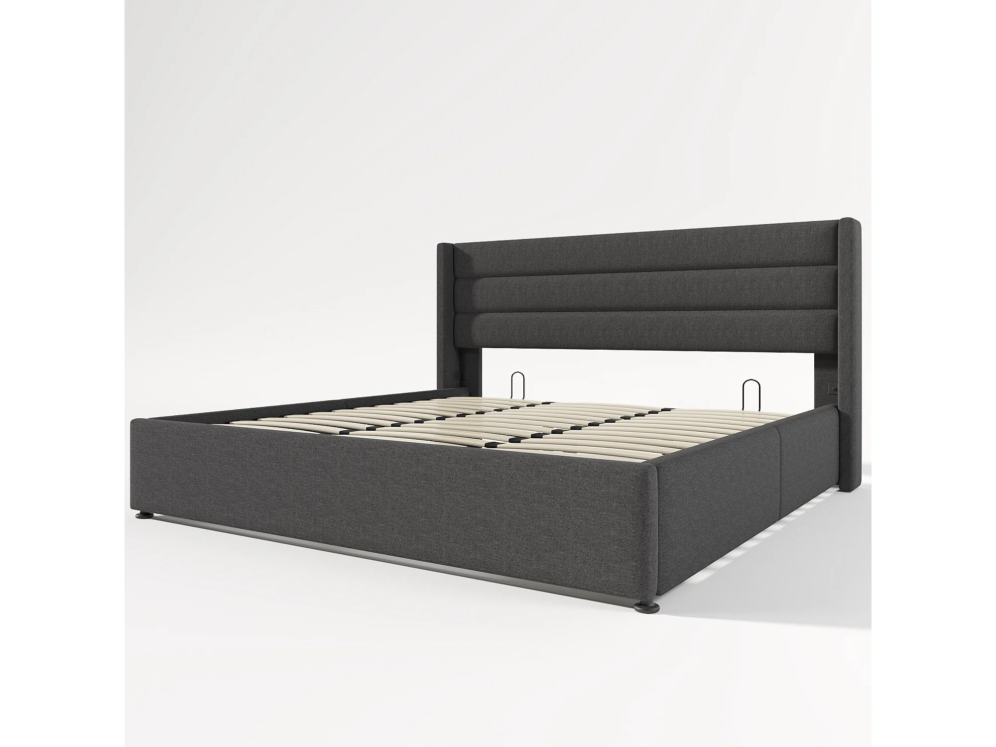 Lit coffre adulte 180x200cm, sommier à lattes en bois, métal+lin, gris, sans matelas
