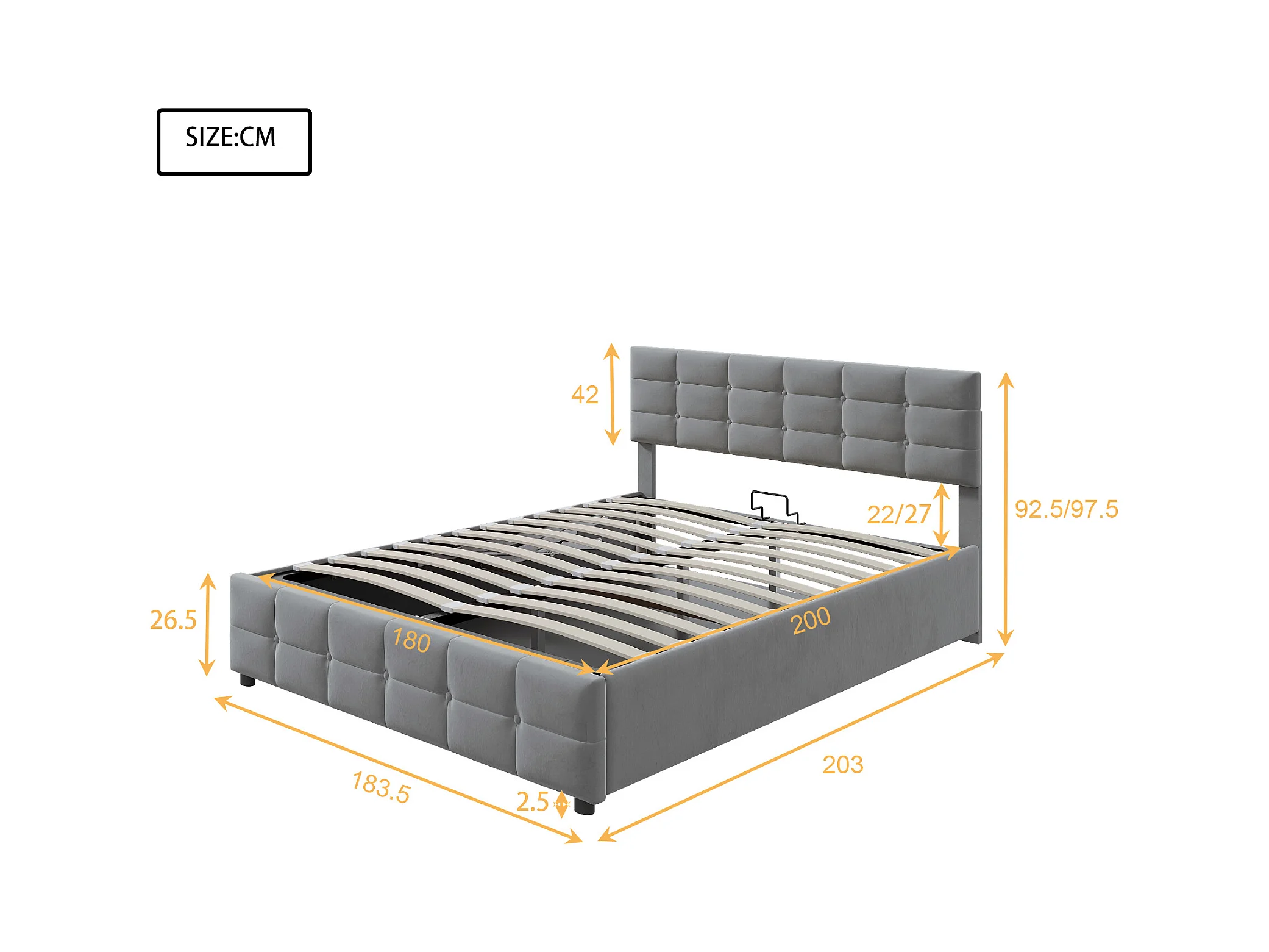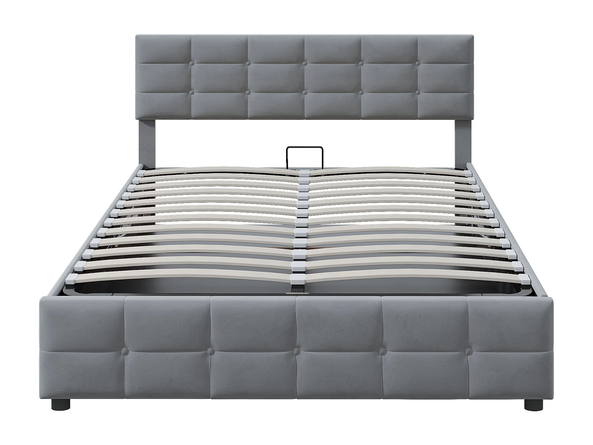 Lit coffre adulte 180x200cm, tissu velours hollandais, sommier à lattes, sans matelas, gris