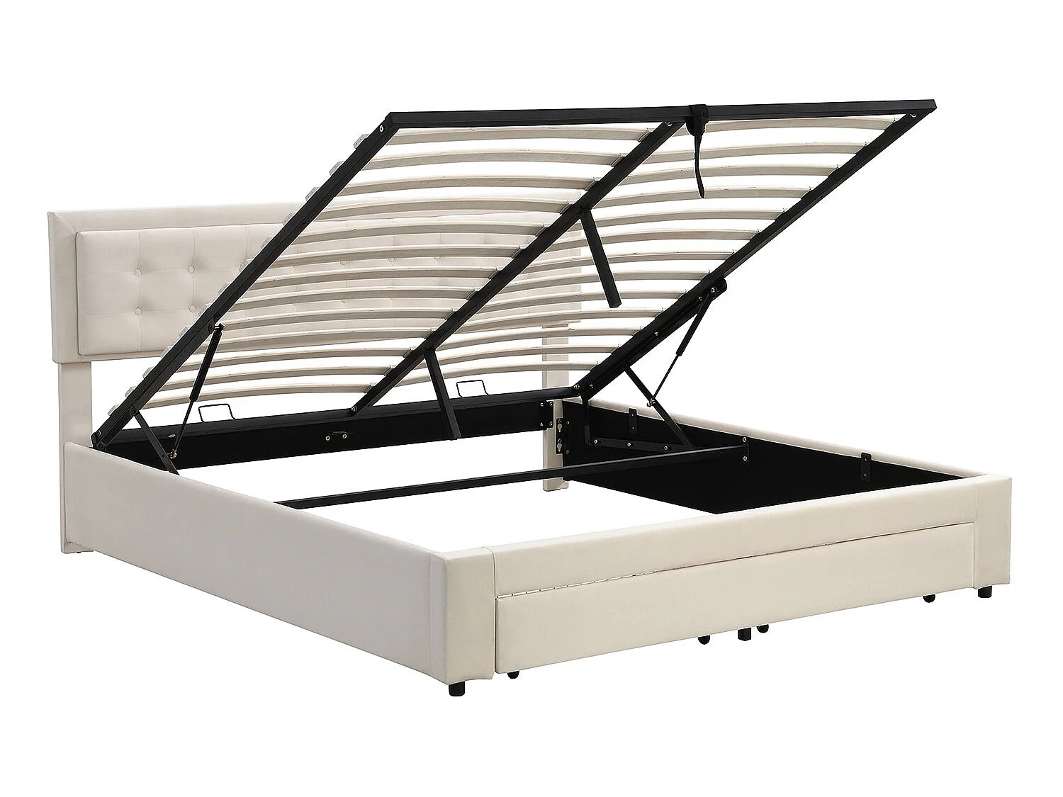 Lit coffre adulte avec tiroirs - tête de lit réglable - 180x200cm - beige - Sweiko