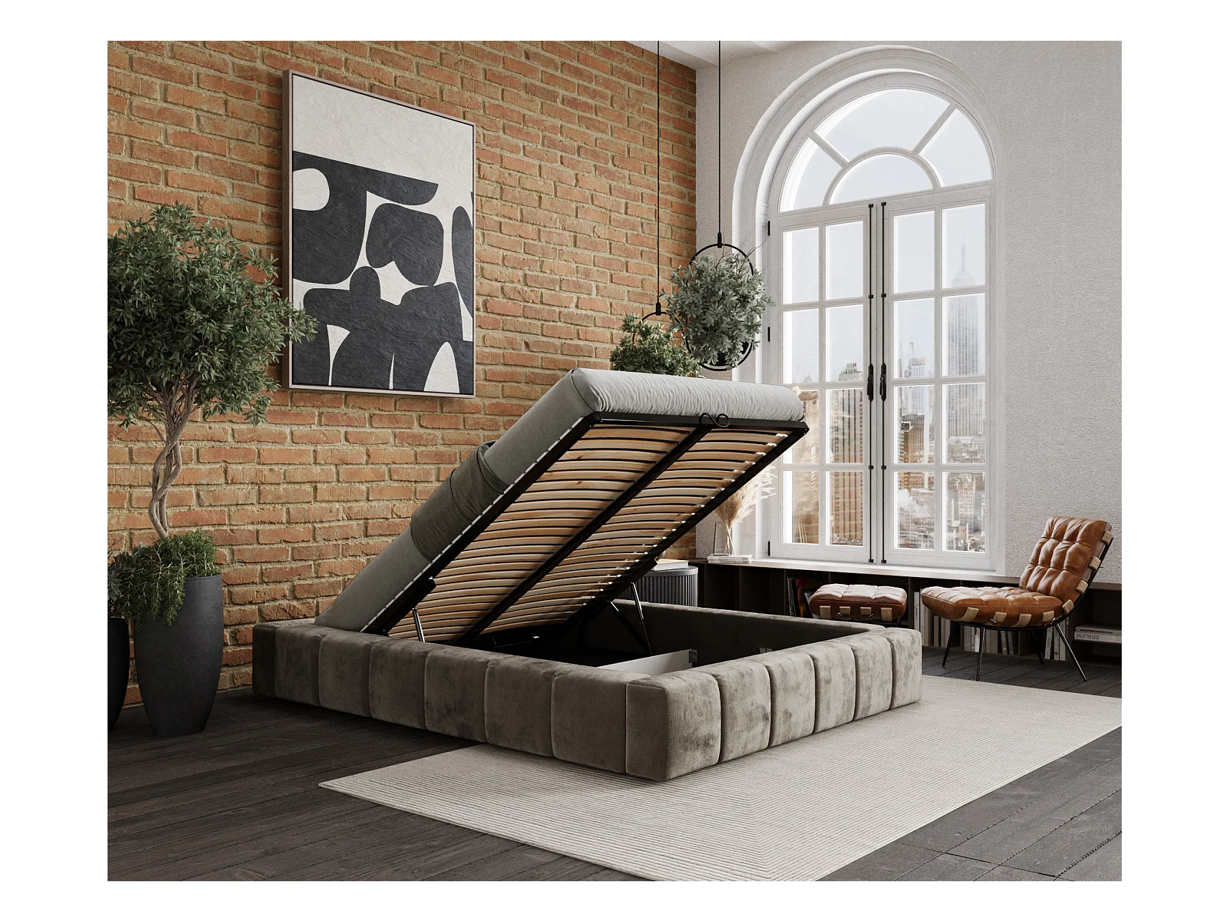 Lit coffre Aruba - 180 x 200 cm - chenille - beige