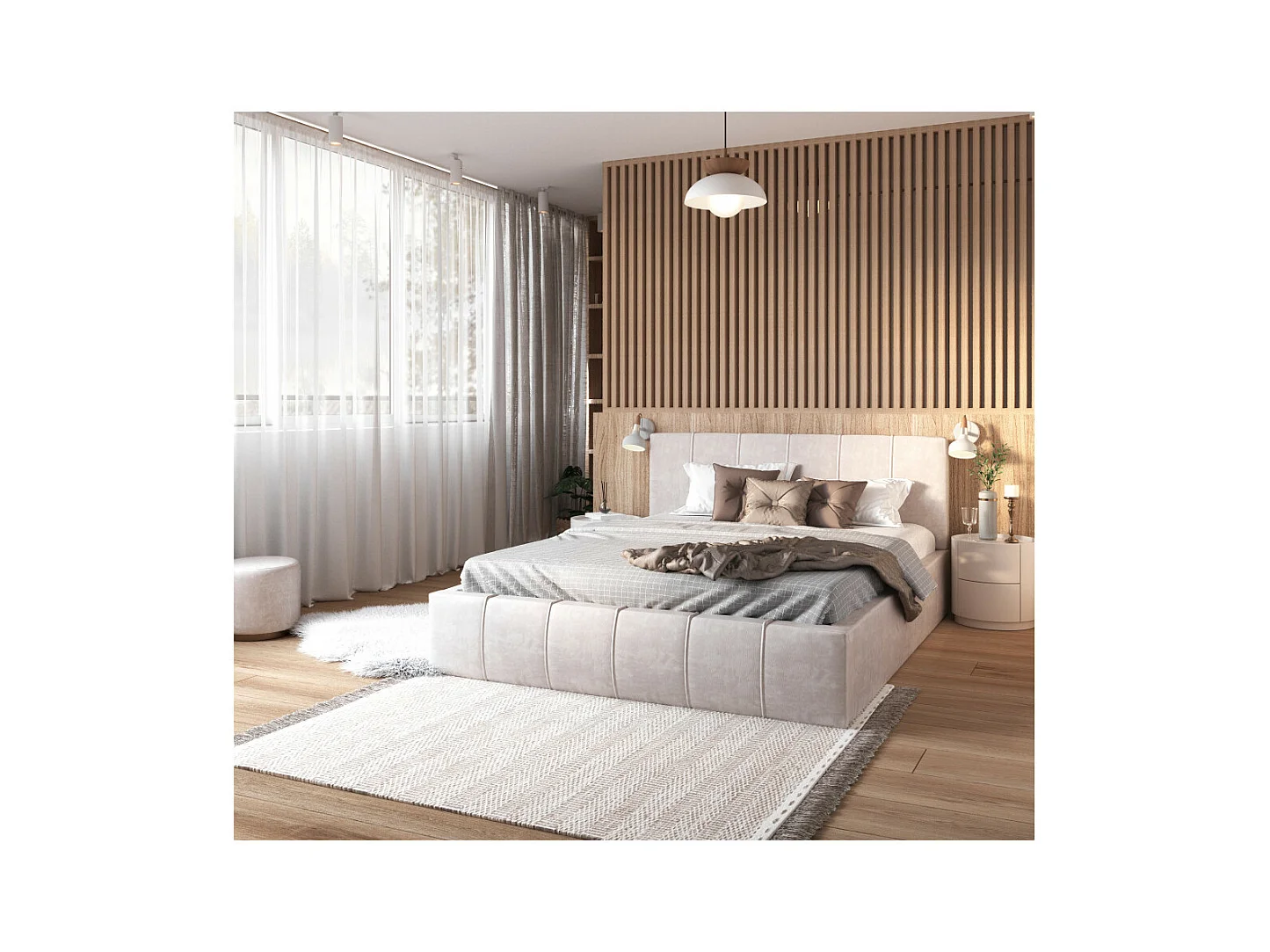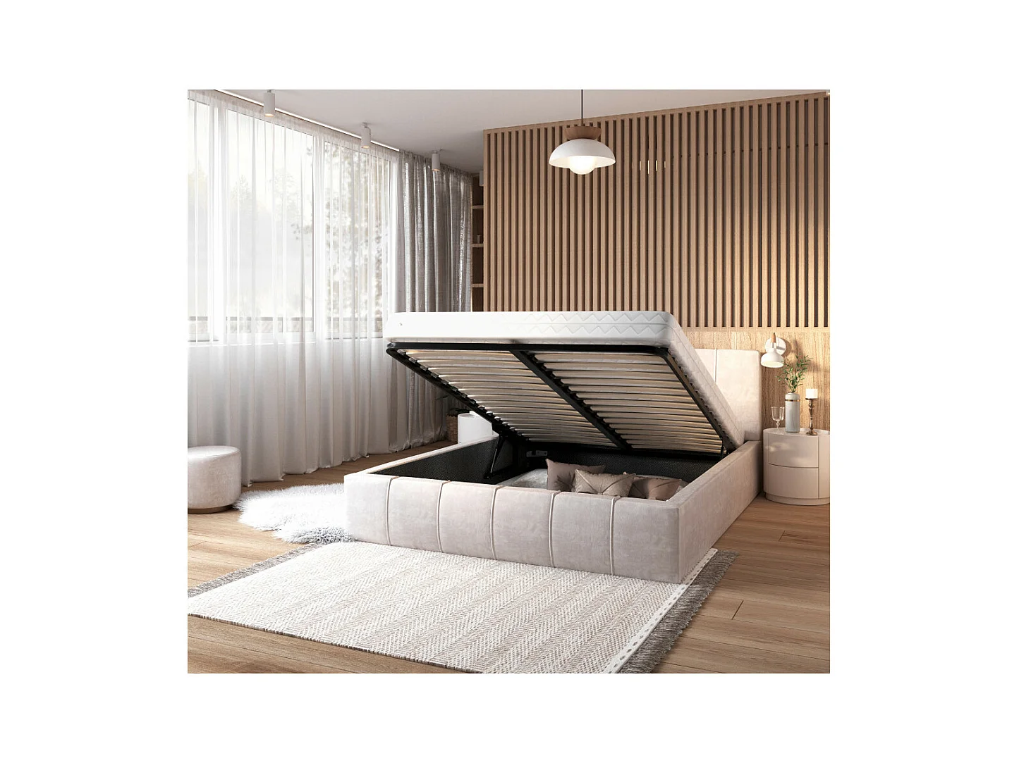 Lit coffre ATLANTA 120 x 200 cm avec sommier à lattes relevable Beige