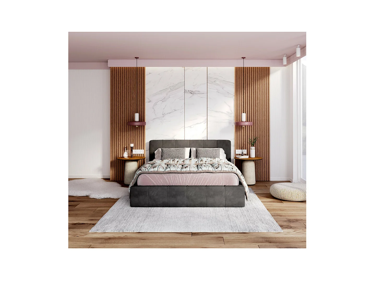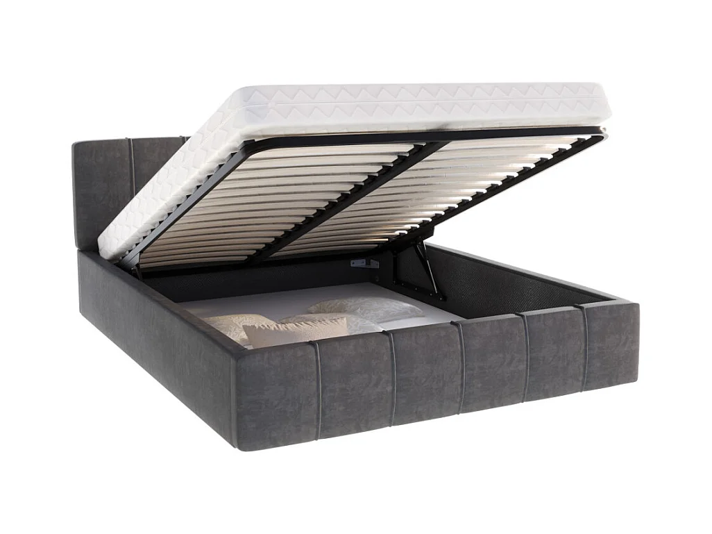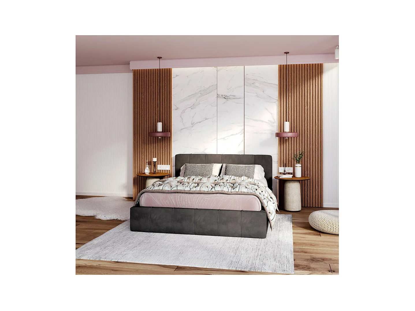 Lit coffre ATLANTA 140 x 190 cm avec sommier à lattes relevable Gris Foncé