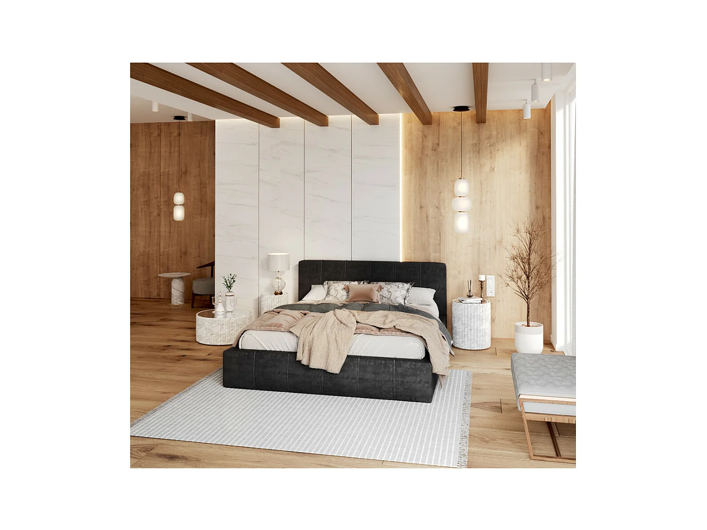 Lit coffre ATLANTA 140 x 190 cm avec sommier à lattes relevable Noir
