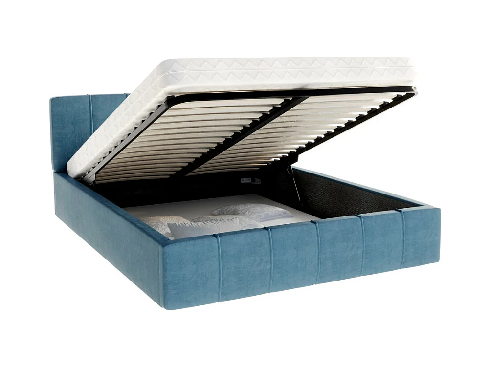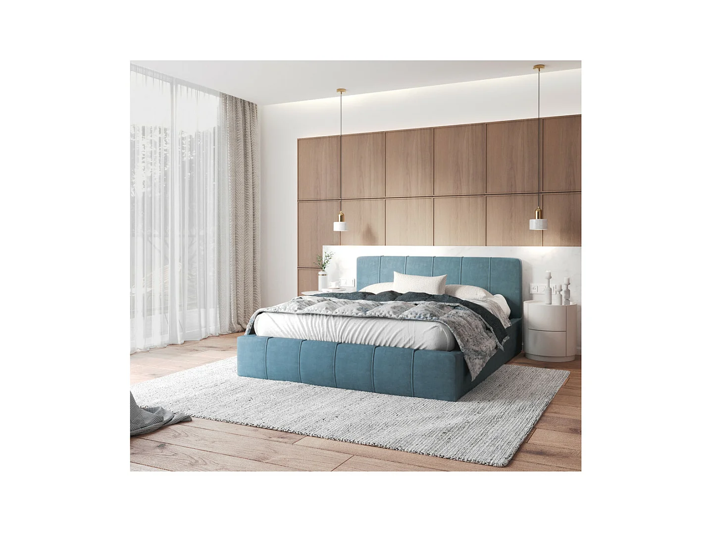 Lit coffre ATLANTA 160 x 200 cm avec sommier à lattes relevable Azur
