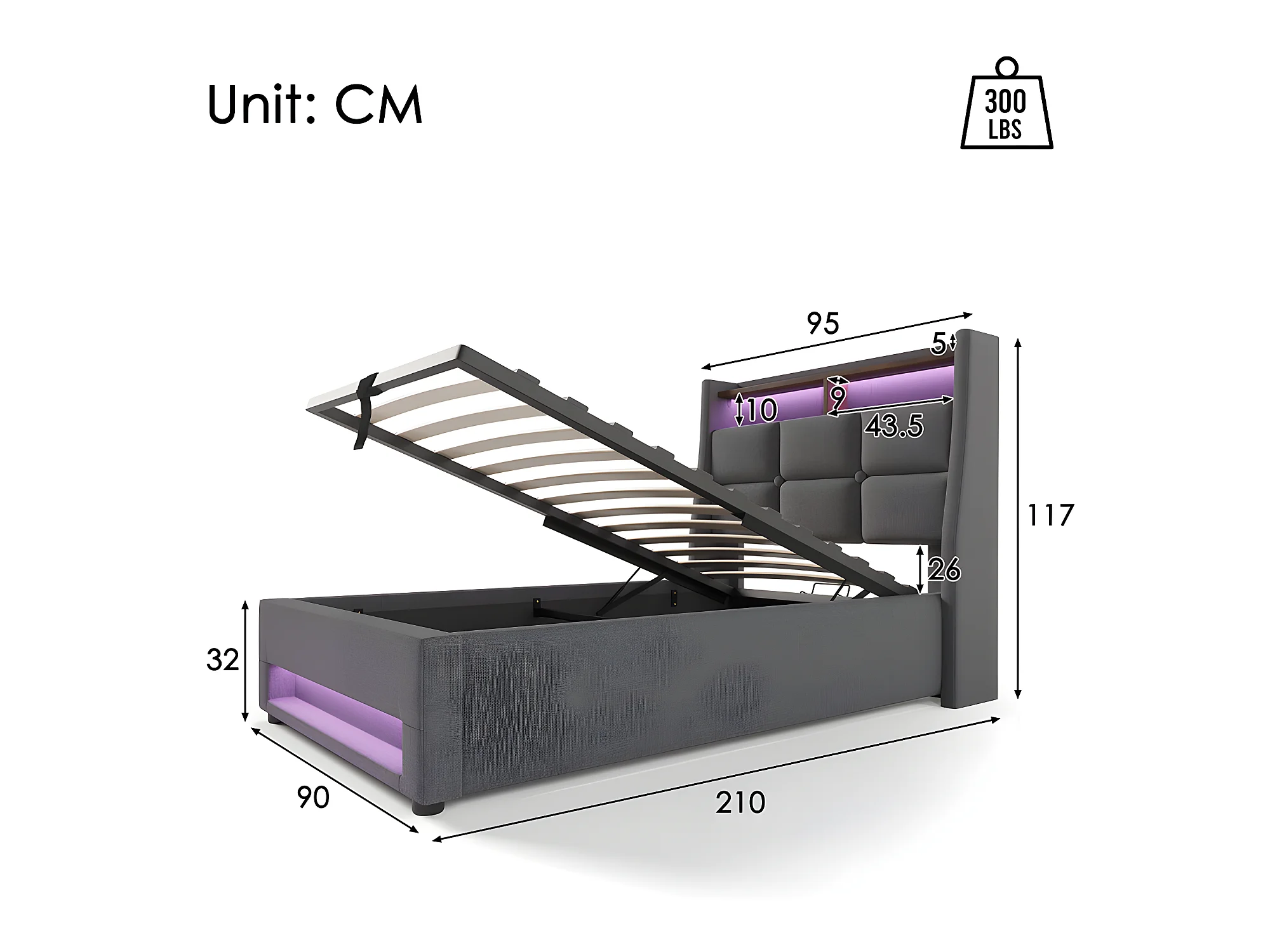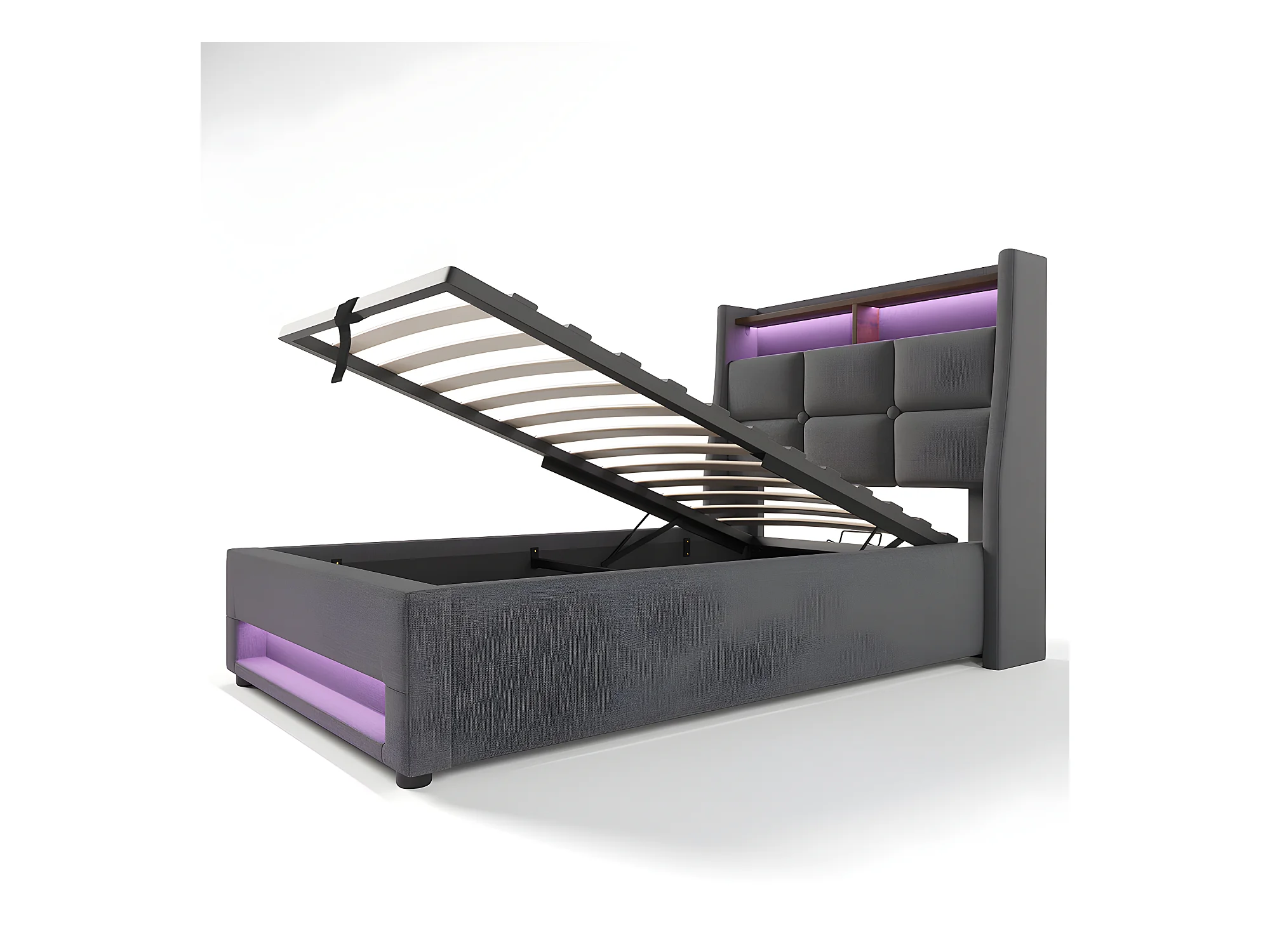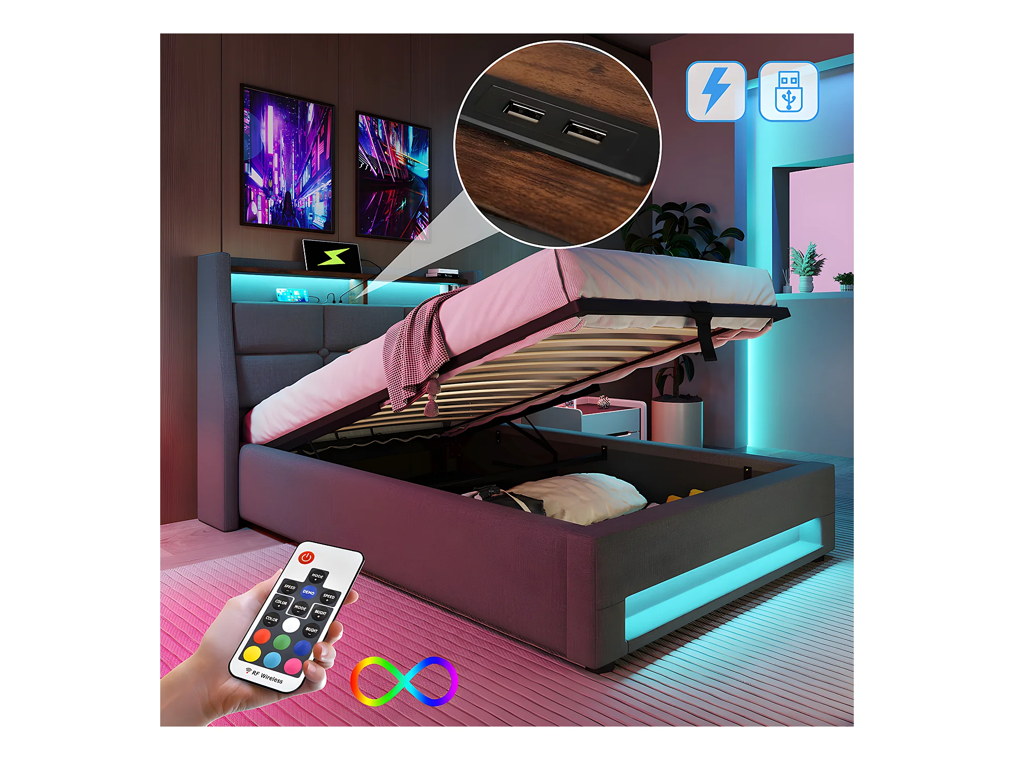 Lit coffre avec chargeur USB et LED - 160 x 200 cm - Beige - Sweiko