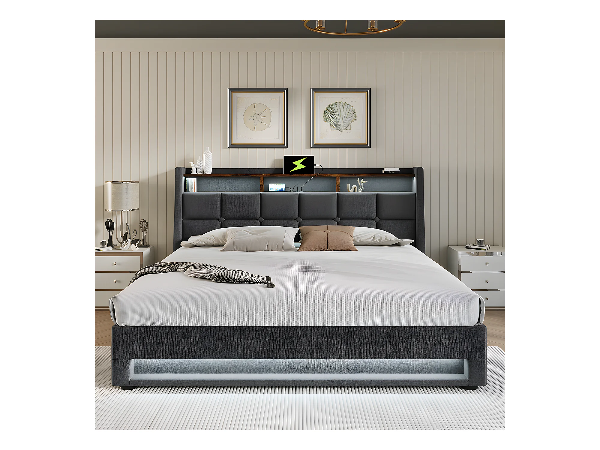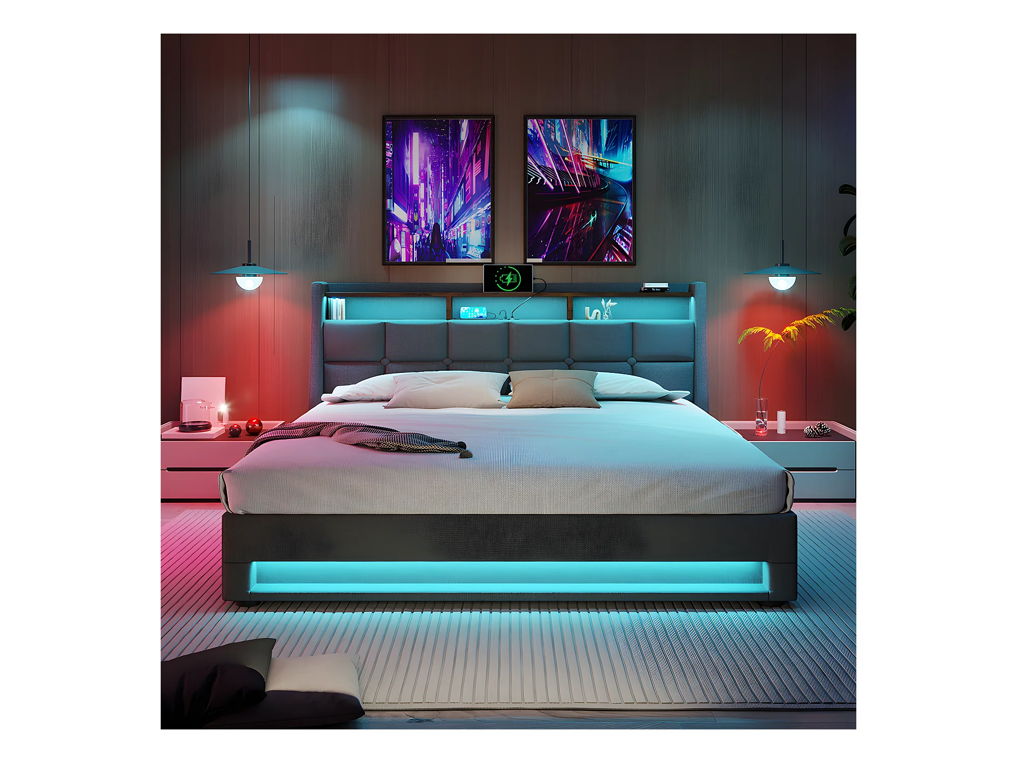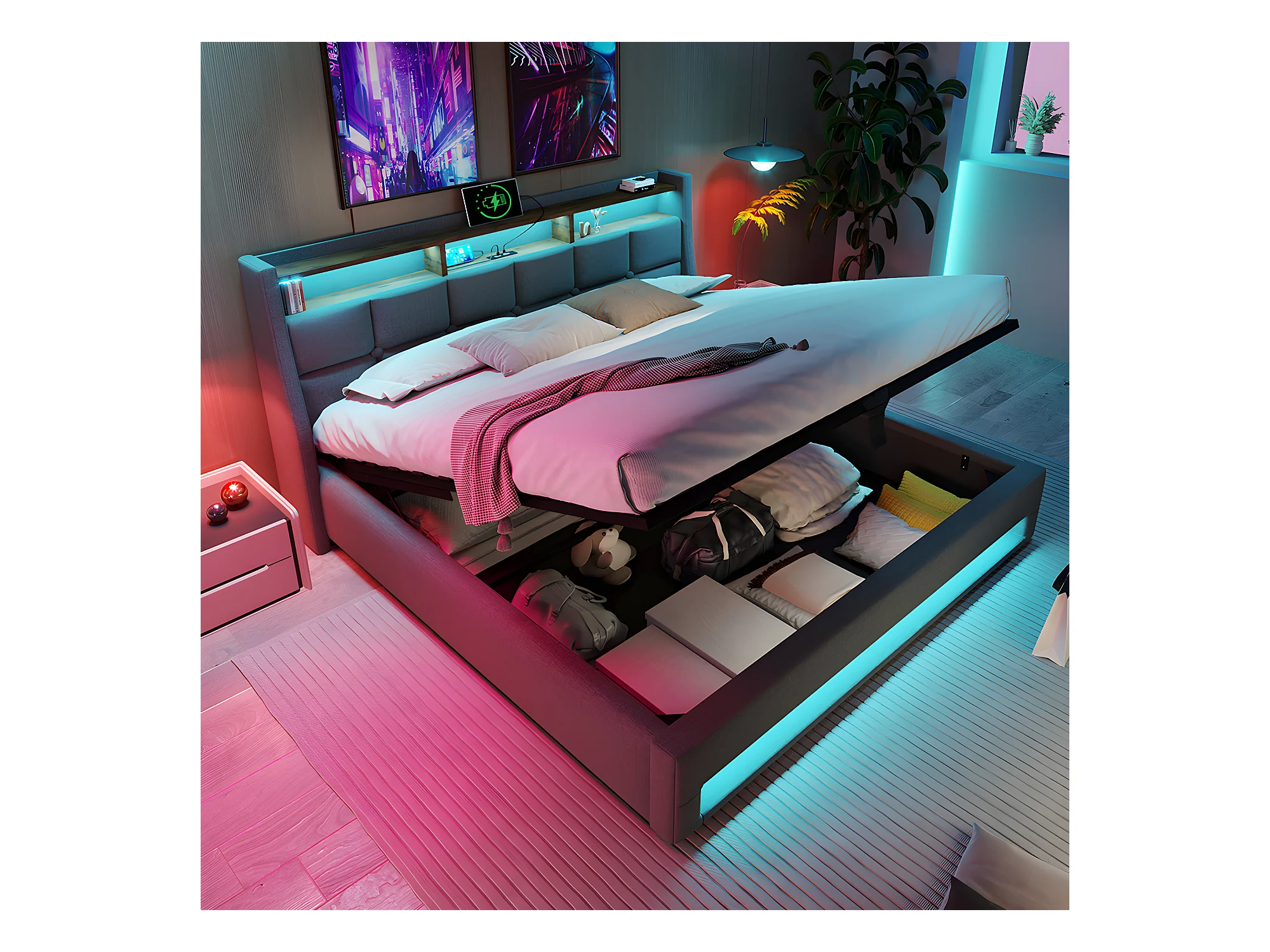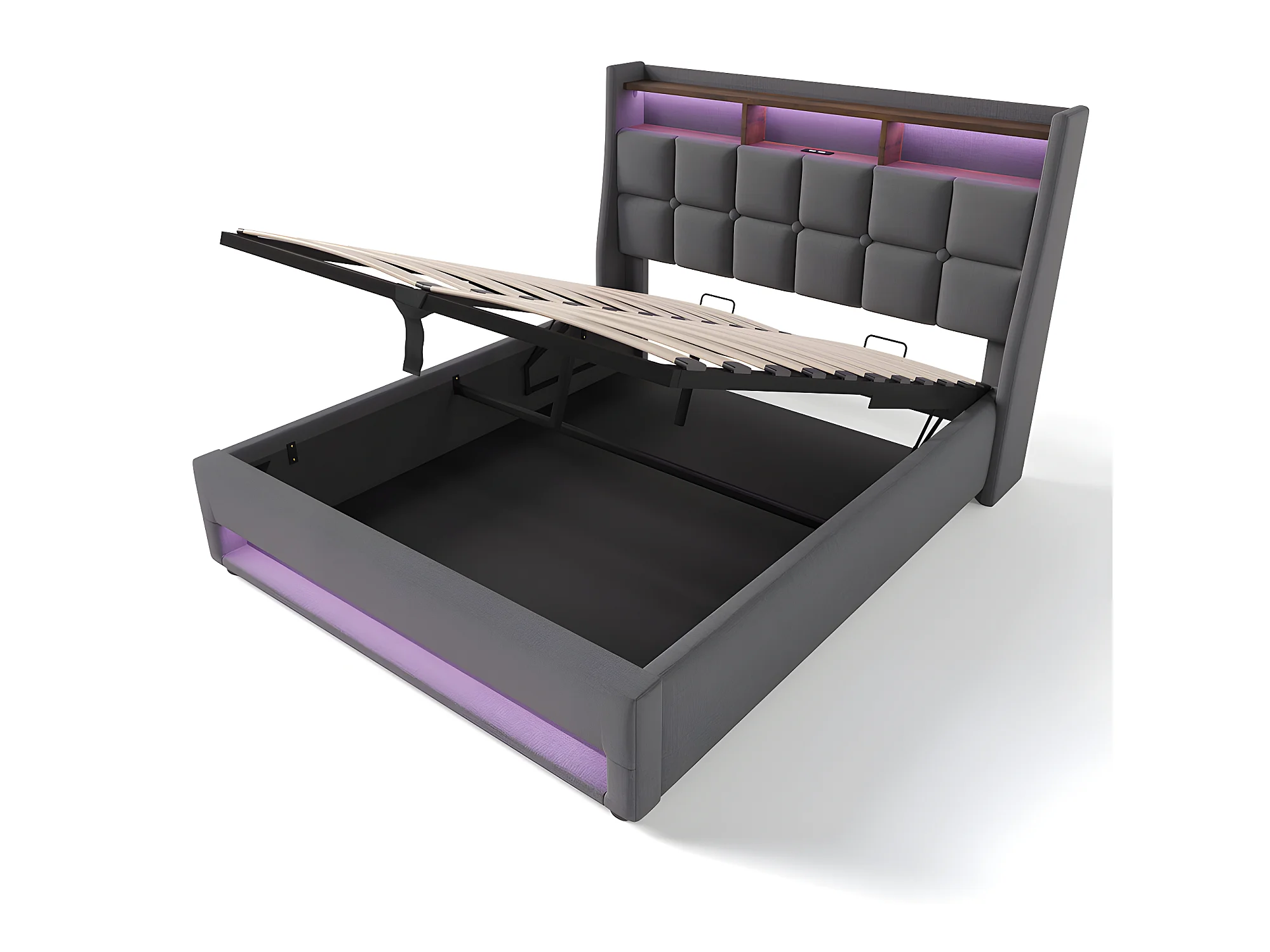 Lit coffre avec chargeur USB et LED - 180 x 200 cm - Gris - Sweiko