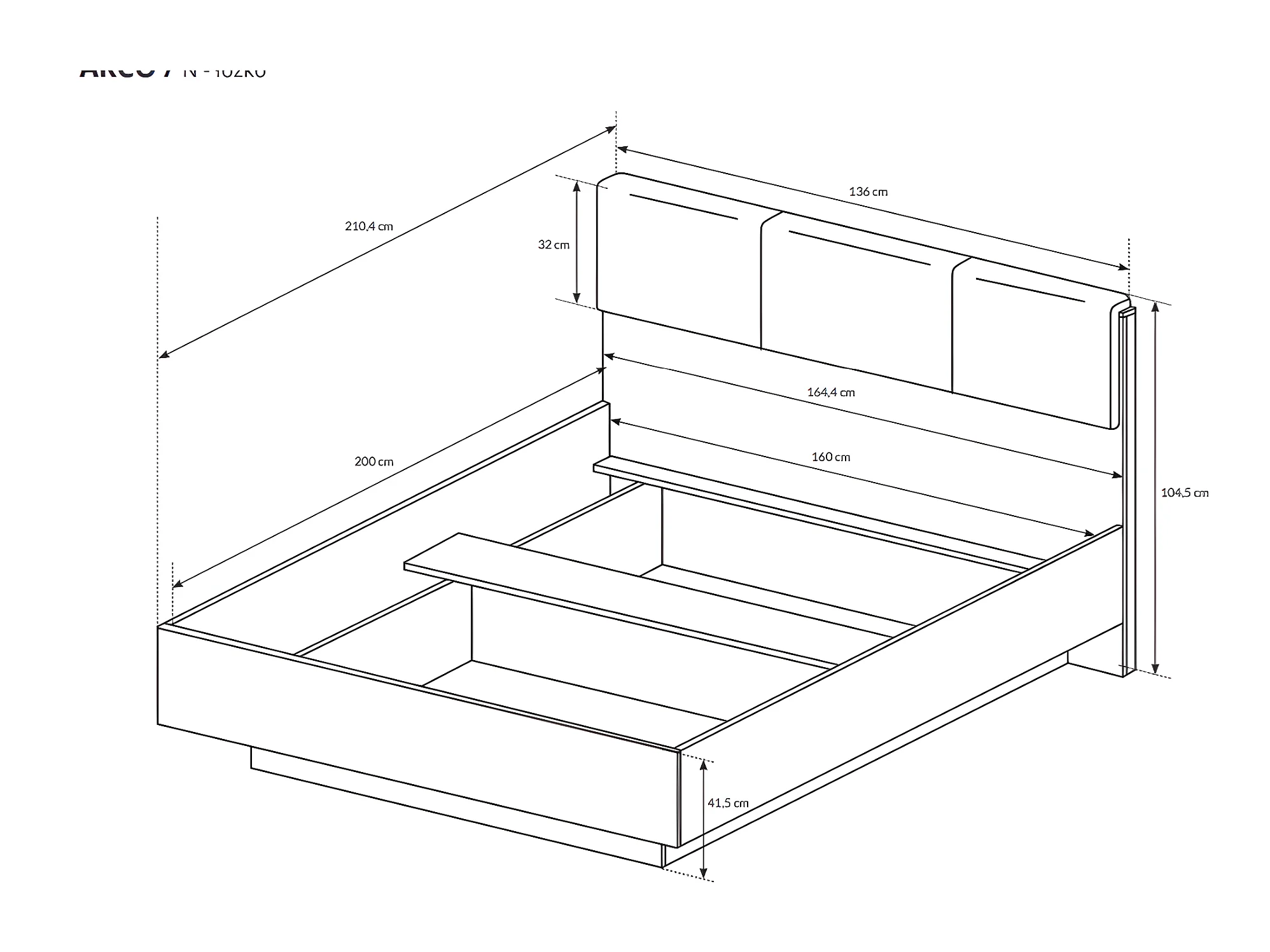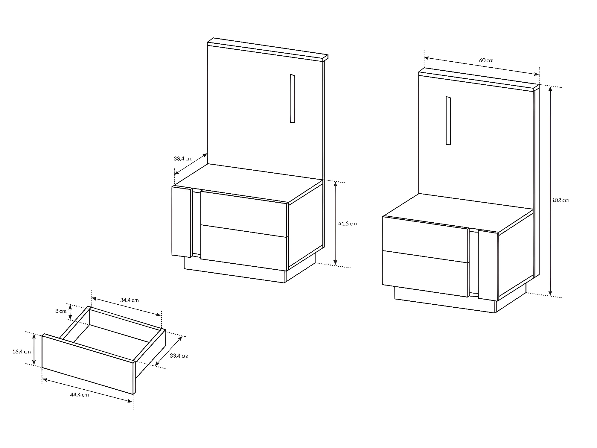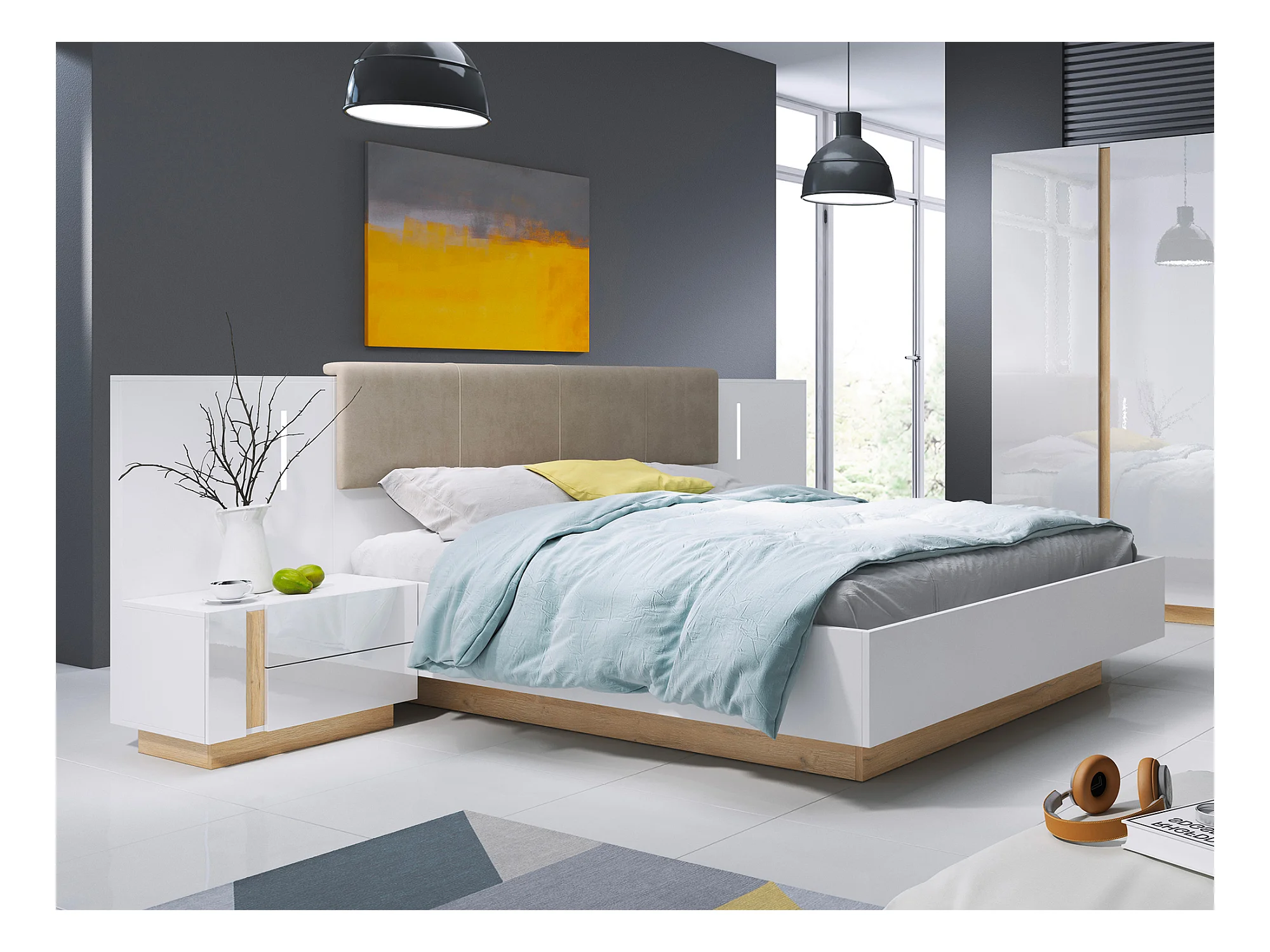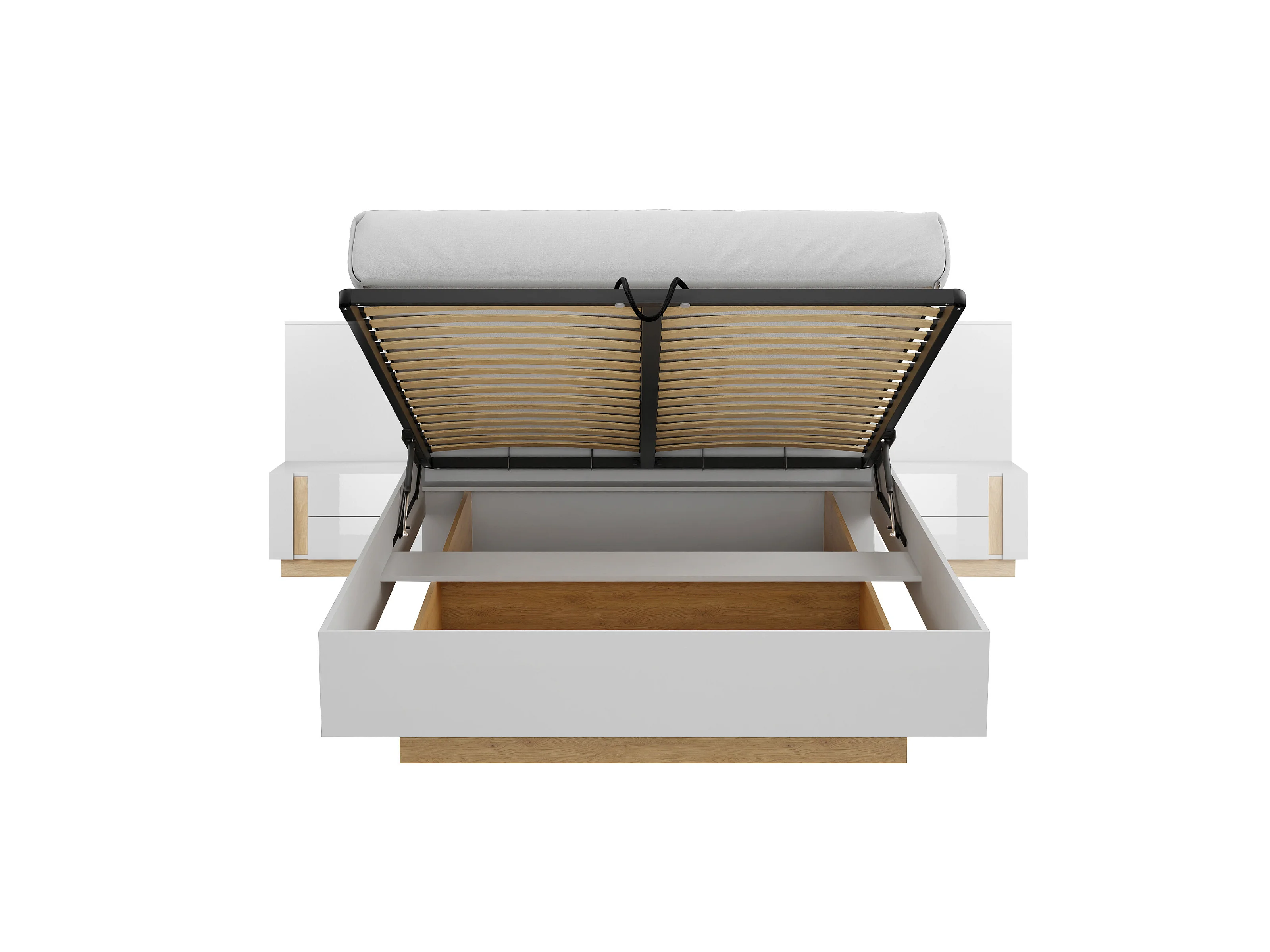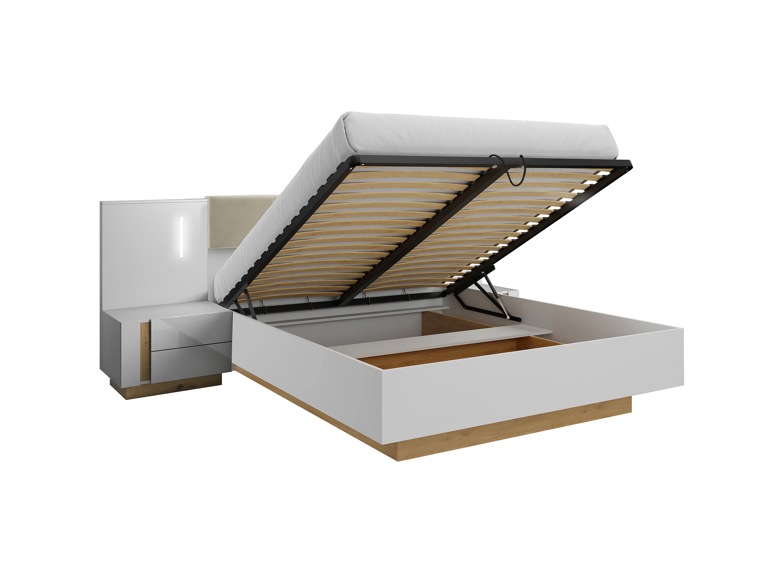 Lit coffre avec chevets 160 x 200 cm - Avec LEDs - Blanc et naturel + Matelas - MURARI