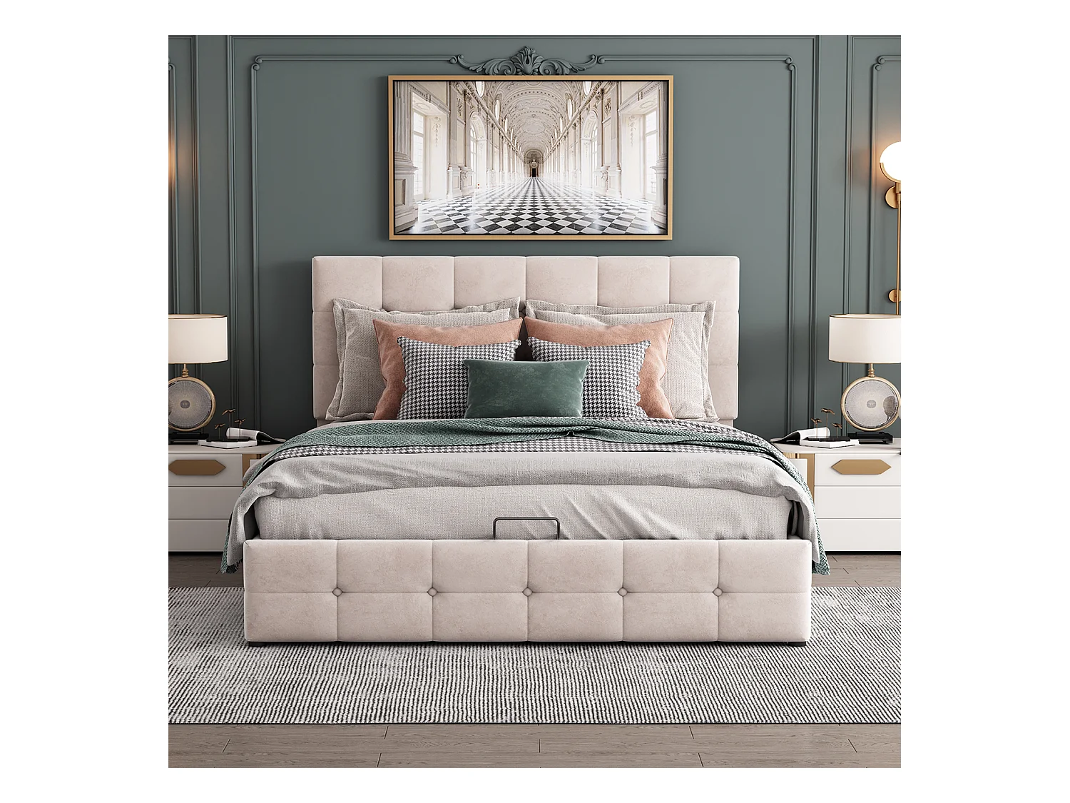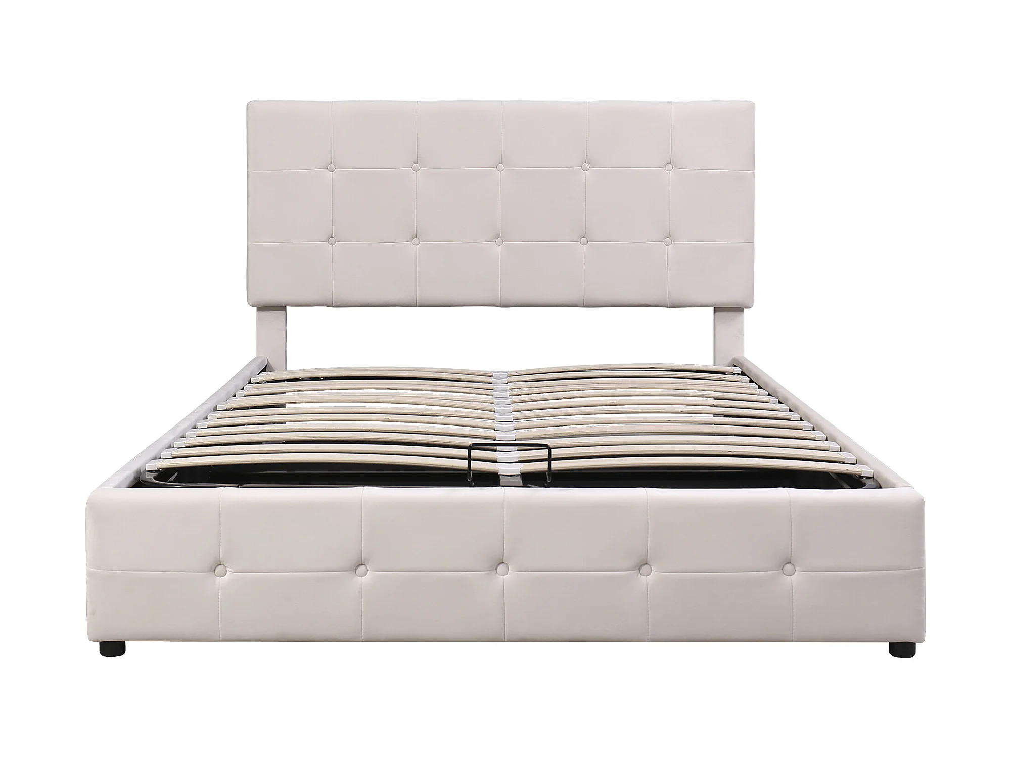 Lit coffre - avec élévation hydraulique lit de rangement - blanc crème - Sweiko