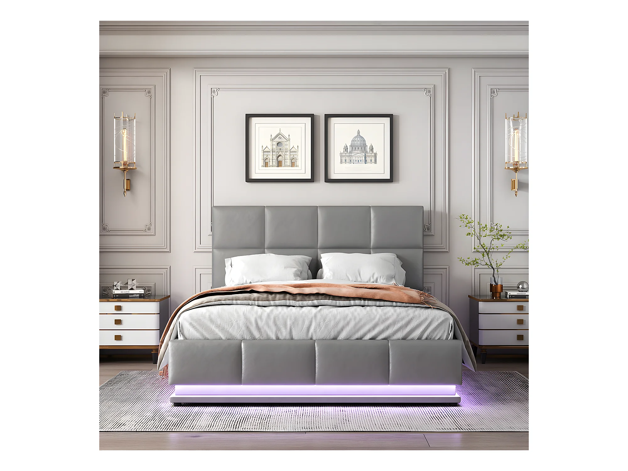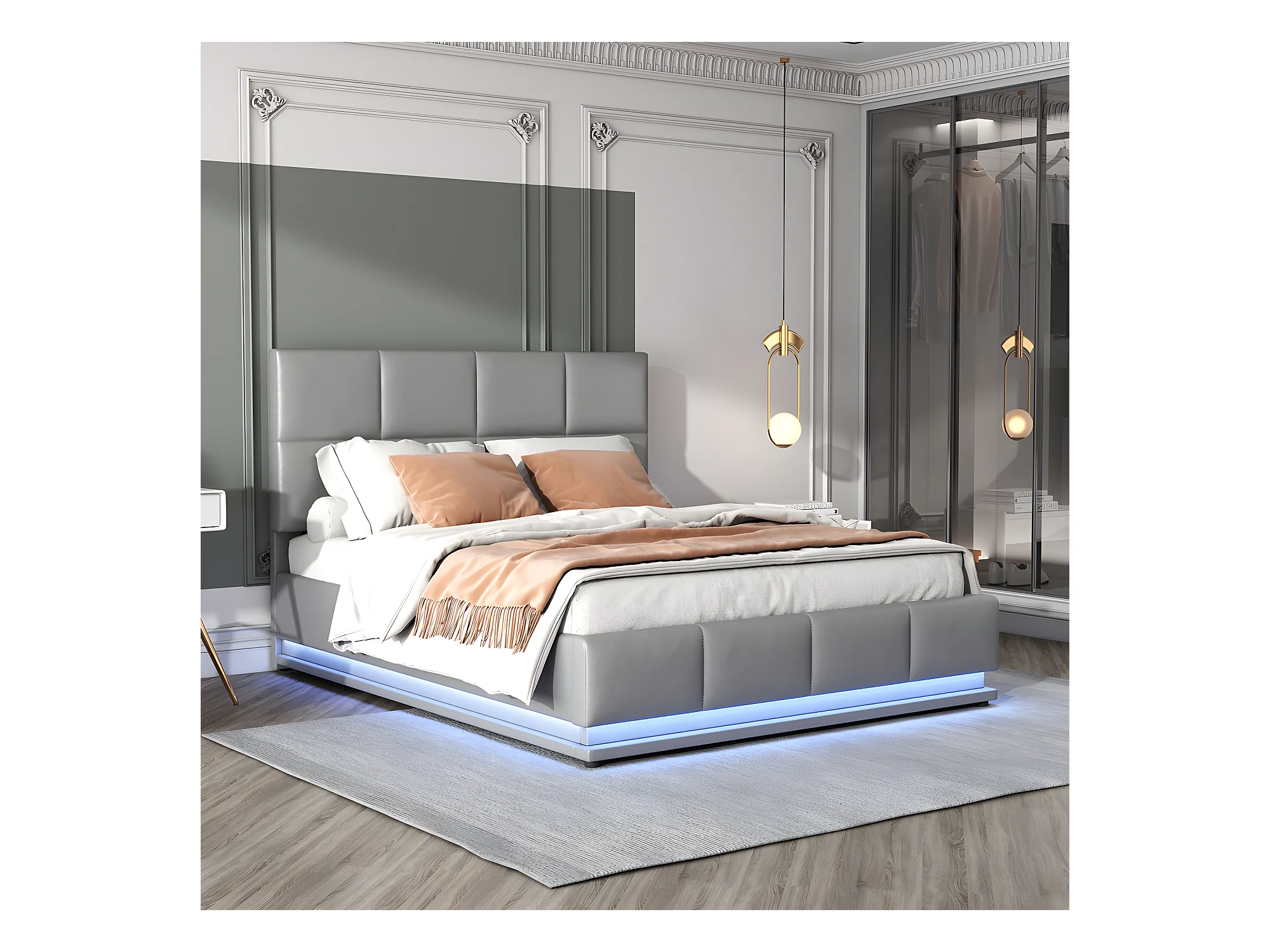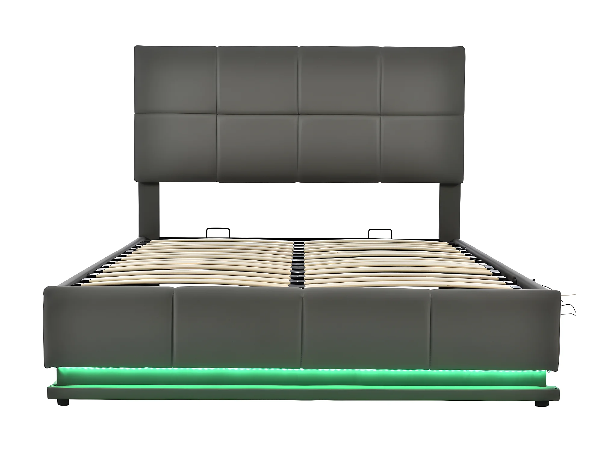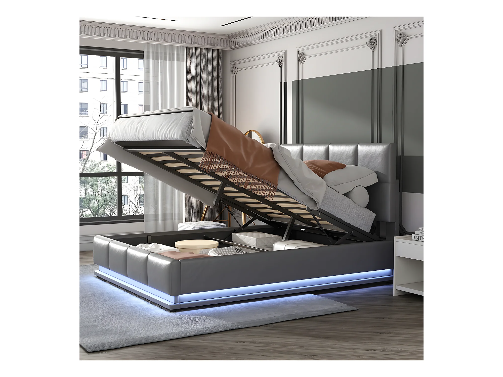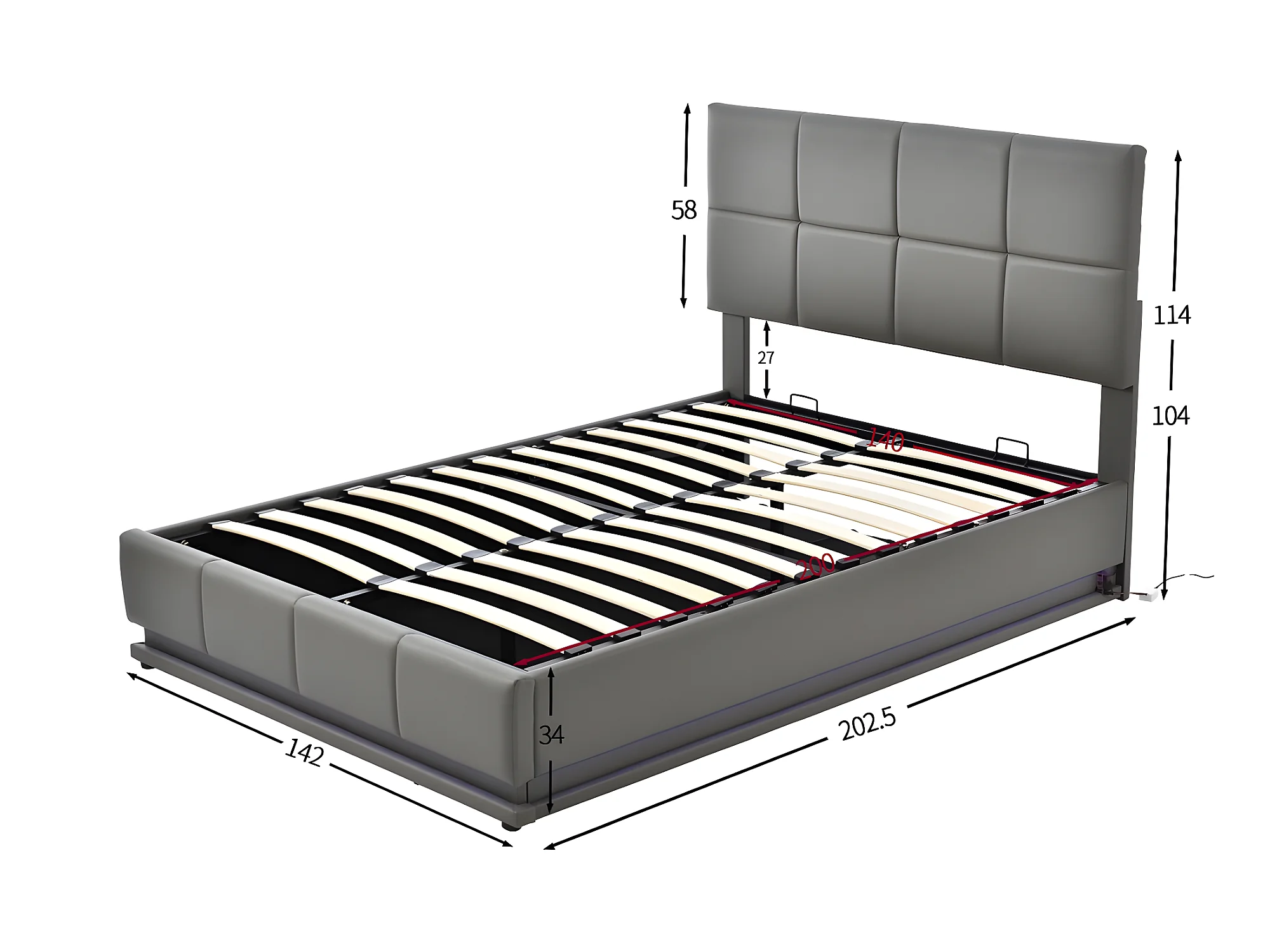 Lit coffre avec LED Tête de lit capitonnée - 140 x 200 cm - Sweiko