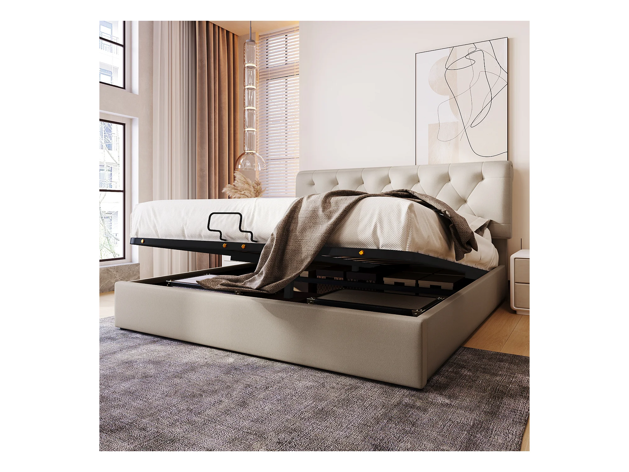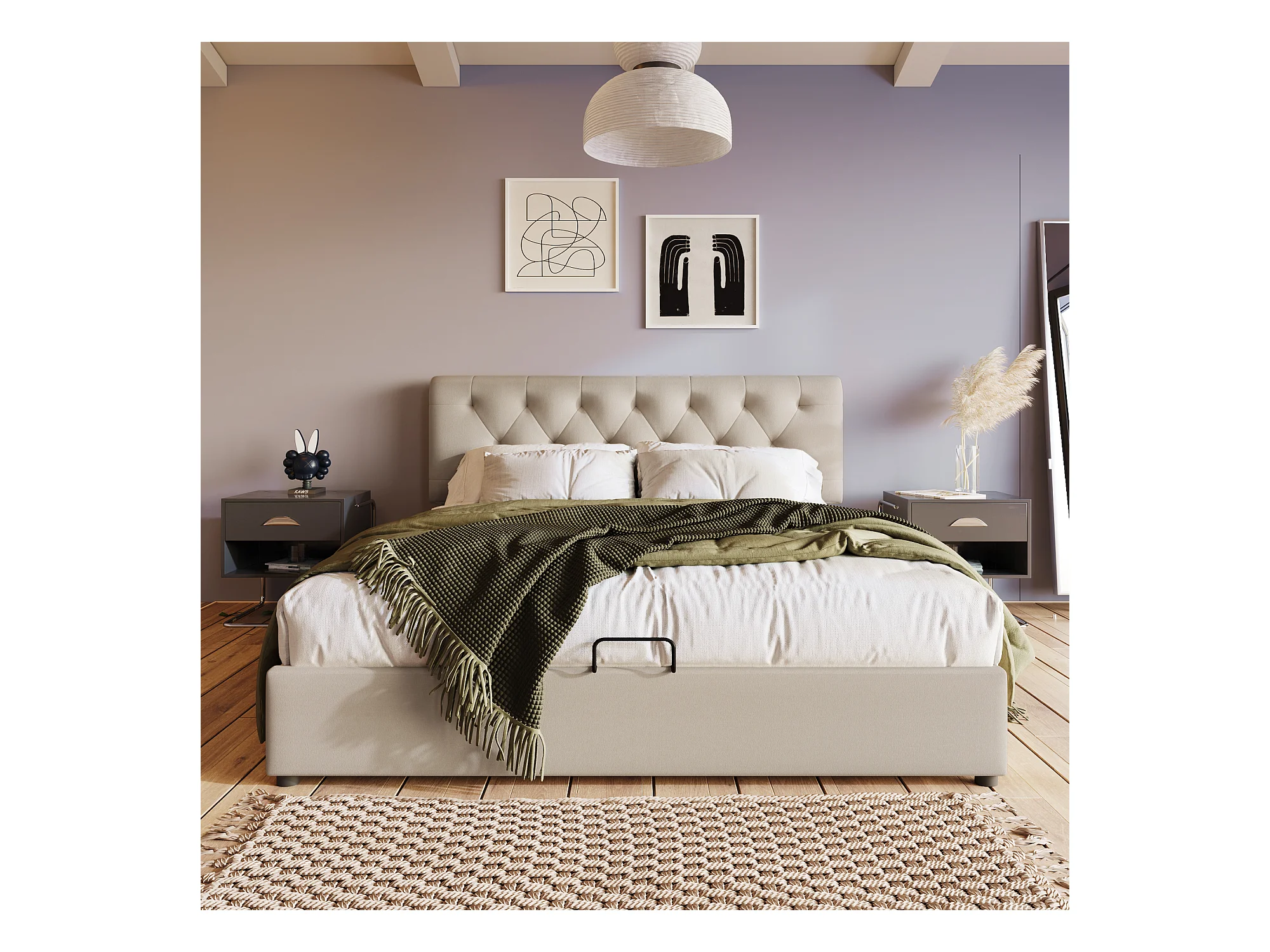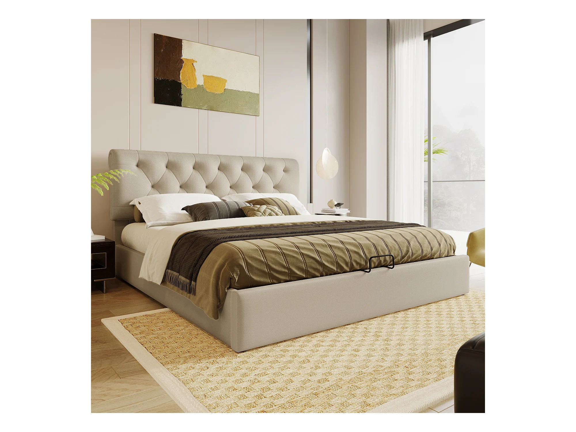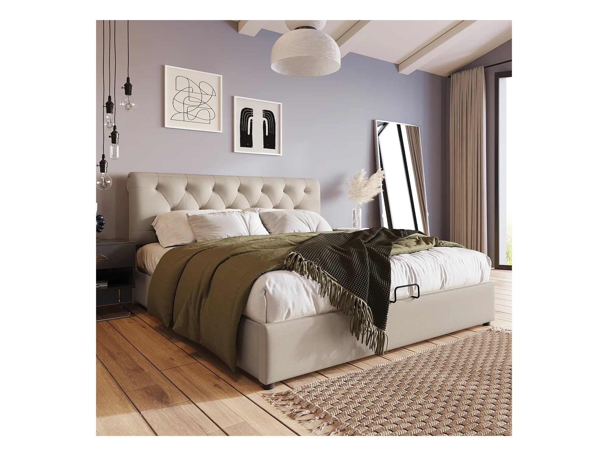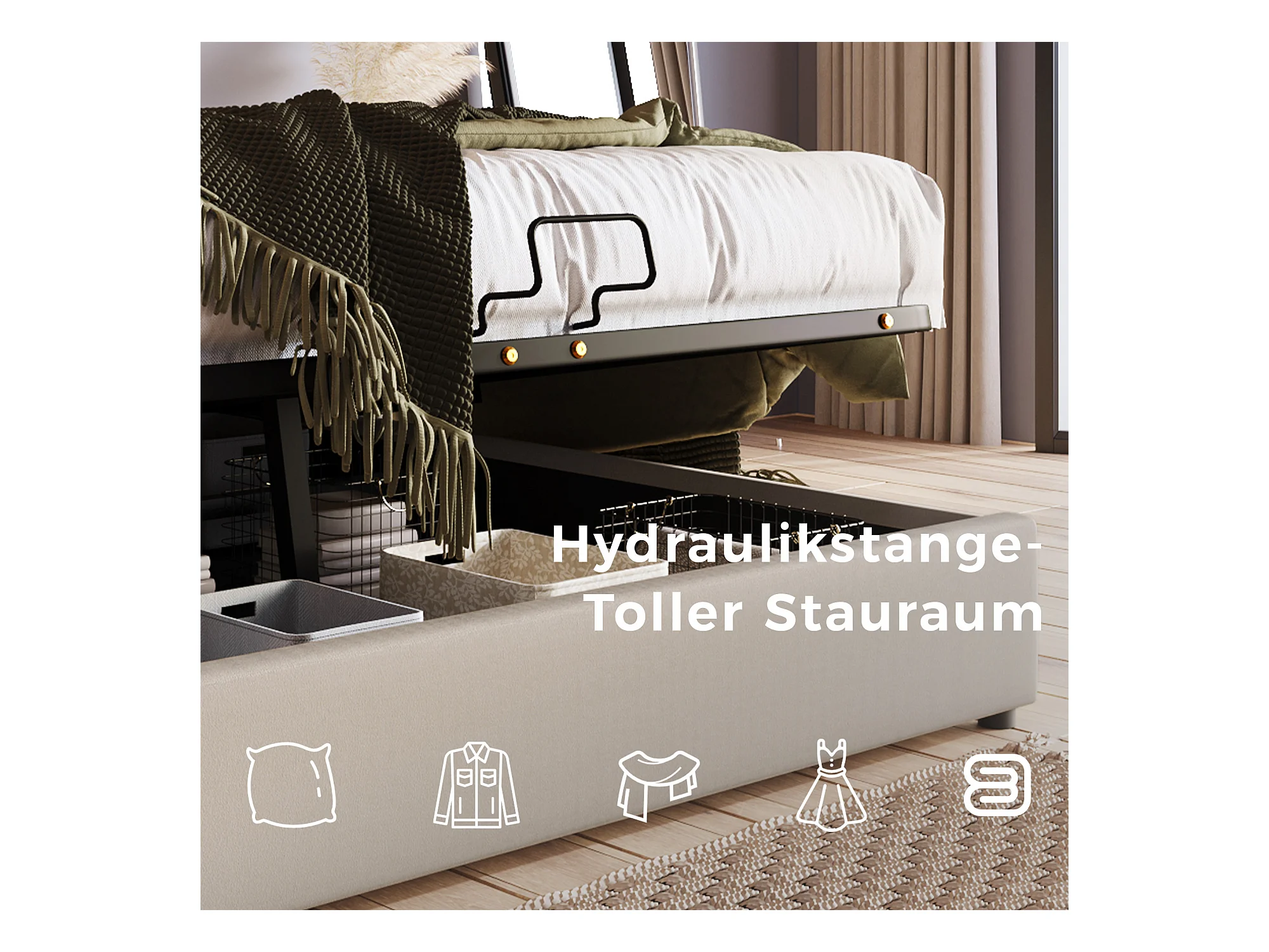 Lit coffre - avec rangement 160x200 cm Blanc cassé - Sweiko
