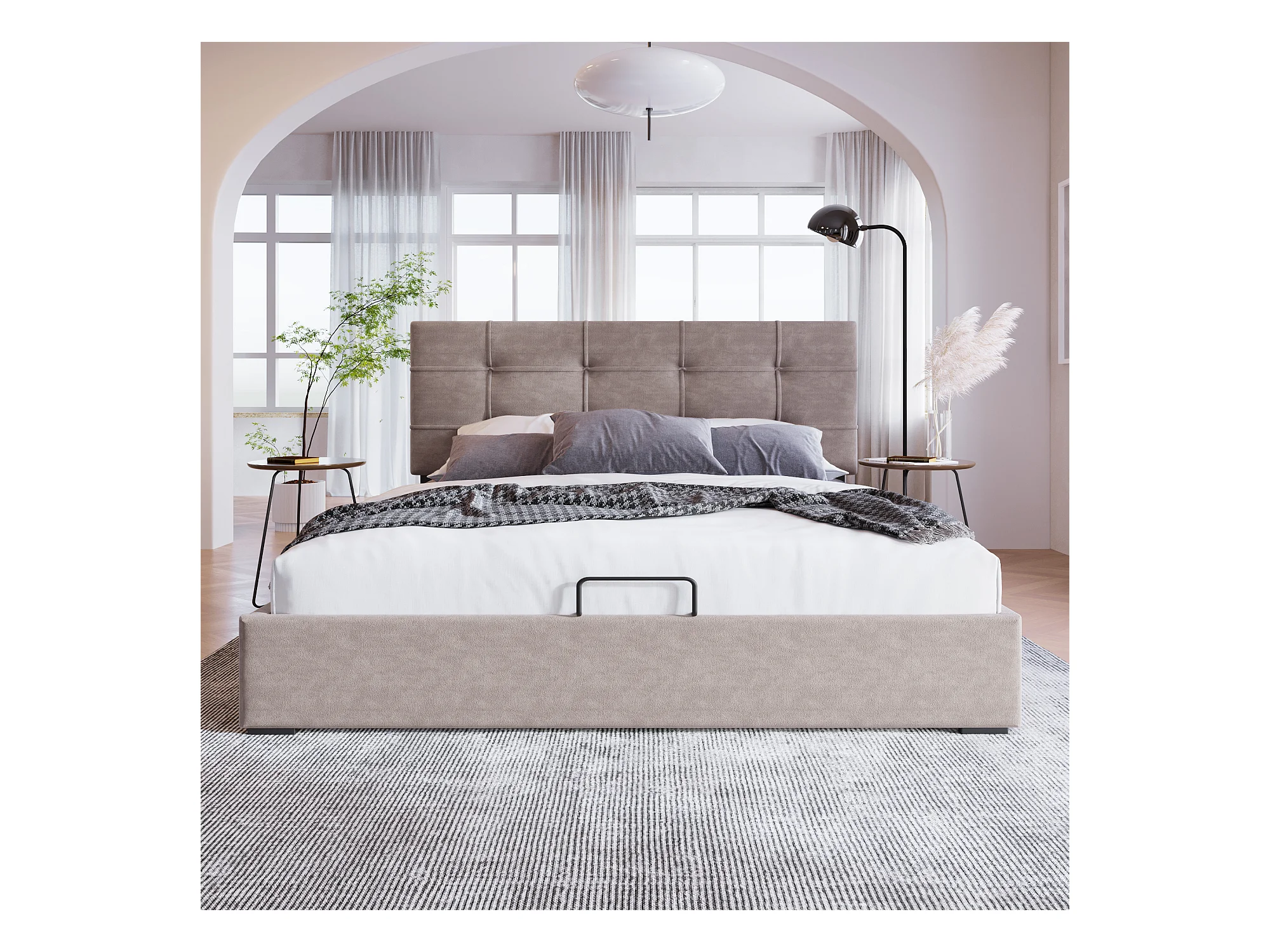 Lit coffre - avec rangement gris clair velours 140x200 cm matelas inclus - Sweiko