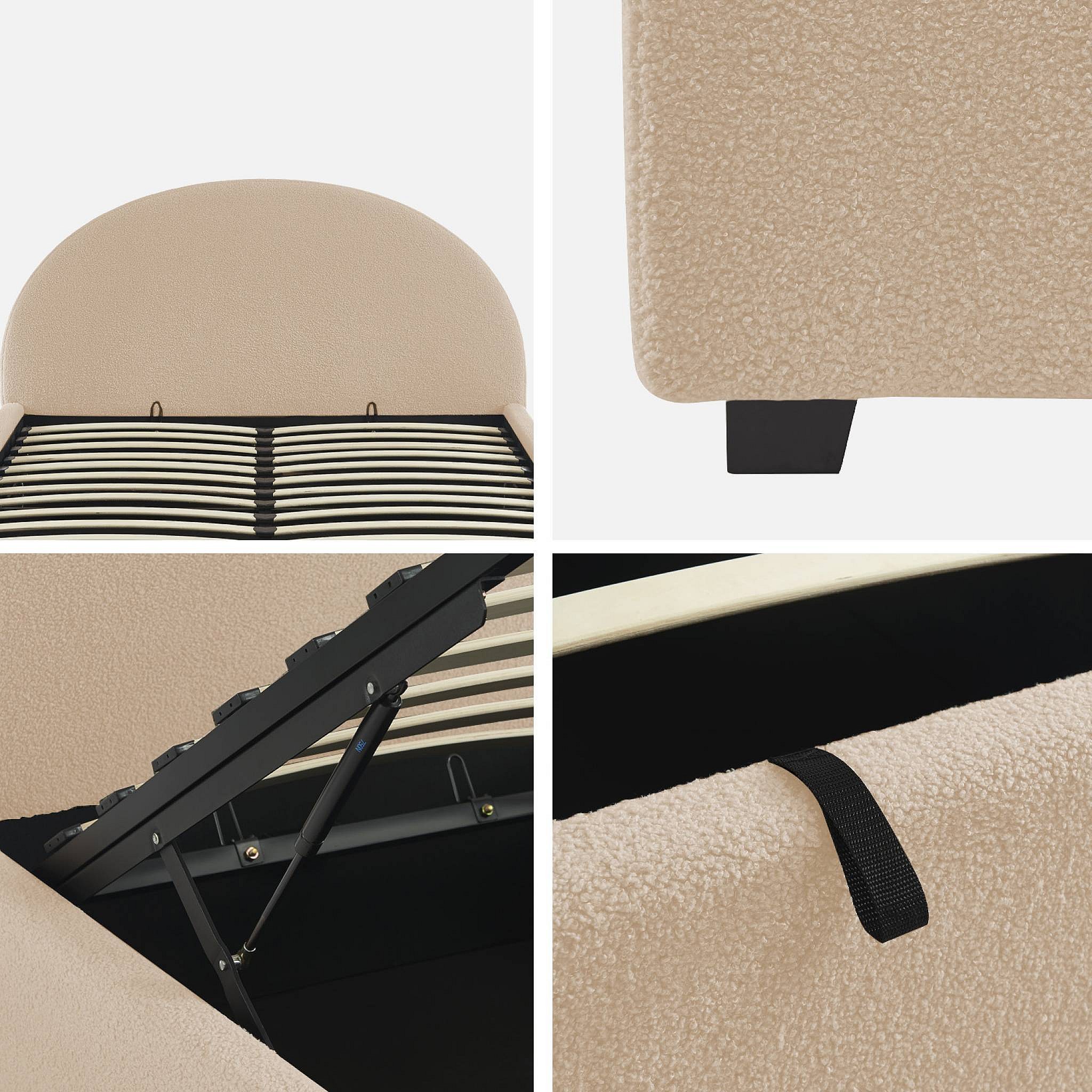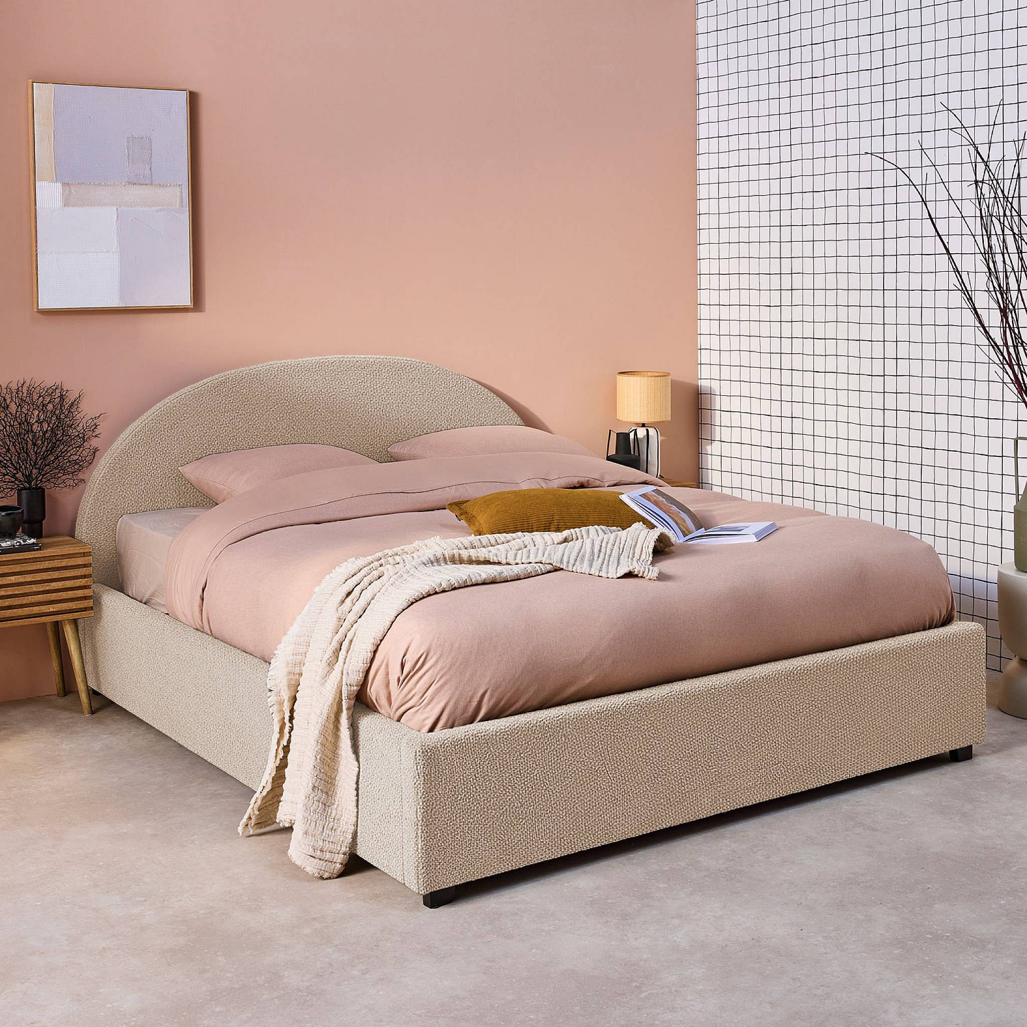 Lit coffre avec sommier à lattes et tête de lit. finition bouclette. nude. L 206 x P 153.5 x H 102cm