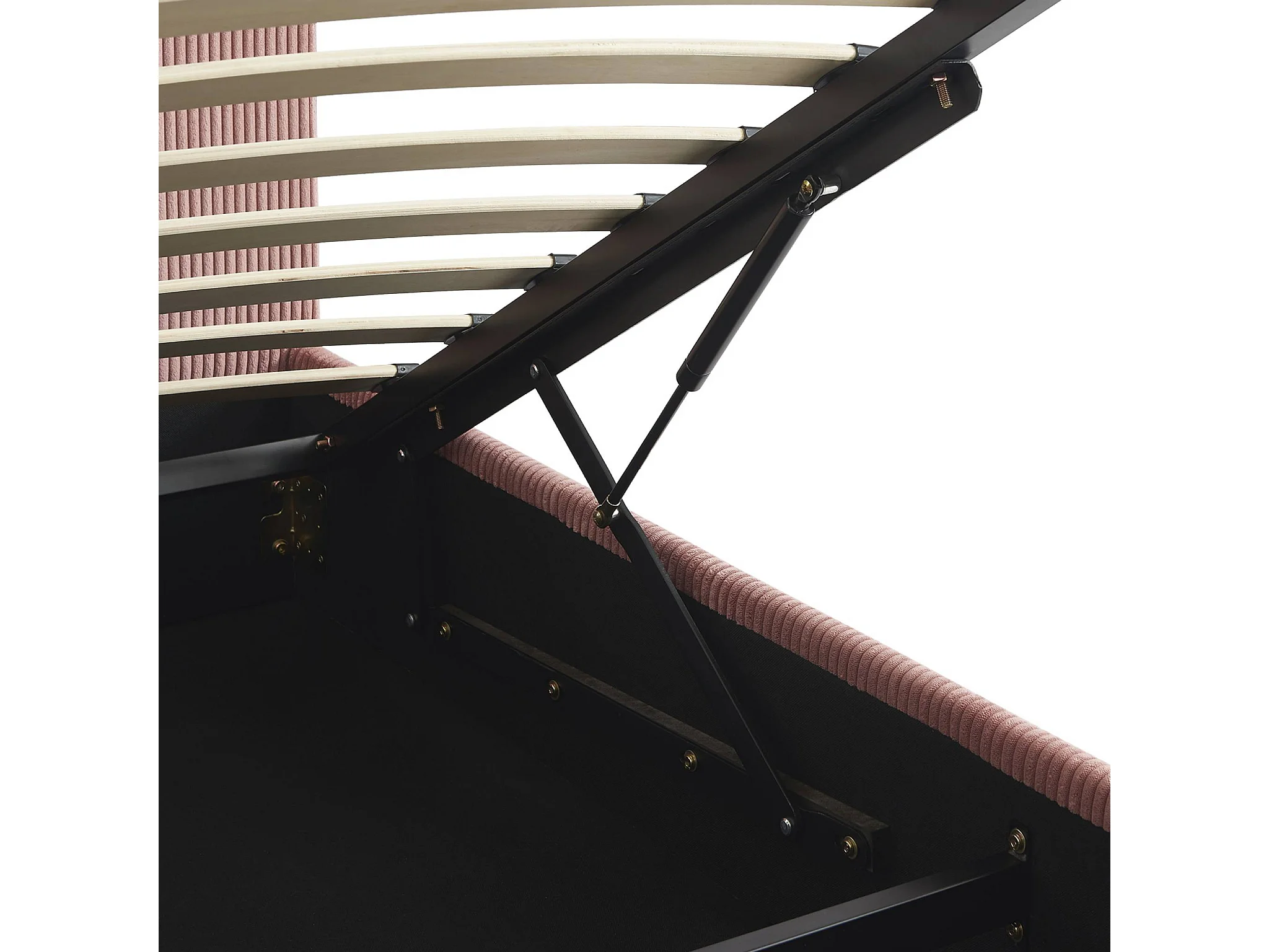 Lit coffre avec sommier à lattes et tête de lit. finition velours côtelé rose. L 202 x P 97.5 x H 86cm