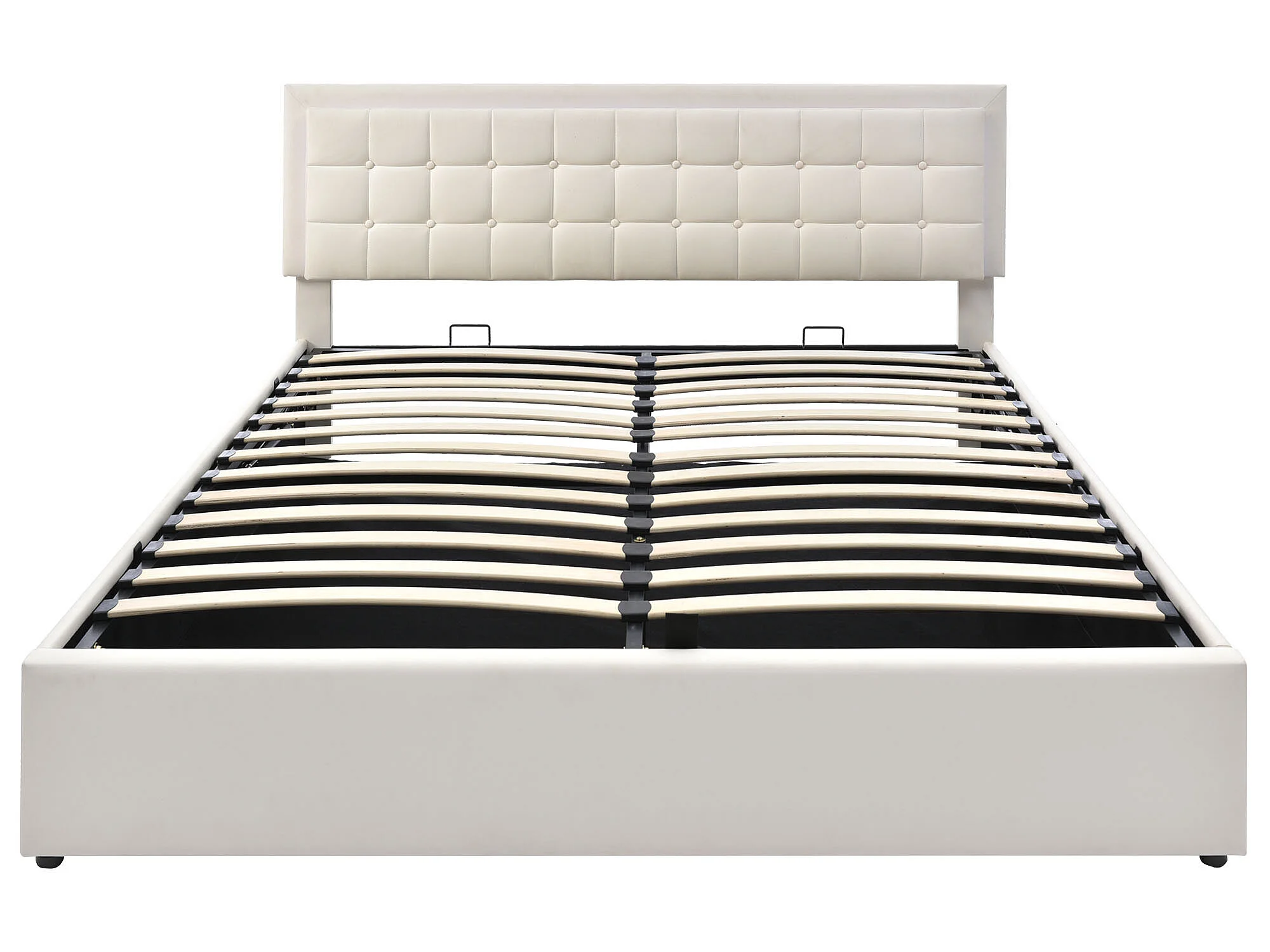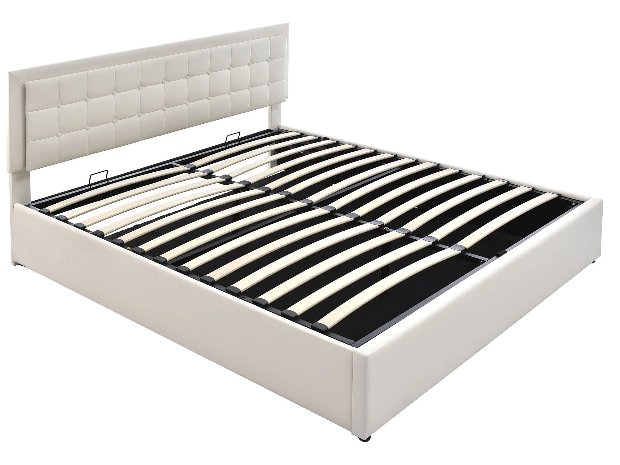 Lit coffre 160 x 200 cm - cuir pu - LEDs - sommier à lattes - blanc