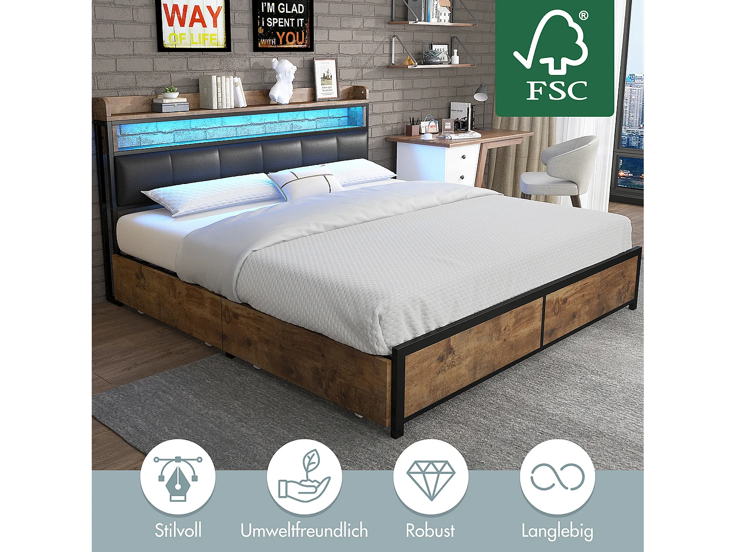 Lit coffre avec tiroirs - 180x200cm - avec LED- Marron - Sweiko