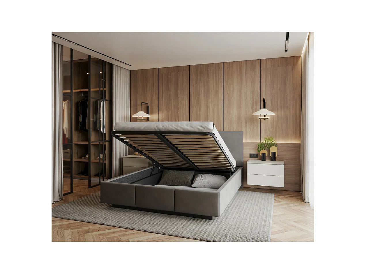 Lit coffre Aveiro 140 x 200 cm avec sommier à lattes relevable Gris Foncé