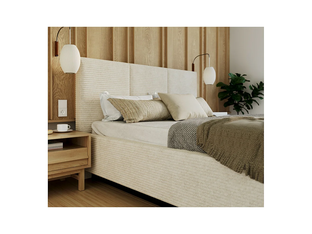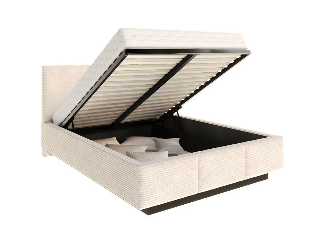 Lit coffre Aveiro velours côtelé 140 x 190 cm avec sommier à lattes relevable Beige Foncé