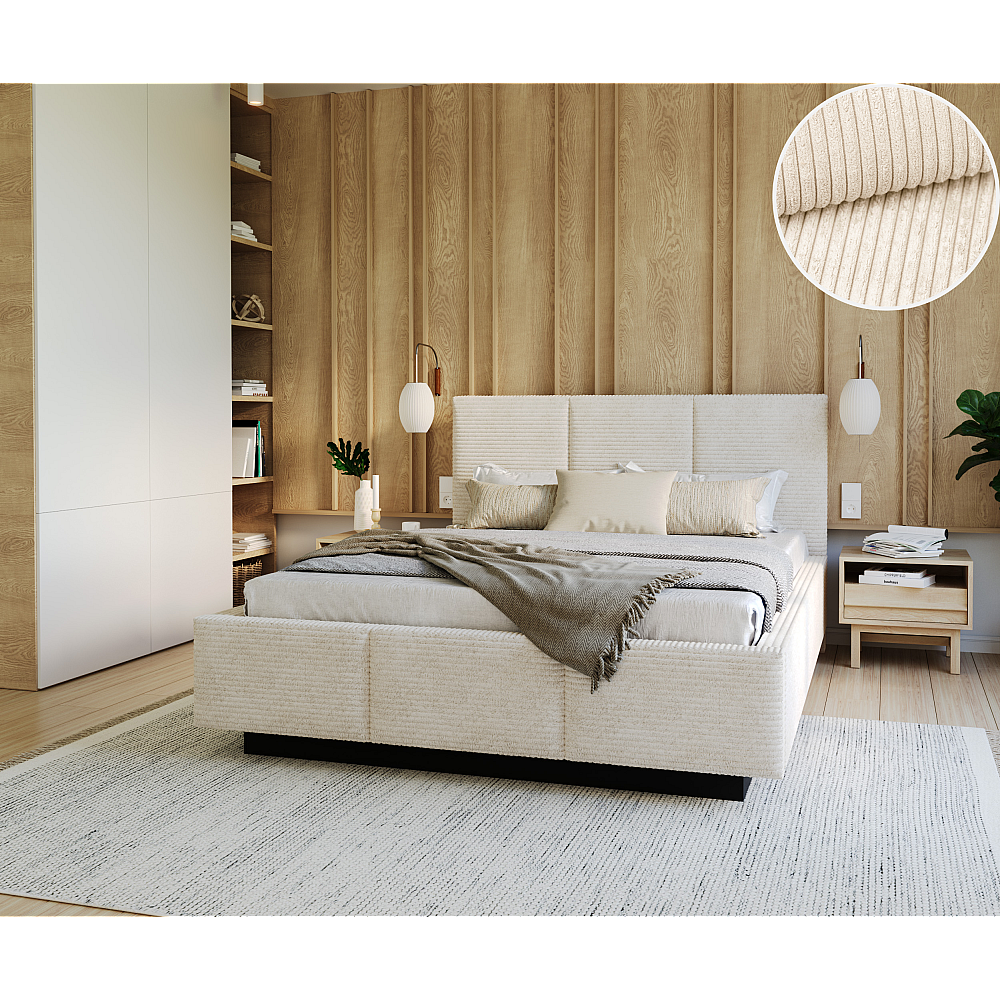 Lit coffre Aveiro velours côtelé 160 x 200 cm avec sommier à lattes relevable Crème
